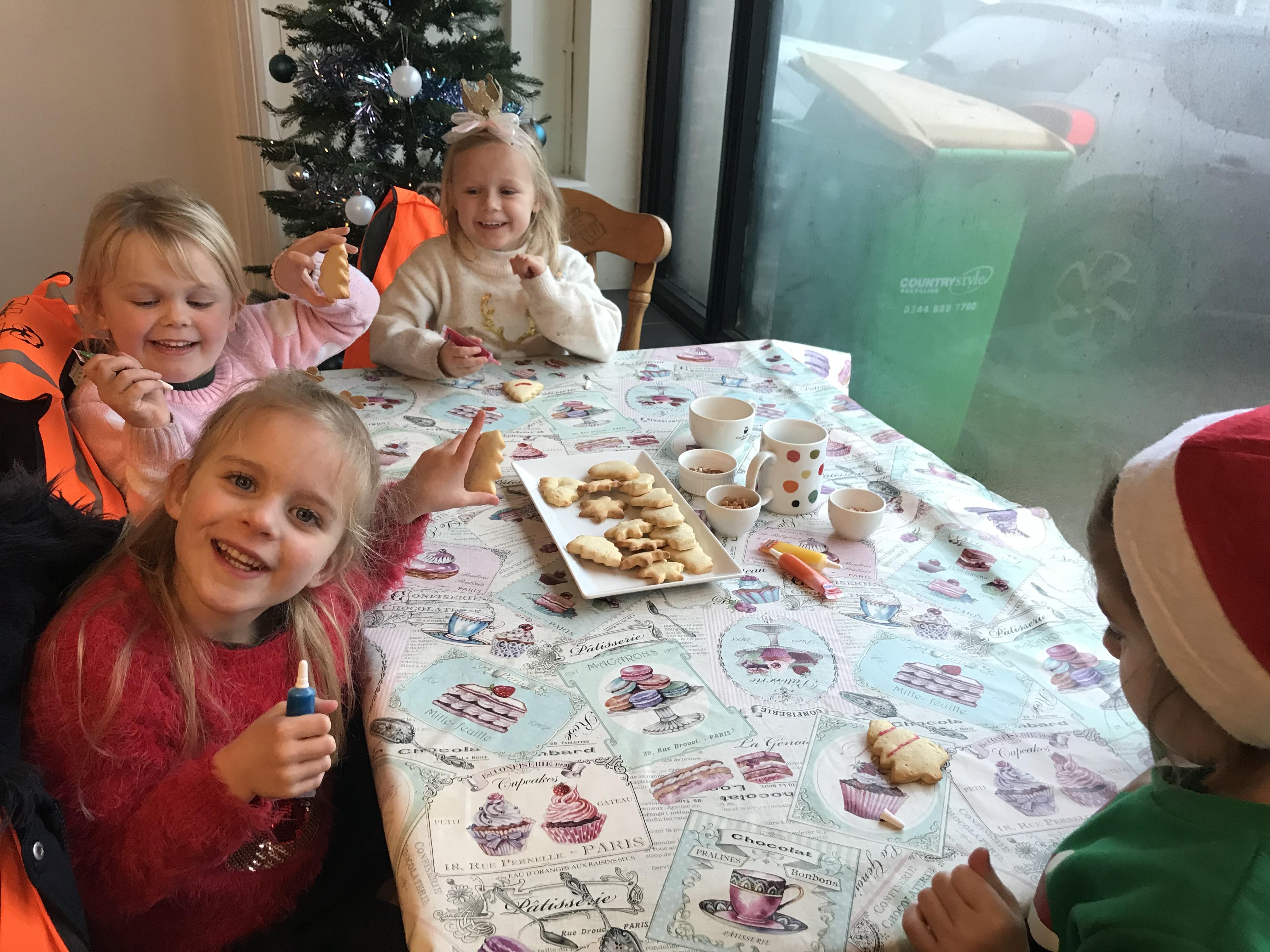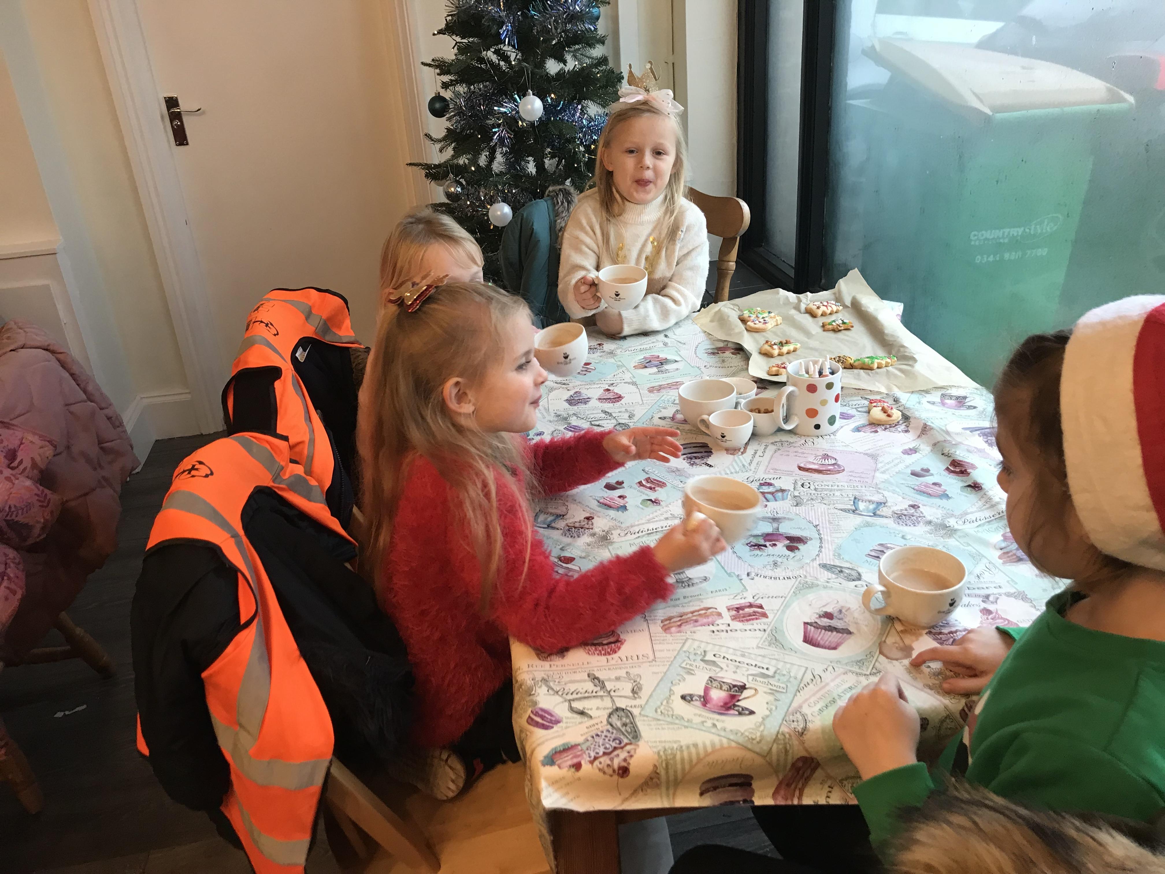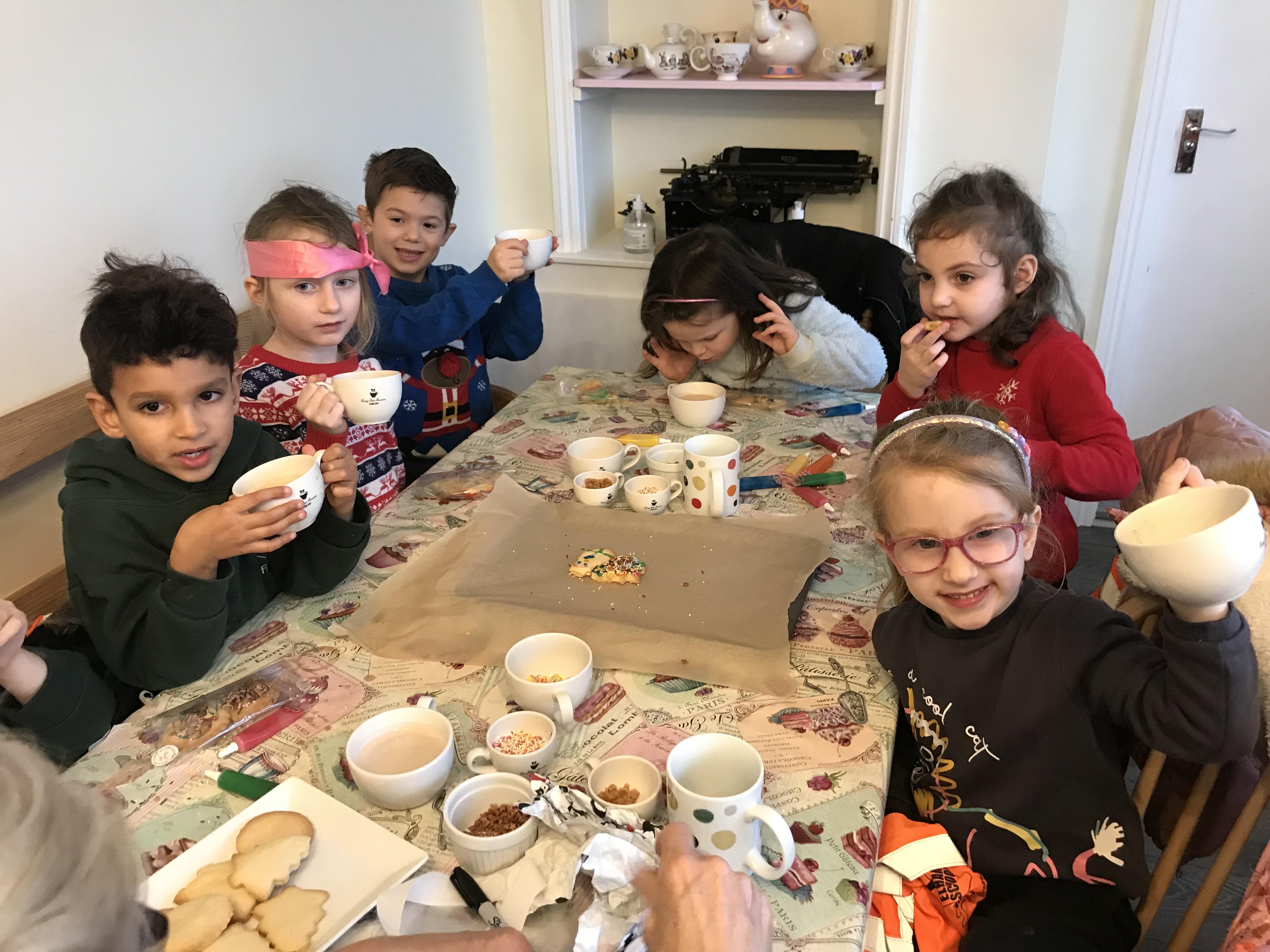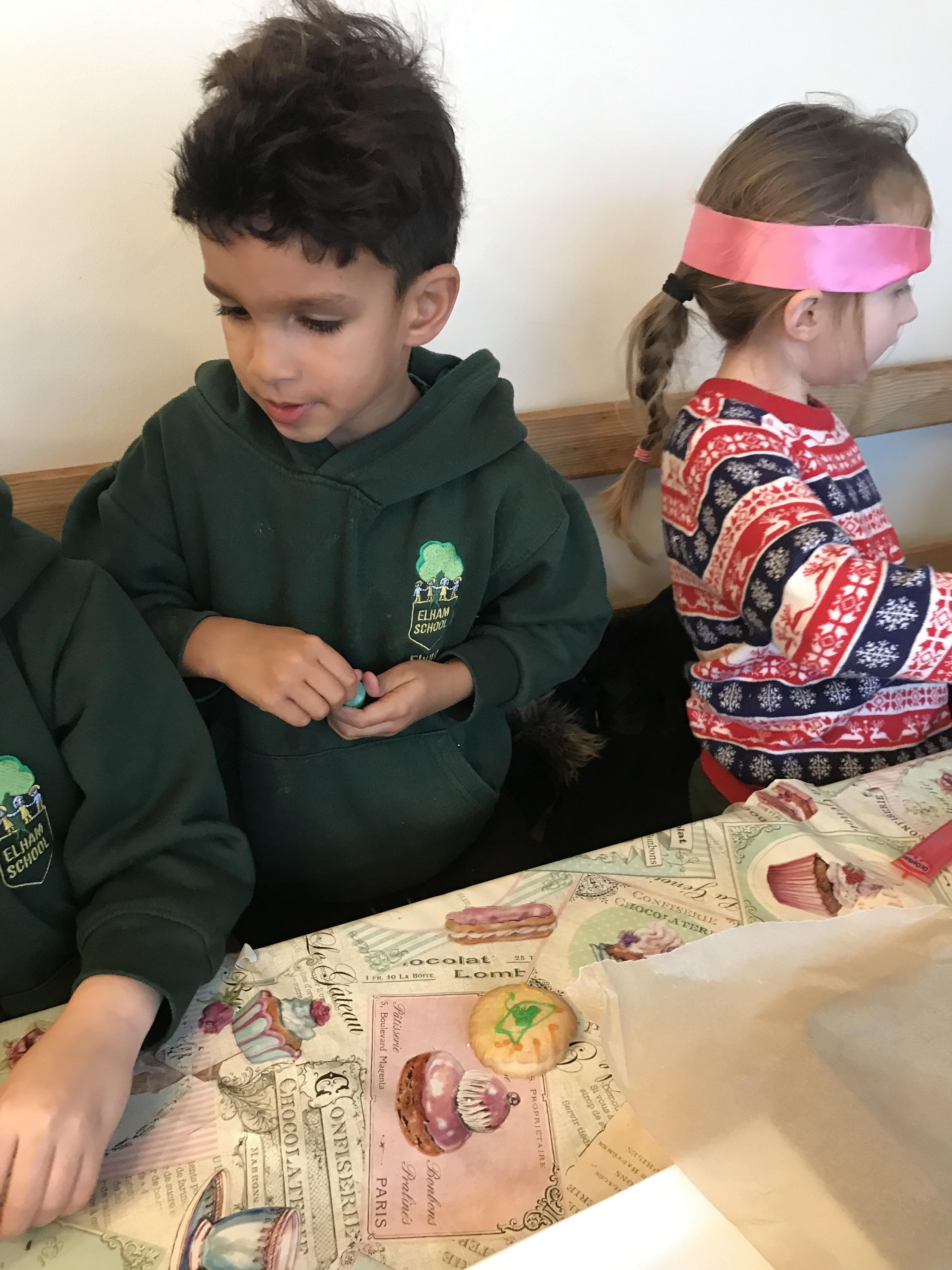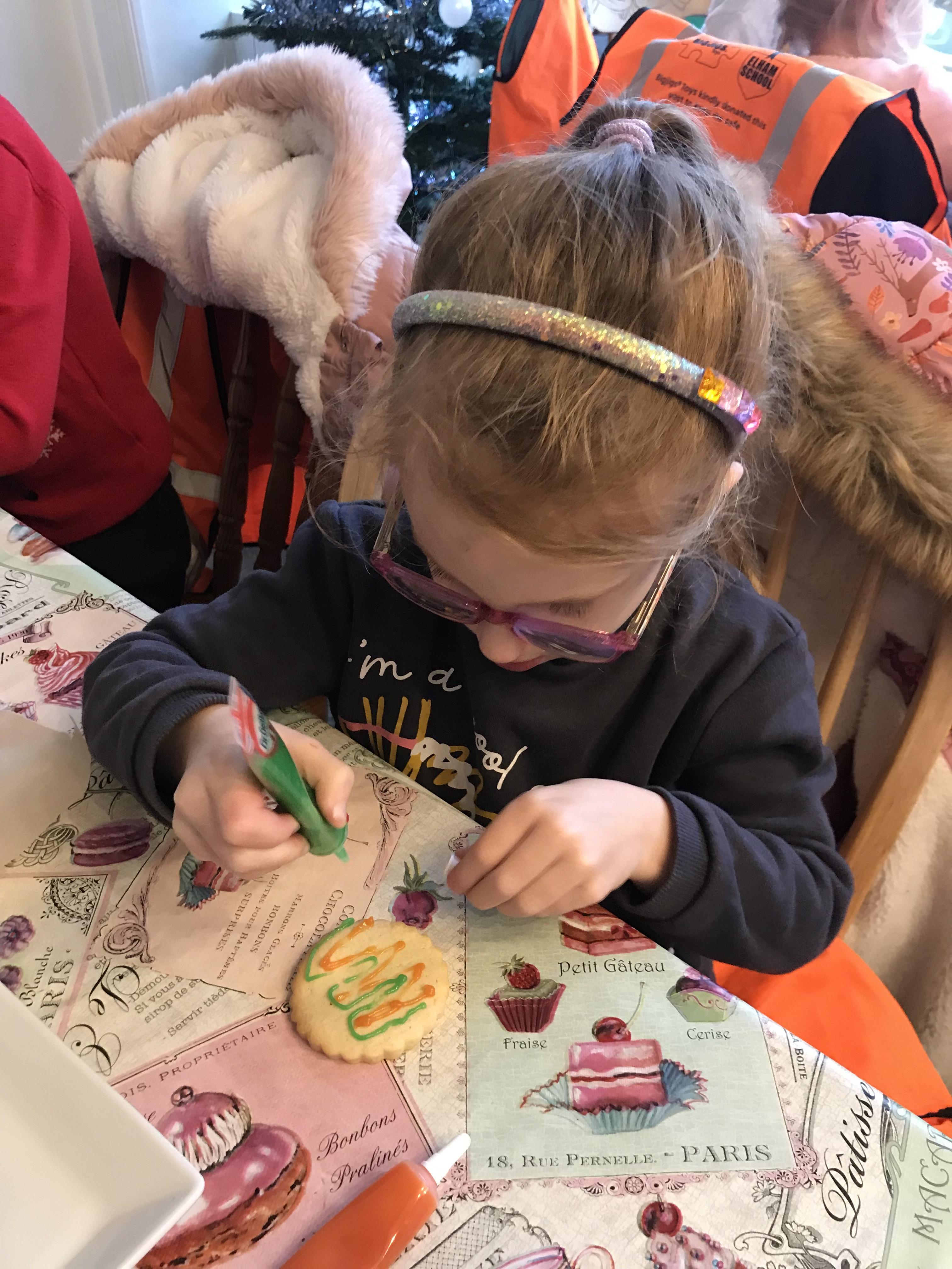 We went around the village after our Christmas lunch looking for 'signs of Christmas, (part of our RE programme). Surprise, surprise we ended up in the Cosy Tea Rooms and had a lovely time icing and decorating biscuits and drinking hot chocolate.
