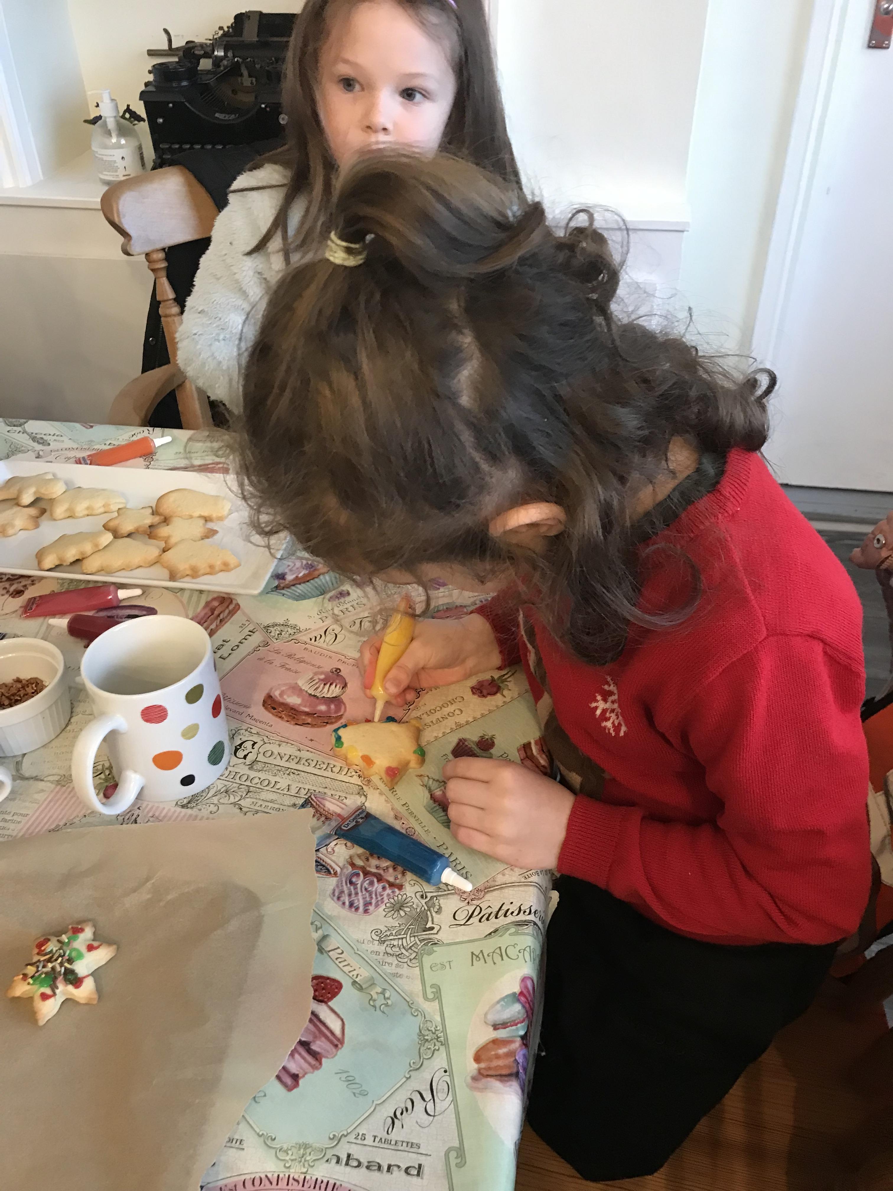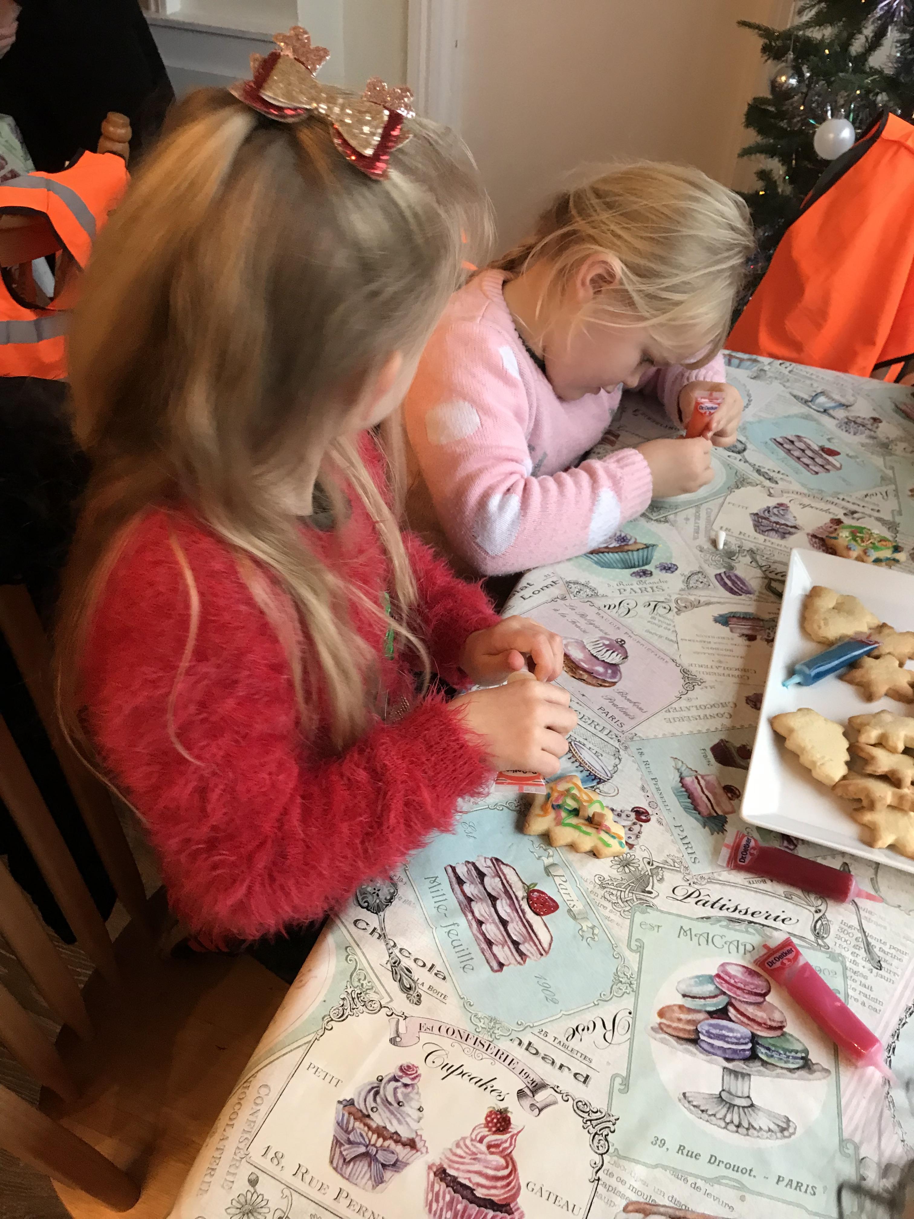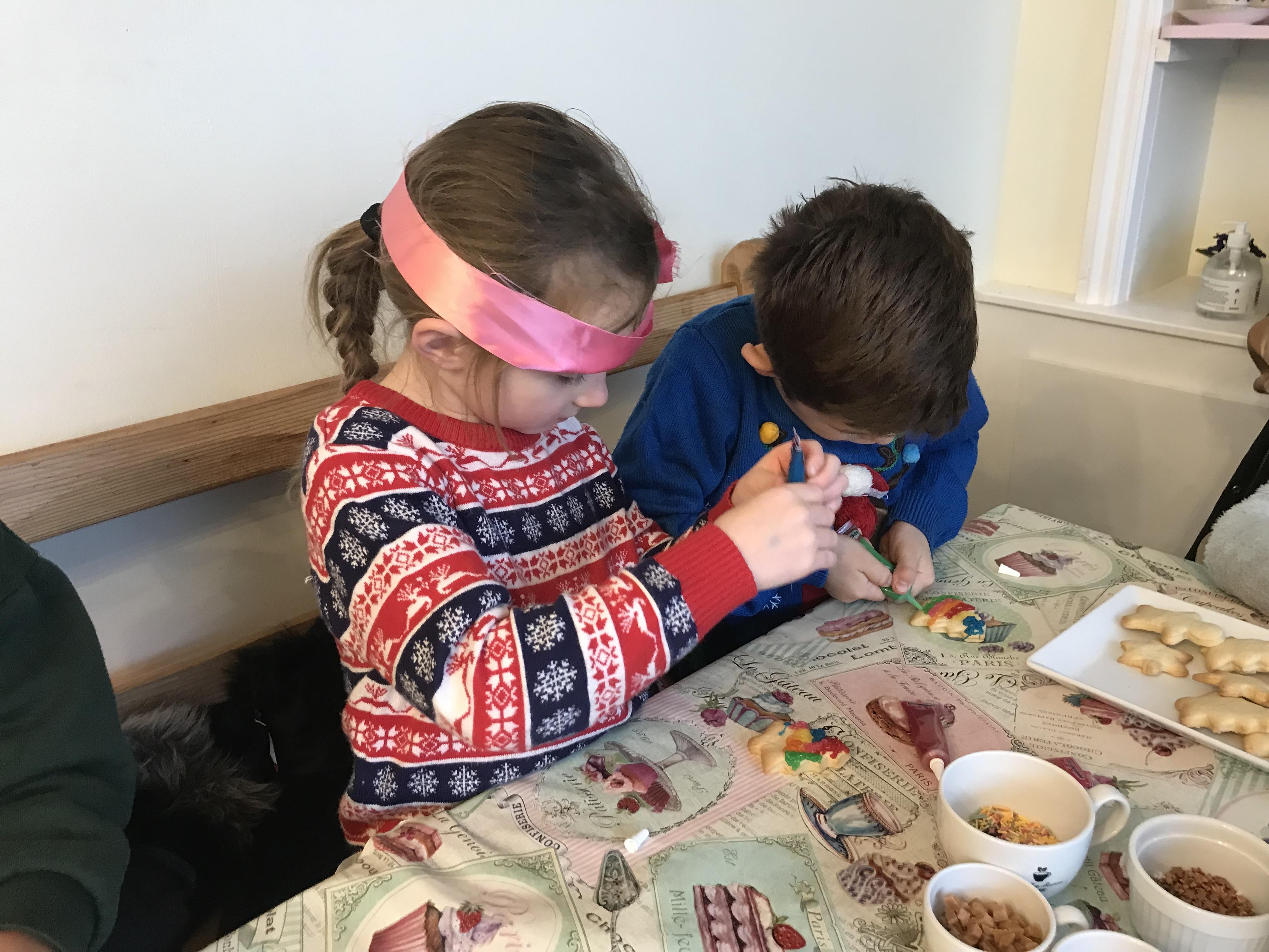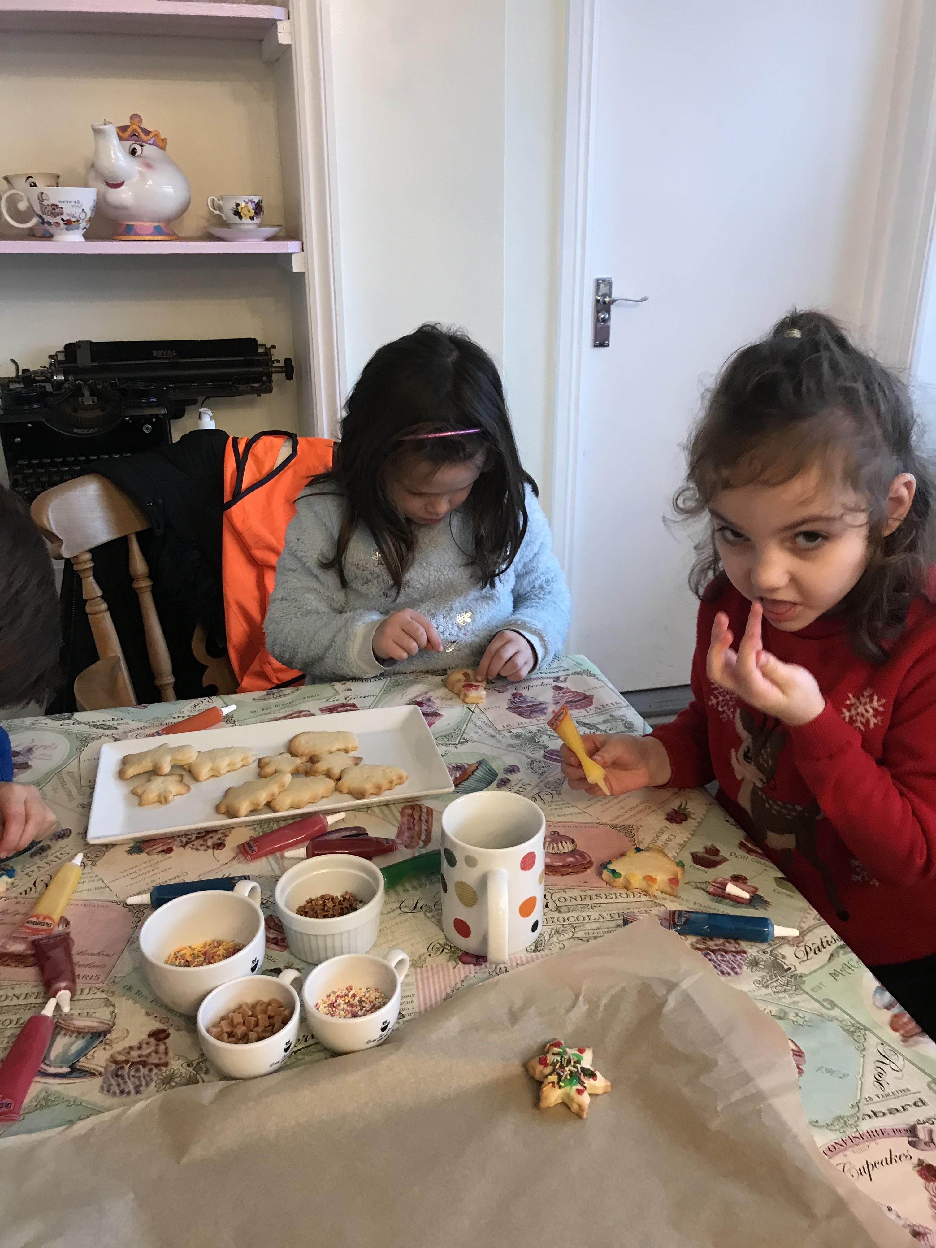 We went around the village after our Christmas lunch looking for 'signs of Christmas, (part of our RE programme). Surprise, surprise we ended up in the Cosy Tea Rooms and had a lovely time icing and decorating biscuits and drinking hot chocolate.