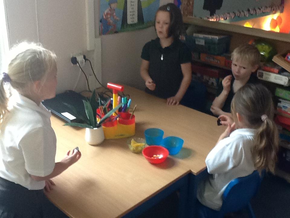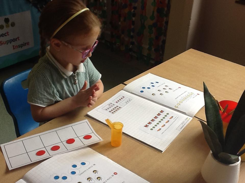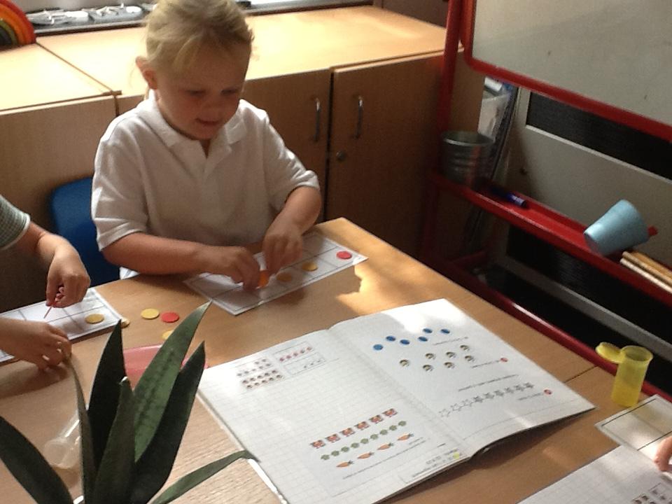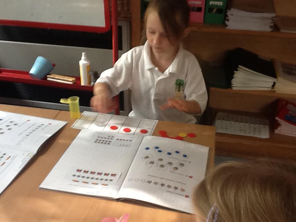 The children have used counters to represent numbers.