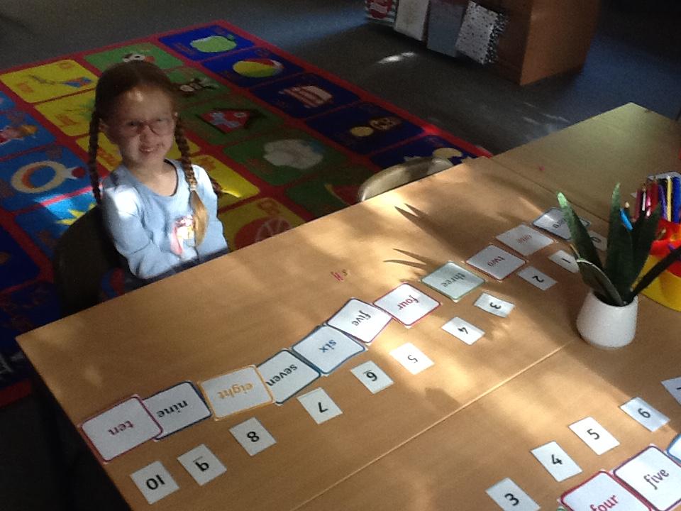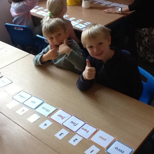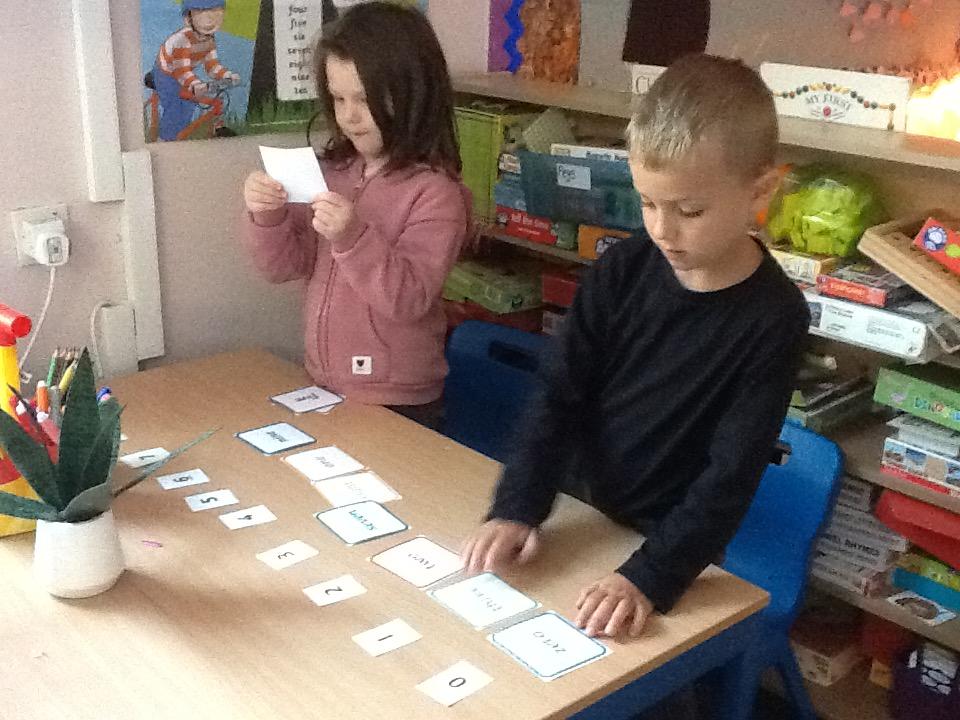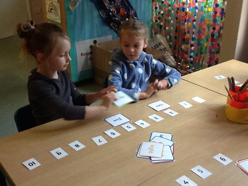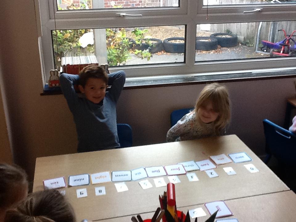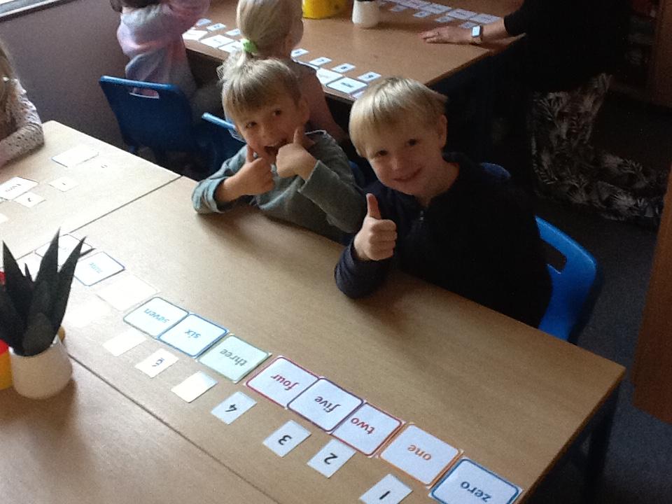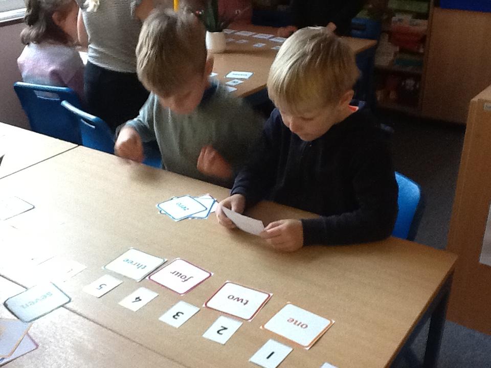 We looked at representing numbers as words in our maths today. The children found this a bit of a struggle so we encouraged them to look at the first sound in the number word to decipher what numeral it could be matched to, "one" throwing this theory out the window of course!