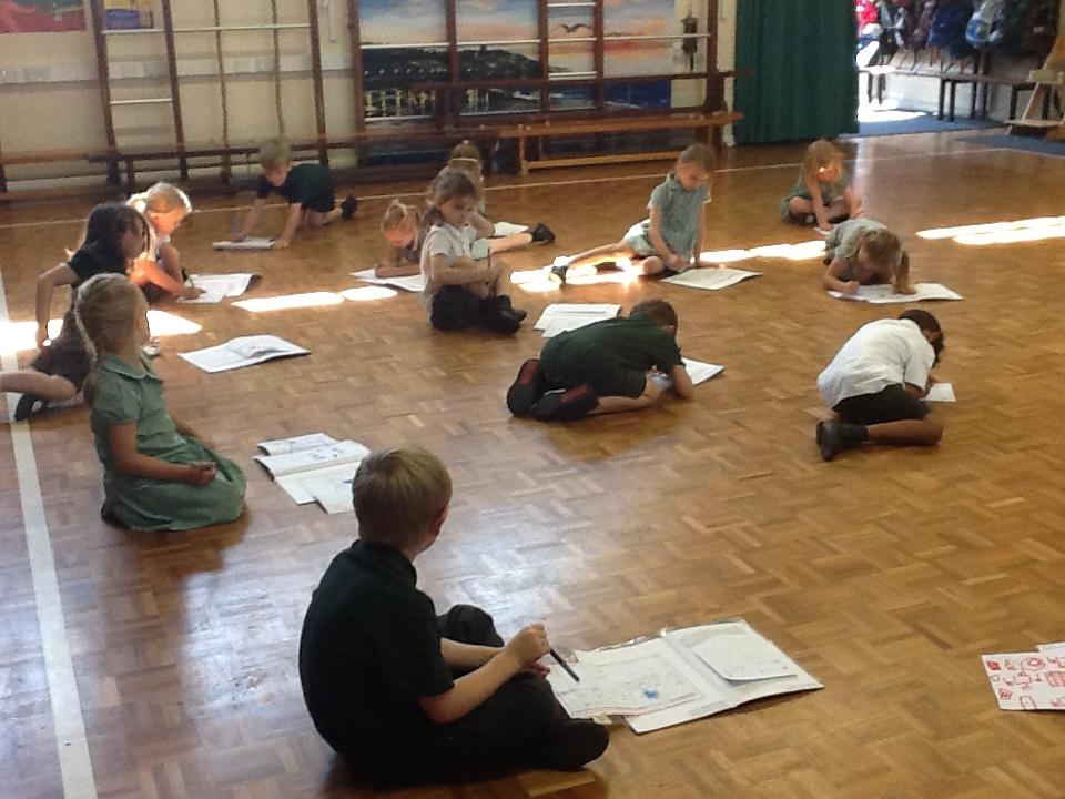 We walked around the school using our maps, everyone soon picked up how to direct each other using directional language. We ended up in the hall and had to decide which way was quicker to get back to the classroom.