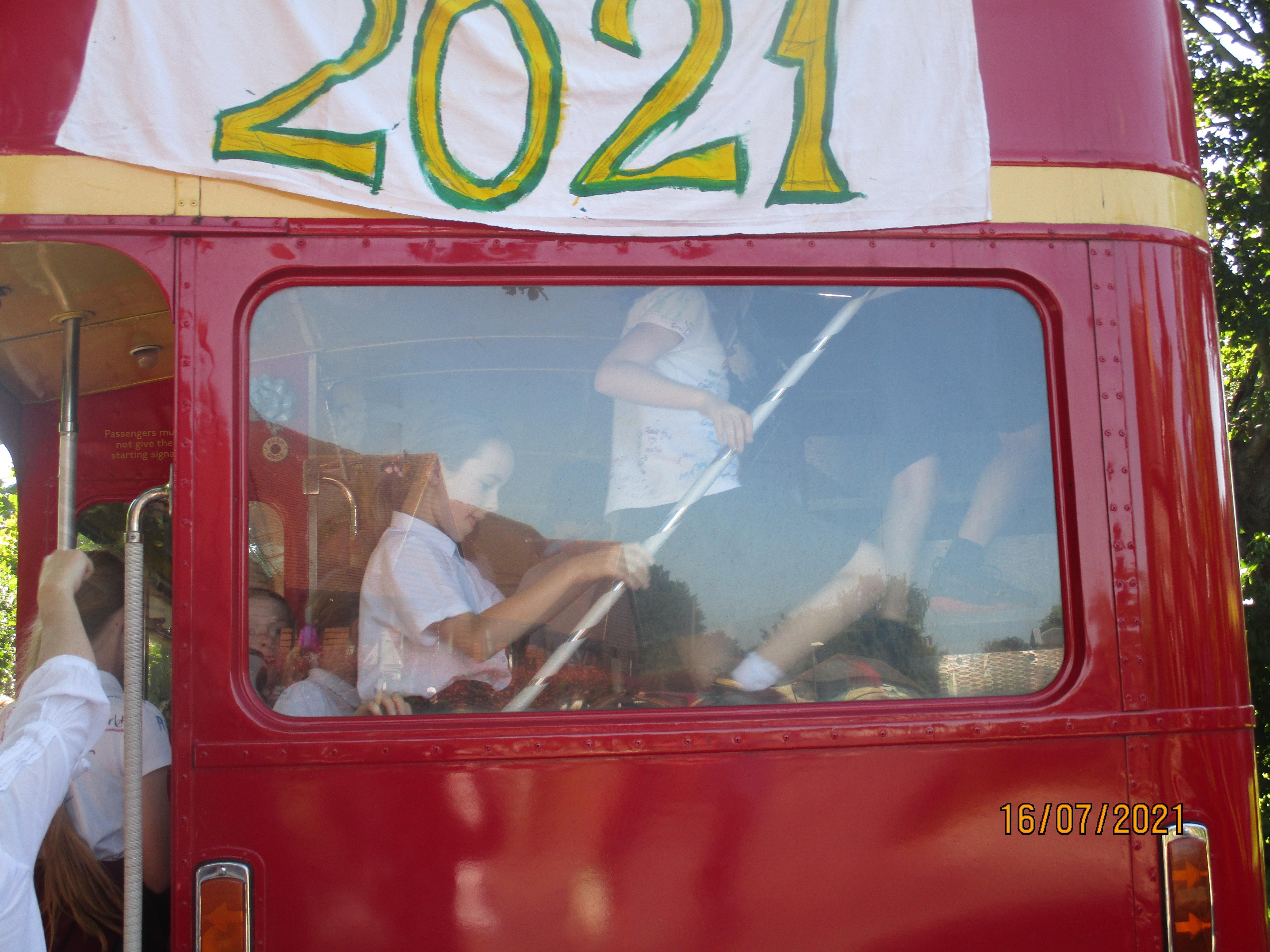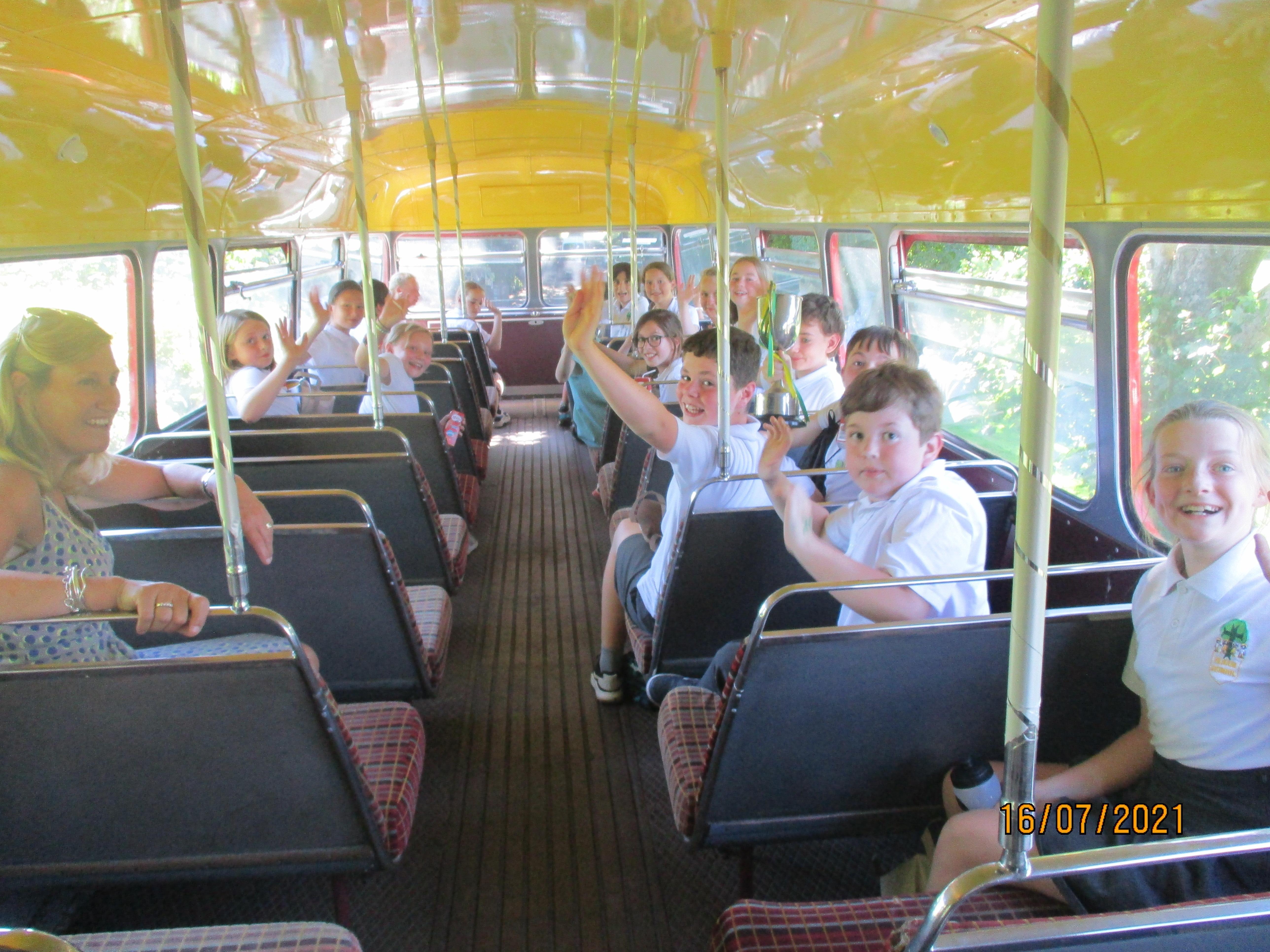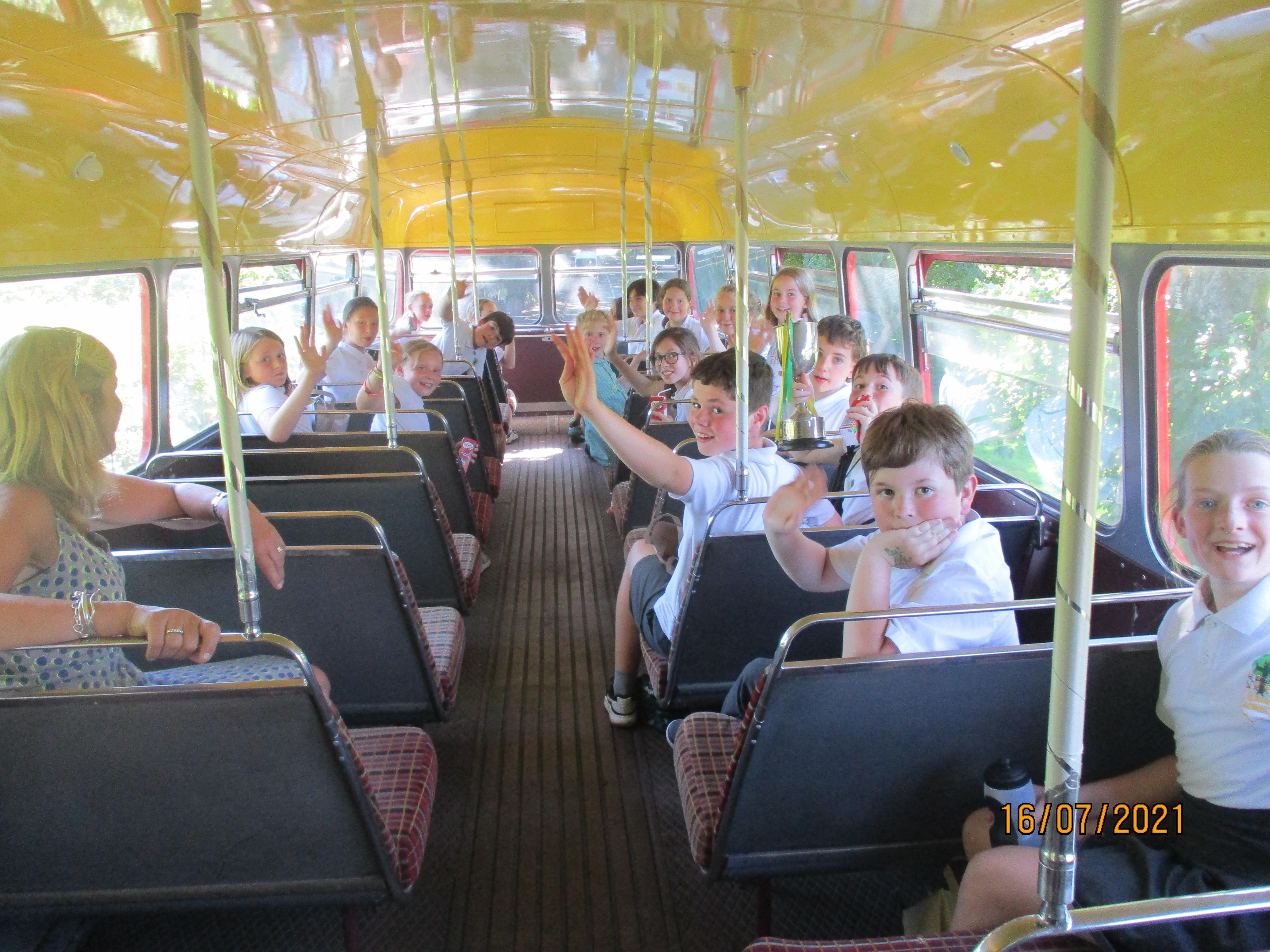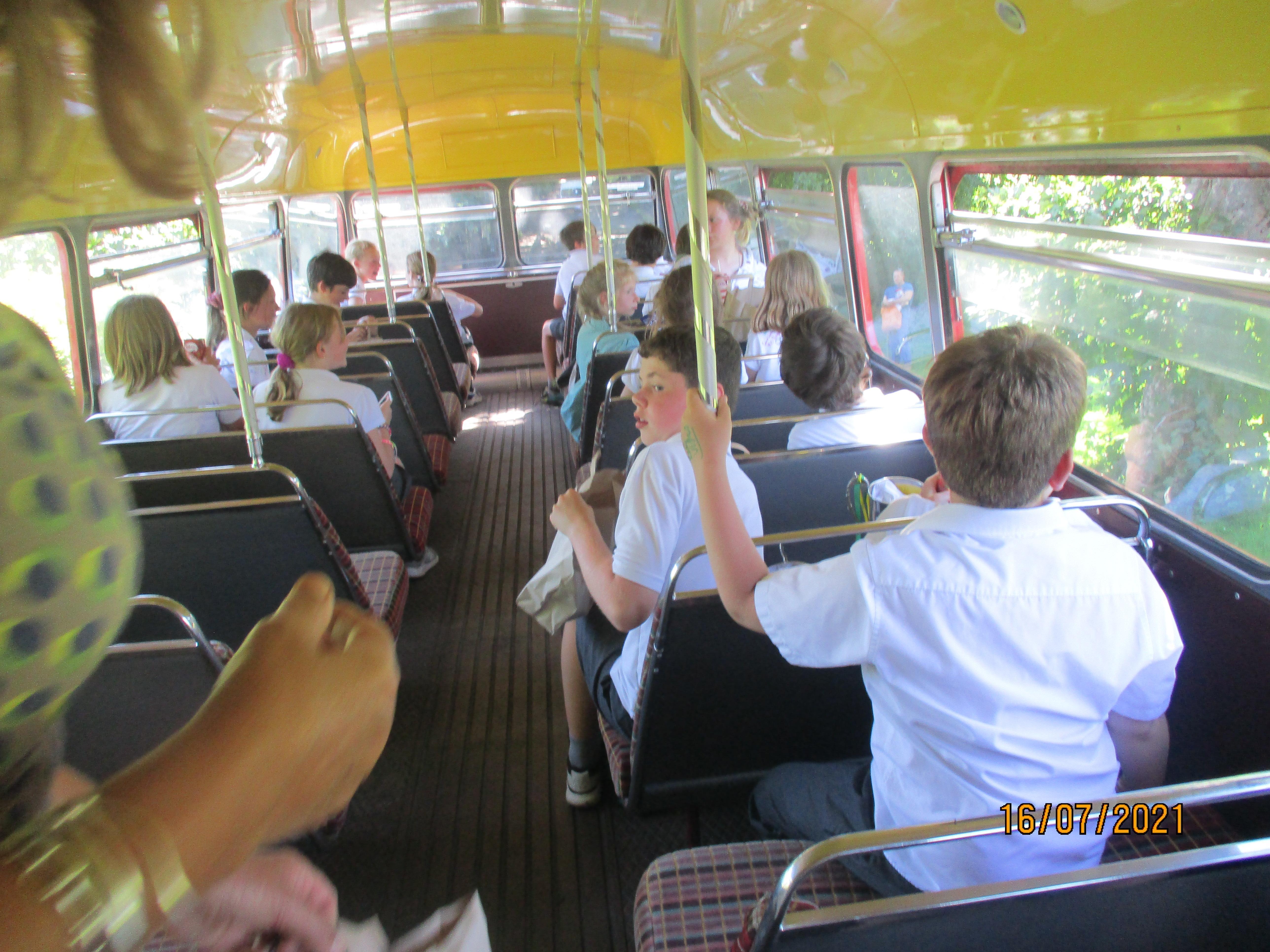 After our final goodbyes, we thought we would all be heading home (or perhaps to the park), but our parents had organised a fantastic suprise for us - a ride on an old red double-decker bus. Of course we sang 'The Wheels on the Bus' as we travelled along through the Elham Valley! Upon our return to Elham we were then treated to a barbecue as well.