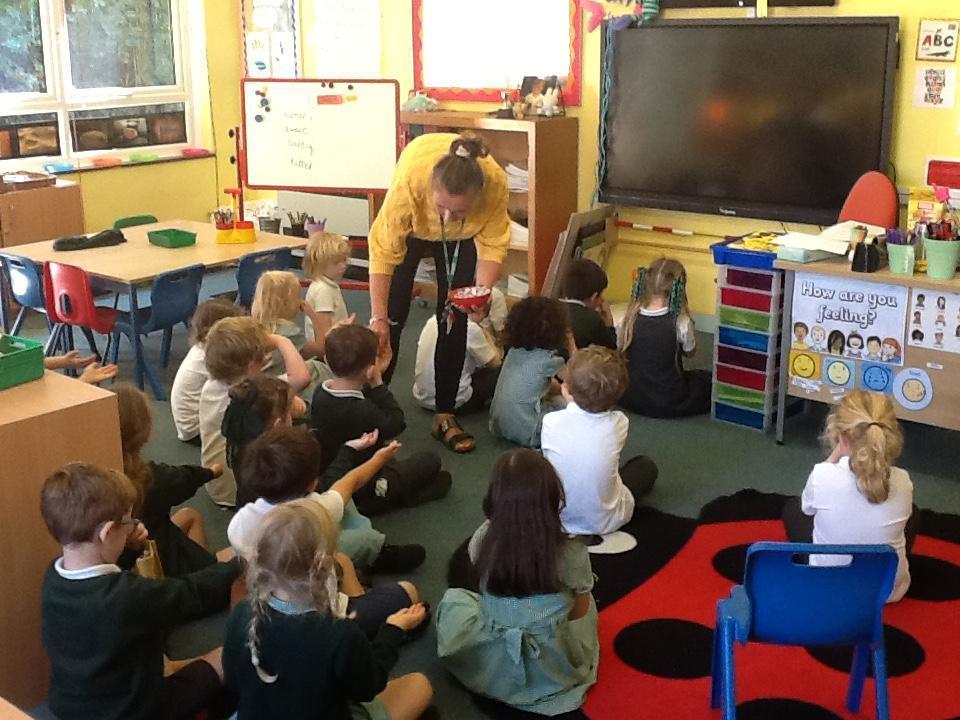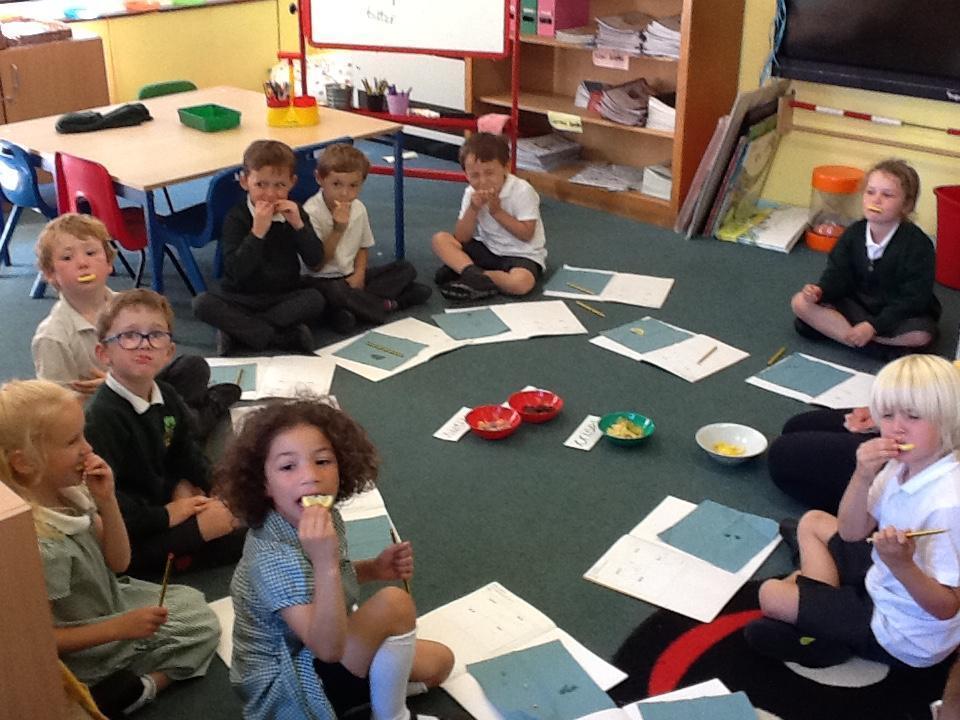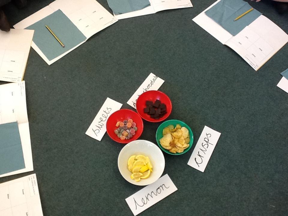 The children had great fun in science today finding out how good their tongues are at tasting! We tried a sugar covered sweet, a salty crisp, a piece of unsweetened chocolate and a piece of lemon.