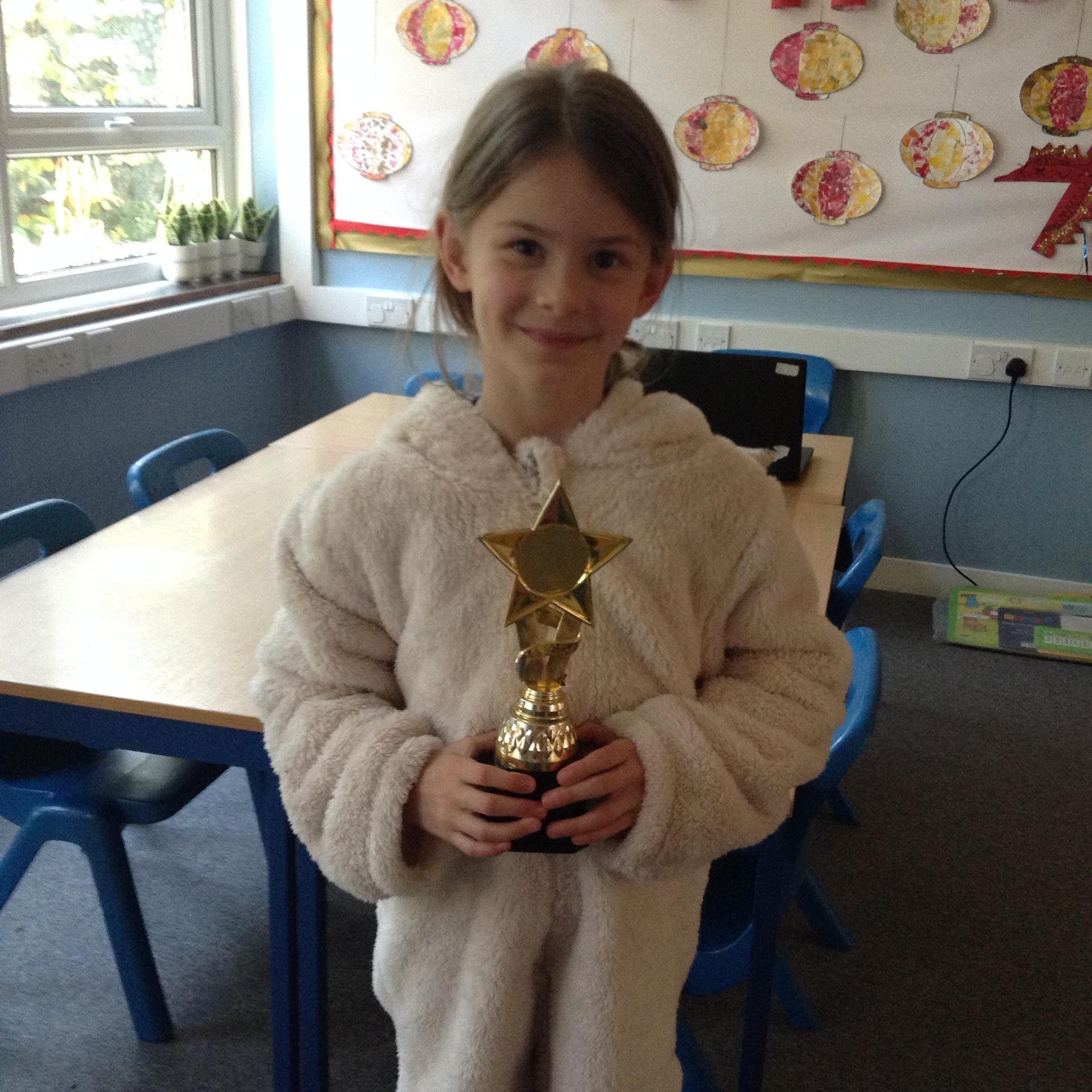 This weeks Star of the Week is Florence. I have been impressed with the work you have completed this week. Your work in English was well written, thoughtful and you used appropriate nouns to match your story plan. You are really engaged in our nativity play rehearsals and you are acting in character brilliantly!! Well done Florence.