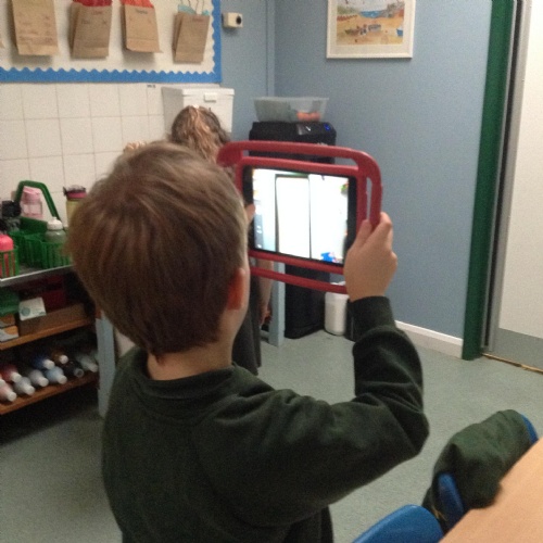 The children have been using the ipads to investigate taking photographs using both landscape and portrait orientations. The children took photos of a variety of objects and had to predict if the photograph would be best to take in portrait or landscape.