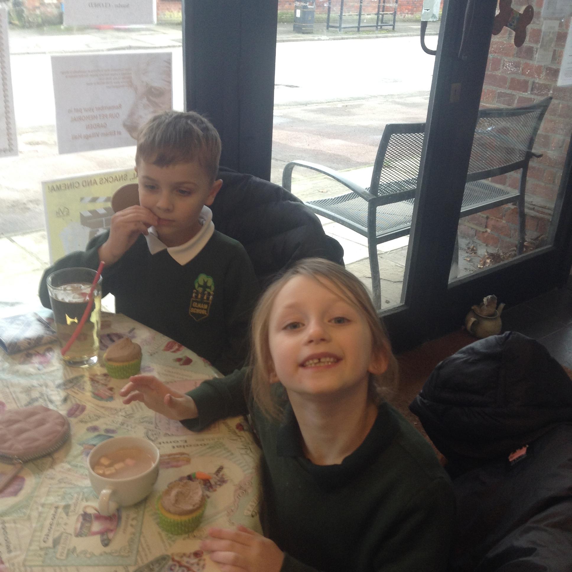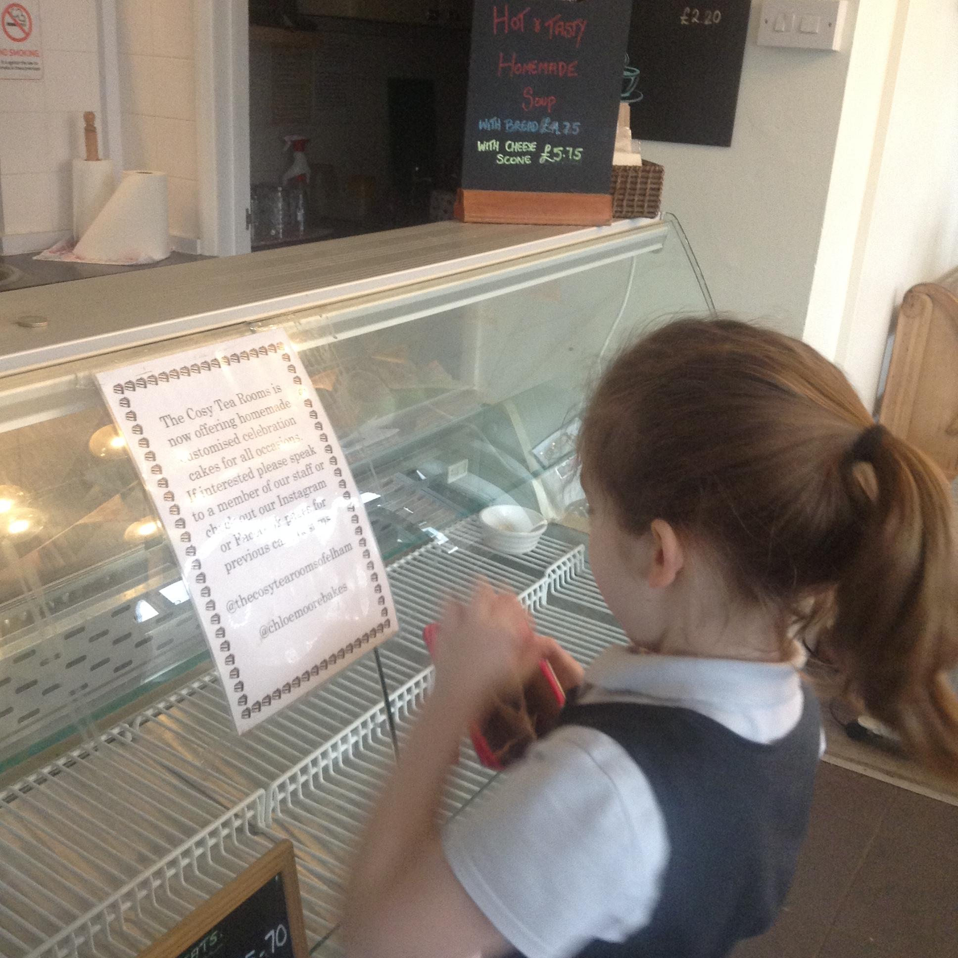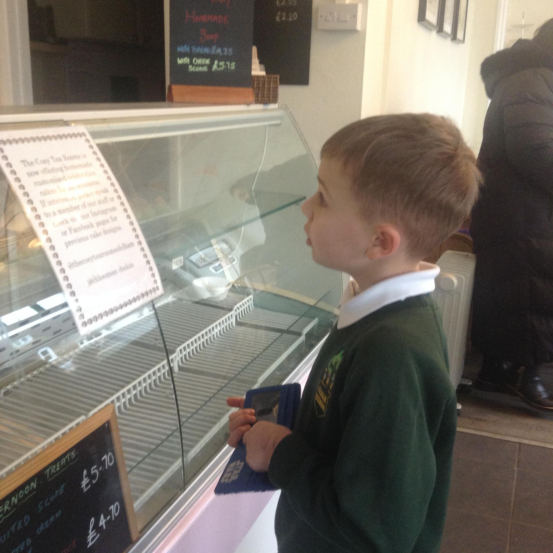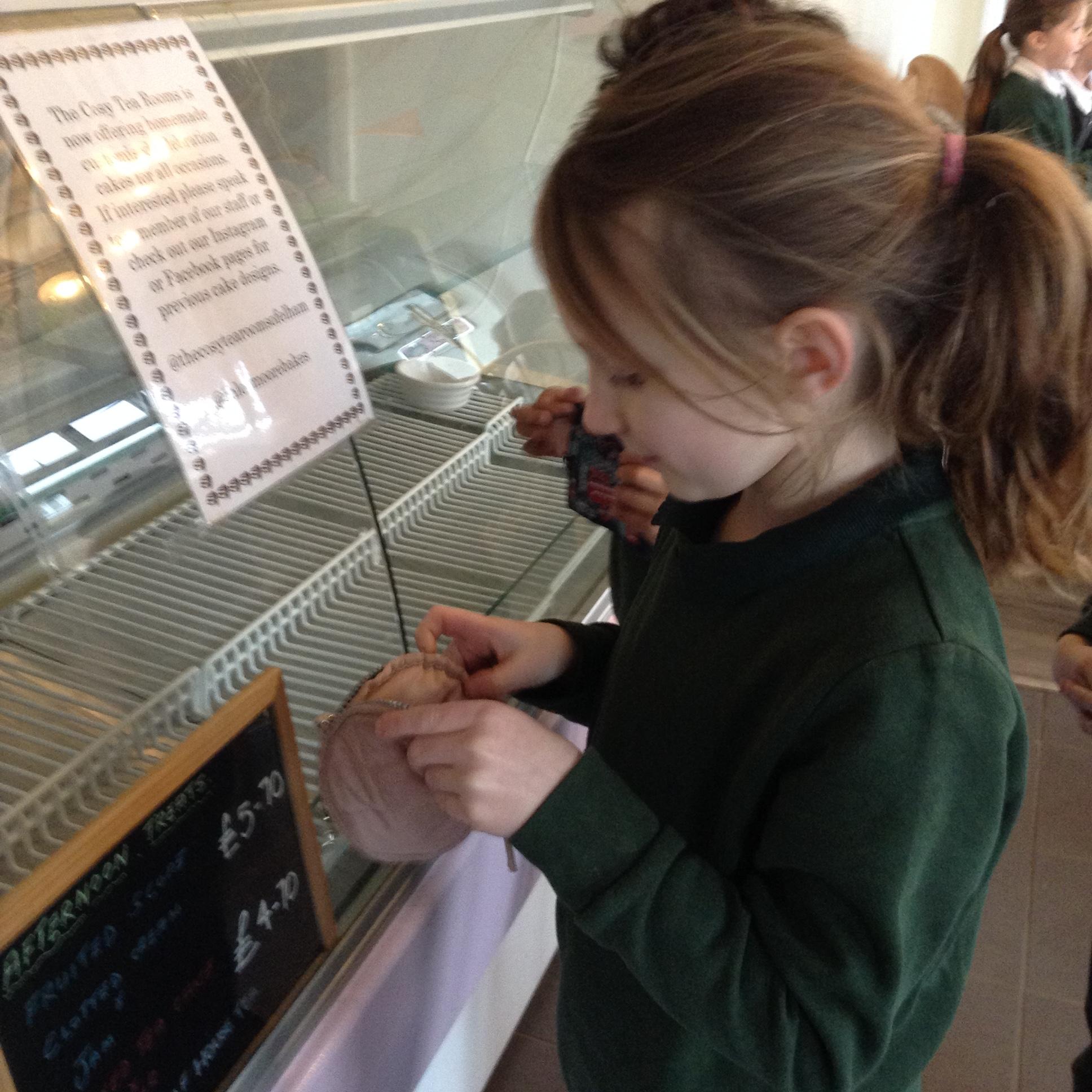 The children really enjoyed their trip to the tearooms today. They all ordered their own drink and cake and paid for it using money from their purses!