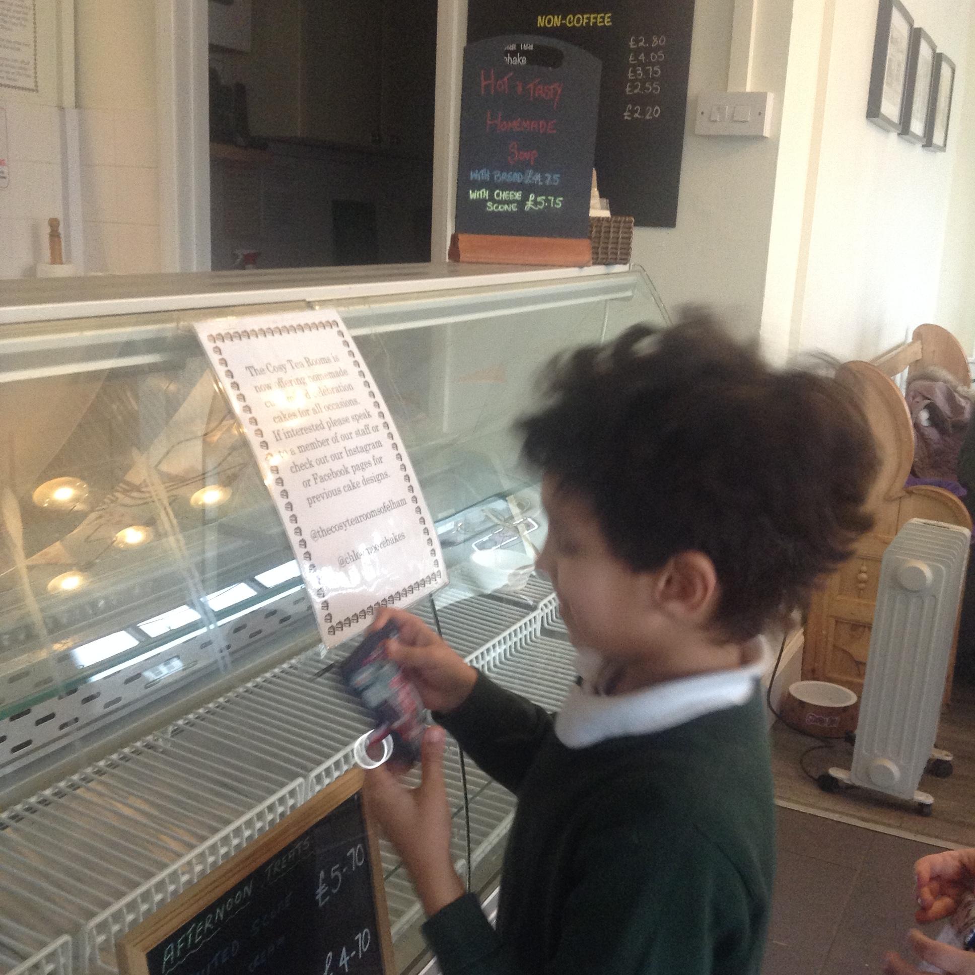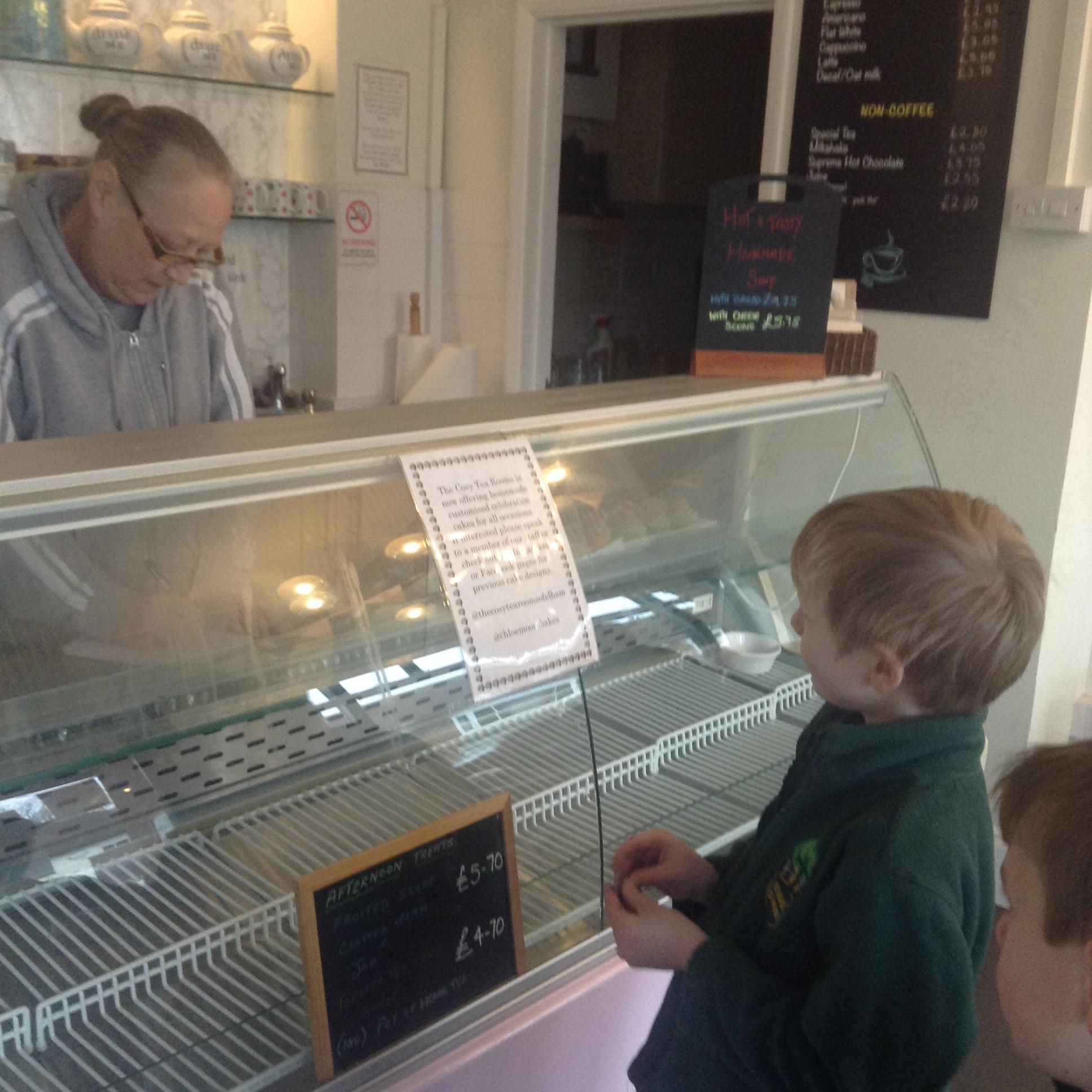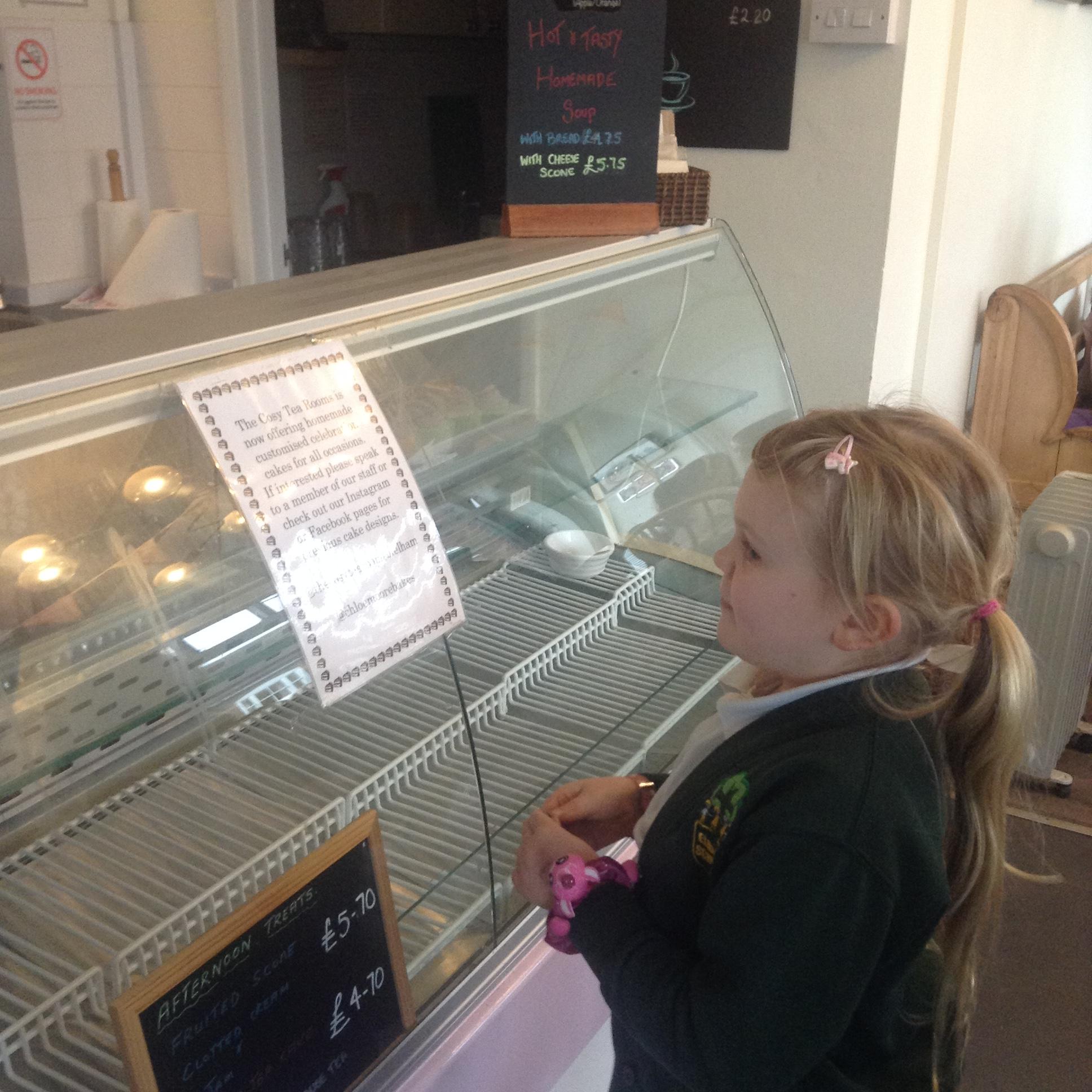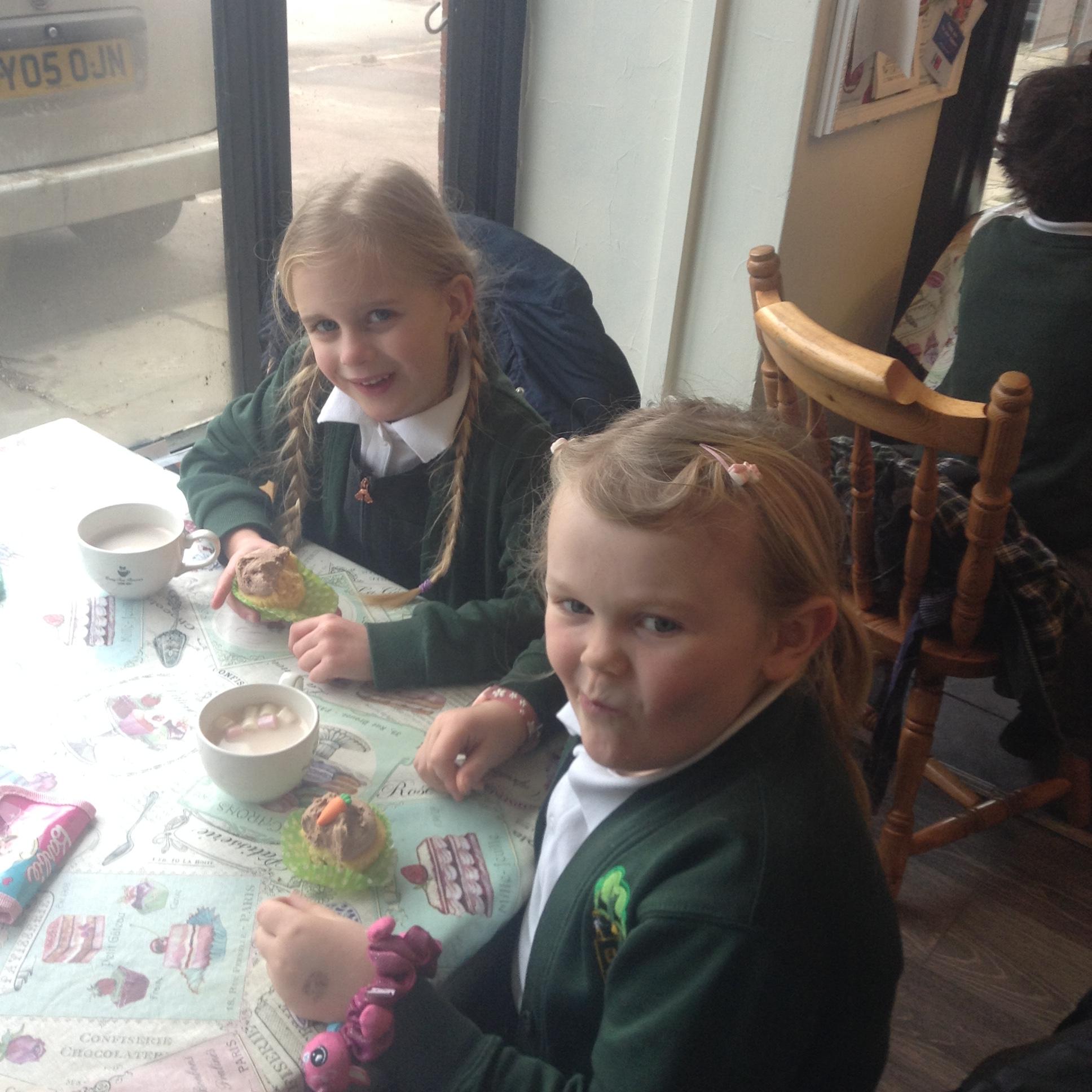 The children really enjoyed their trip to the tearooms today. They all ordered their own drink and cake and paid for it using money from their purses!