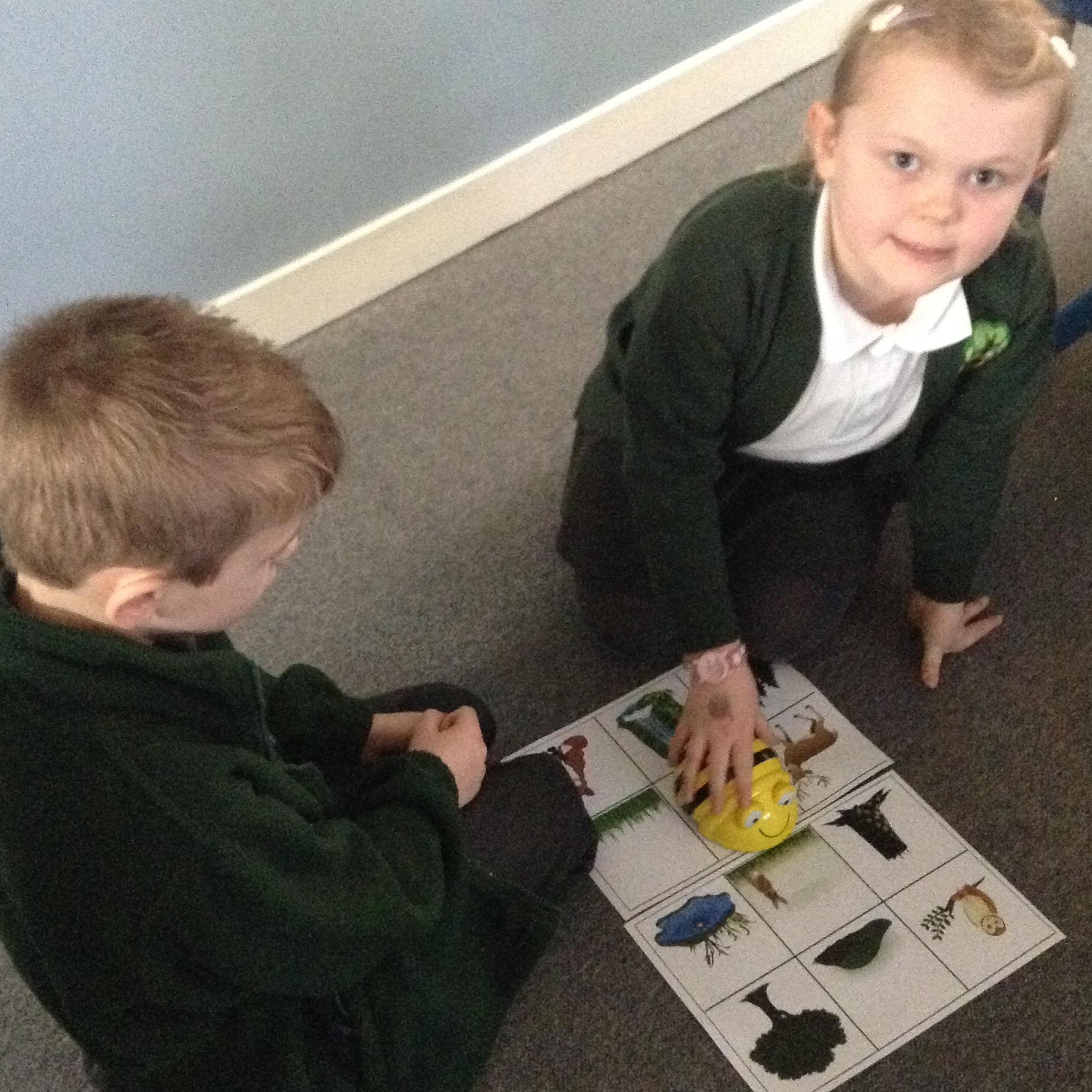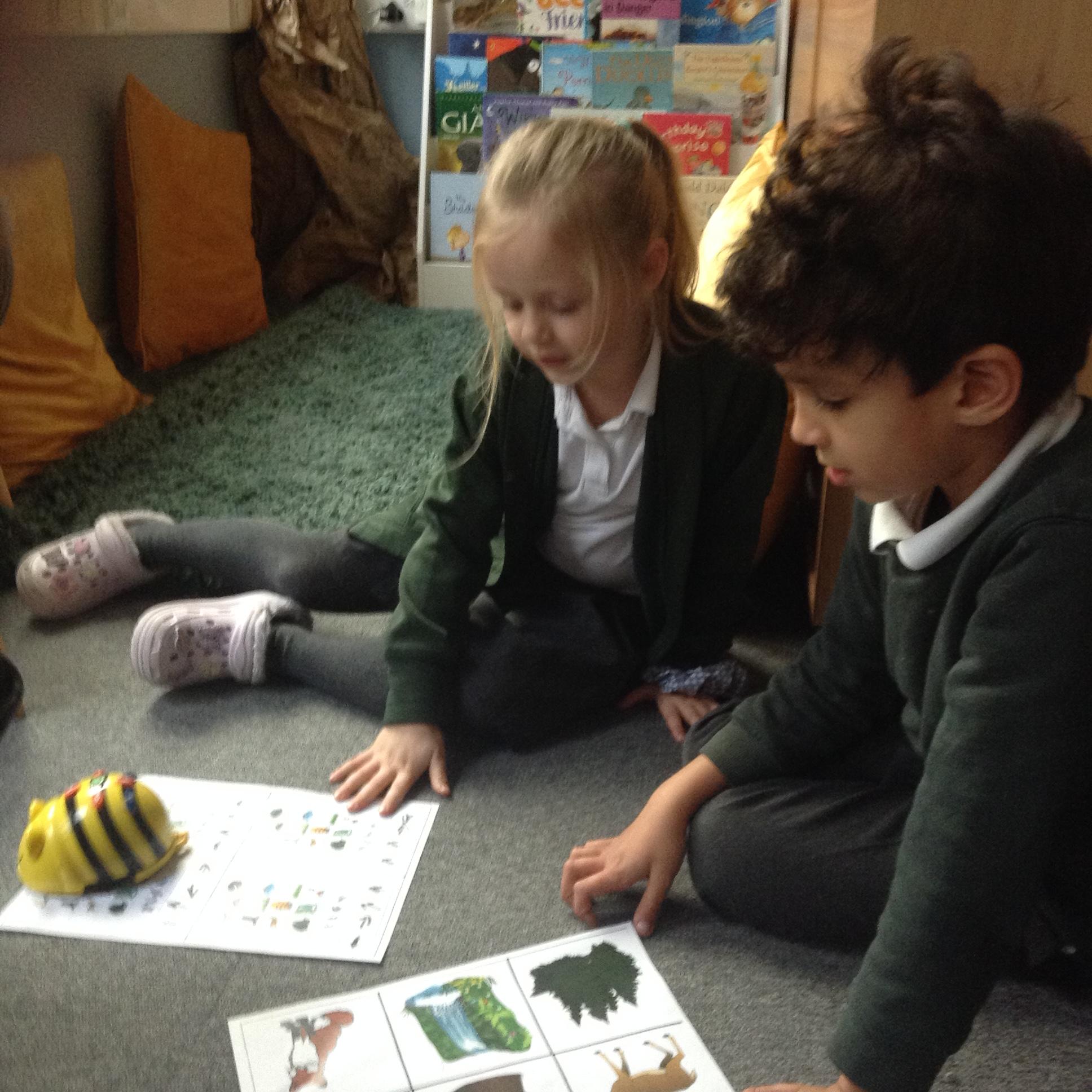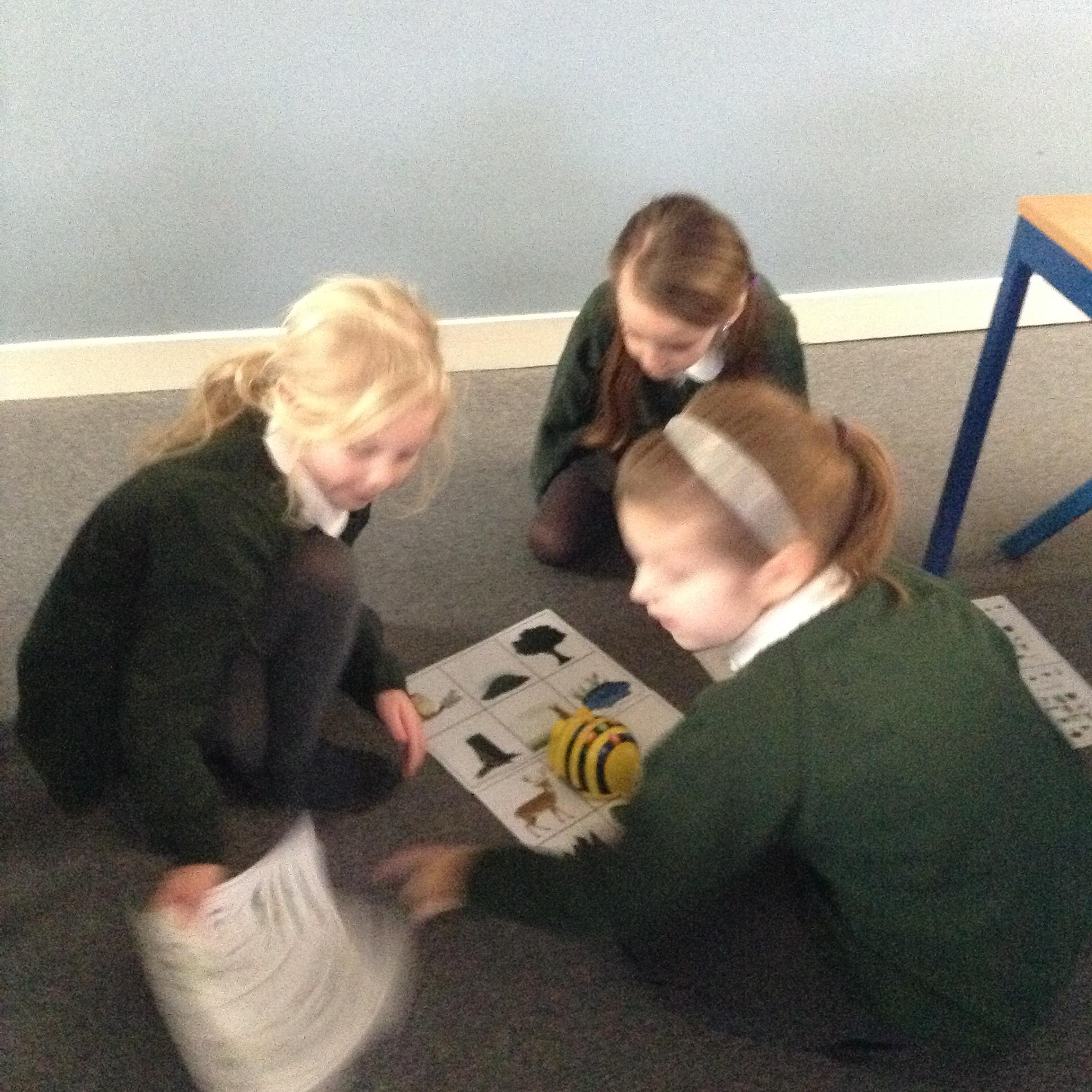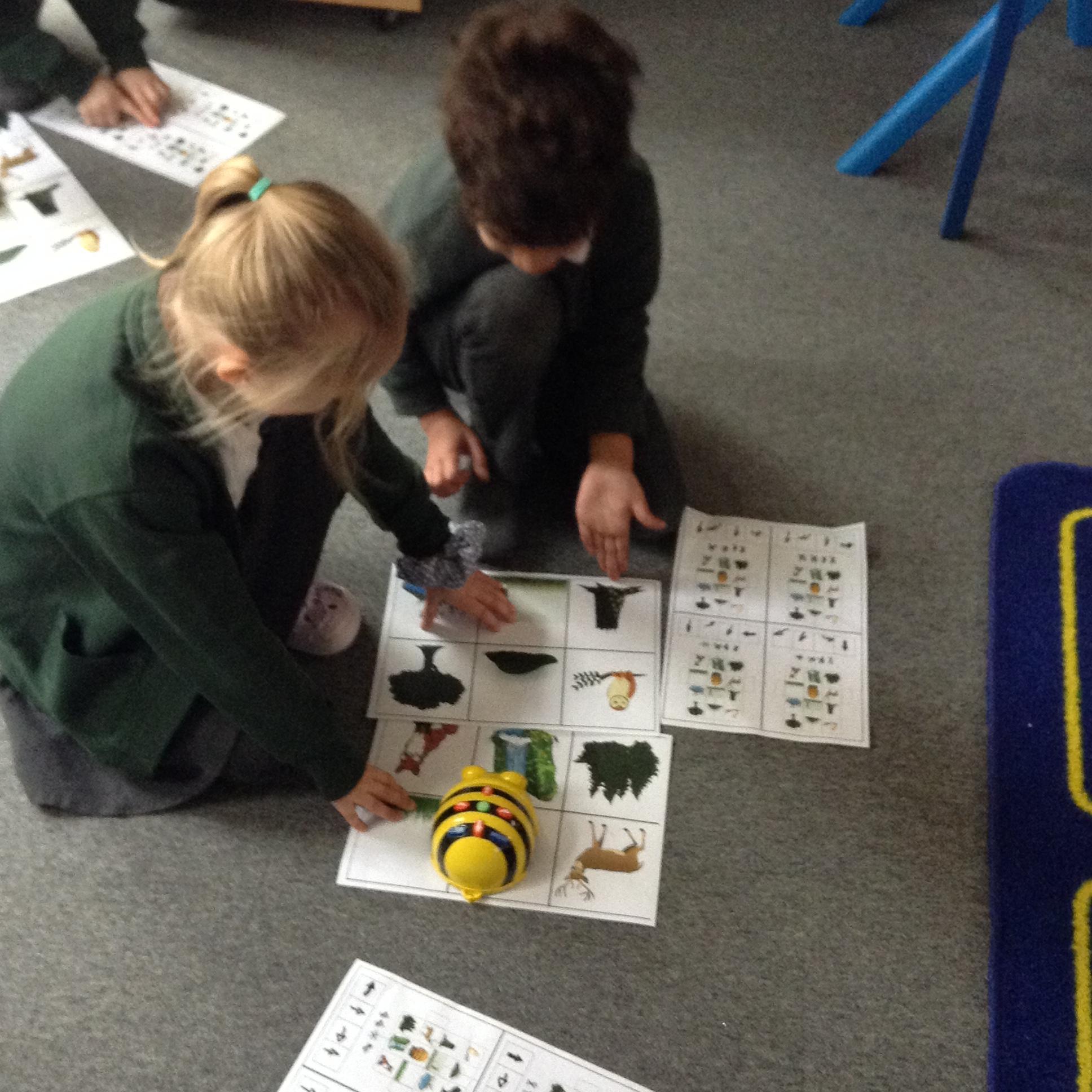 The children have been using an algorithm to program a sequence on a floor robot.