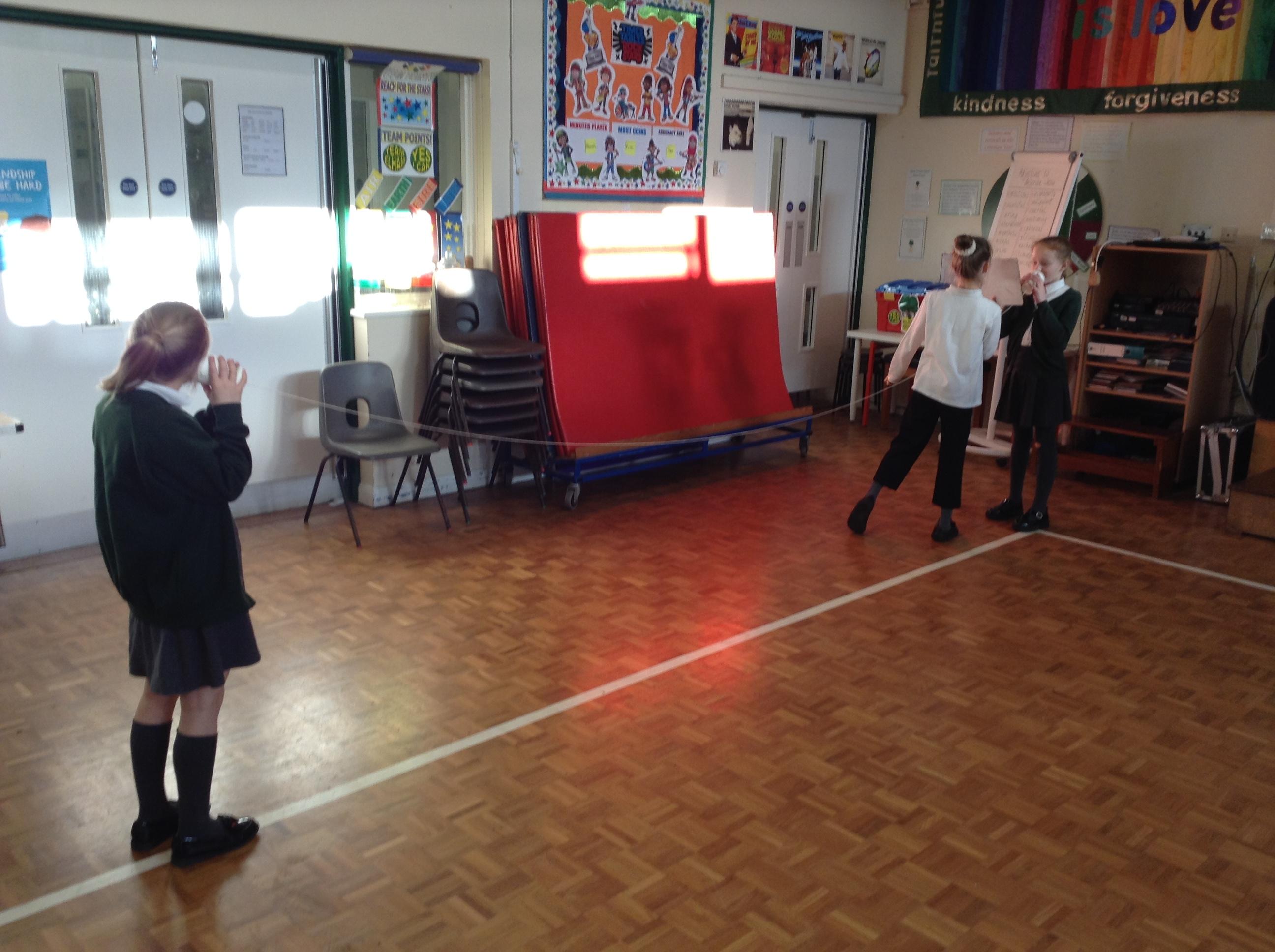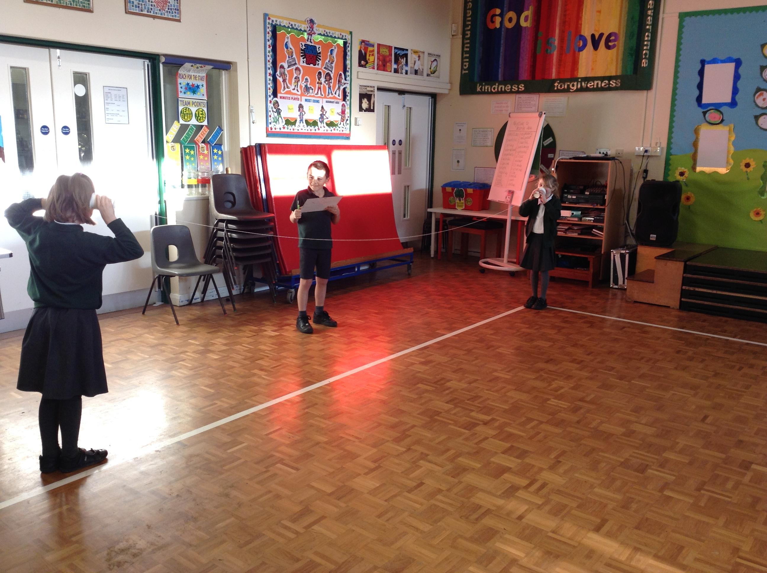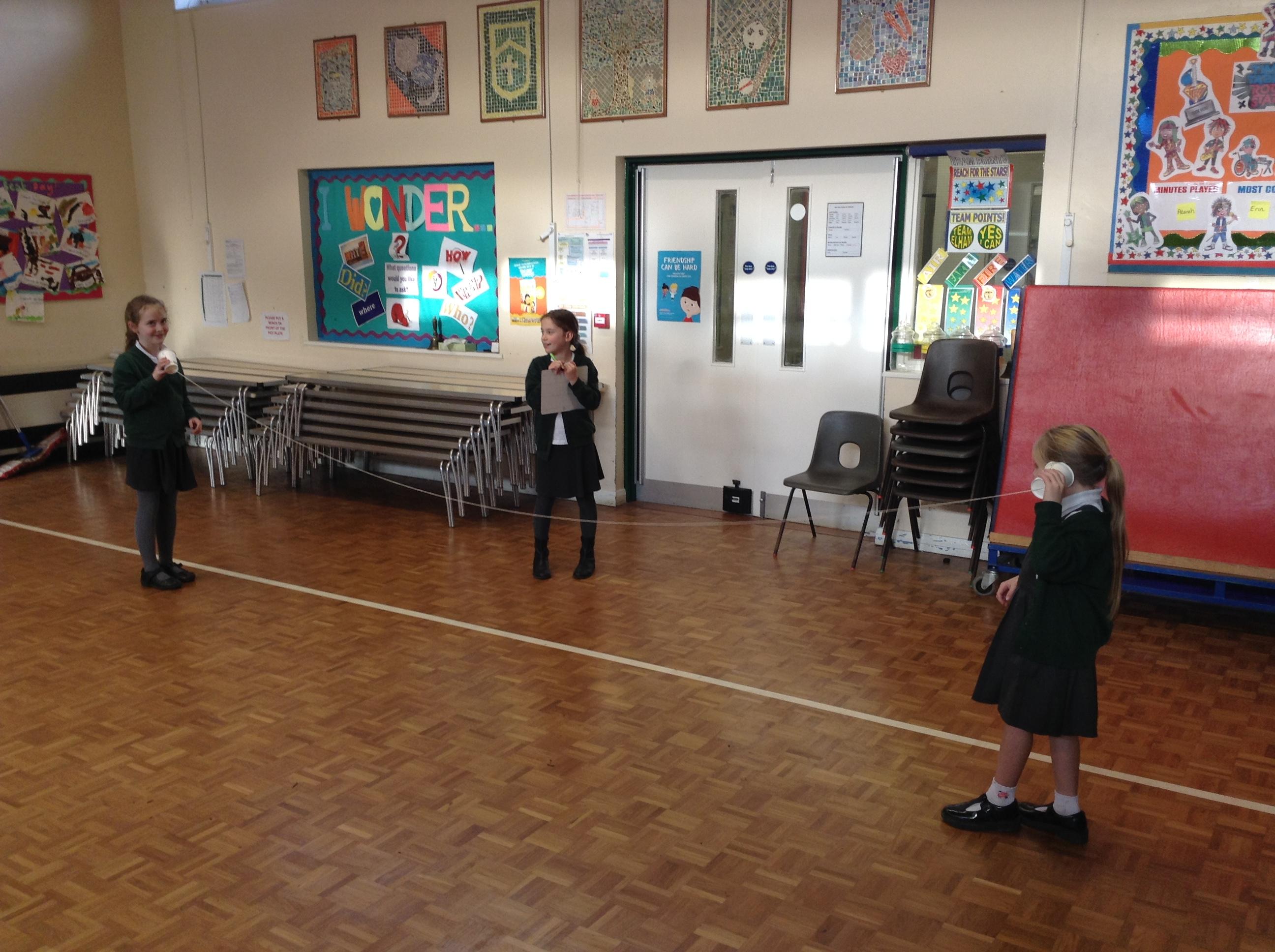 In Science the children have enjoyed investigating how sound waves travel through different mediums. They researched how whales and dolphins communicate and use echolocation underwater and loved experimenting with the cup and string telephones! We learnt how prisoners of war used to communicate by using a special code and tapping on metal pipes - maybe you can have a go at home!