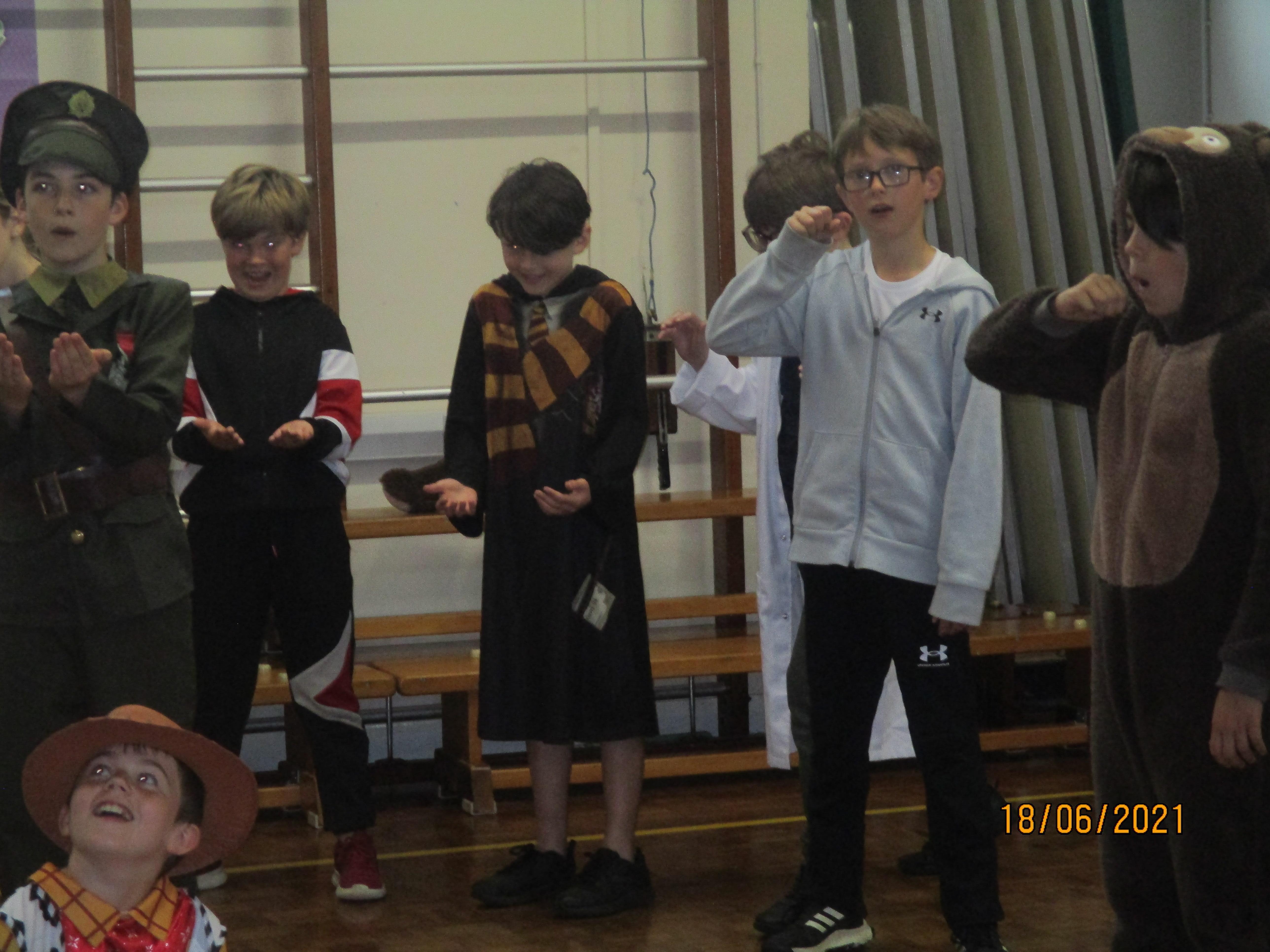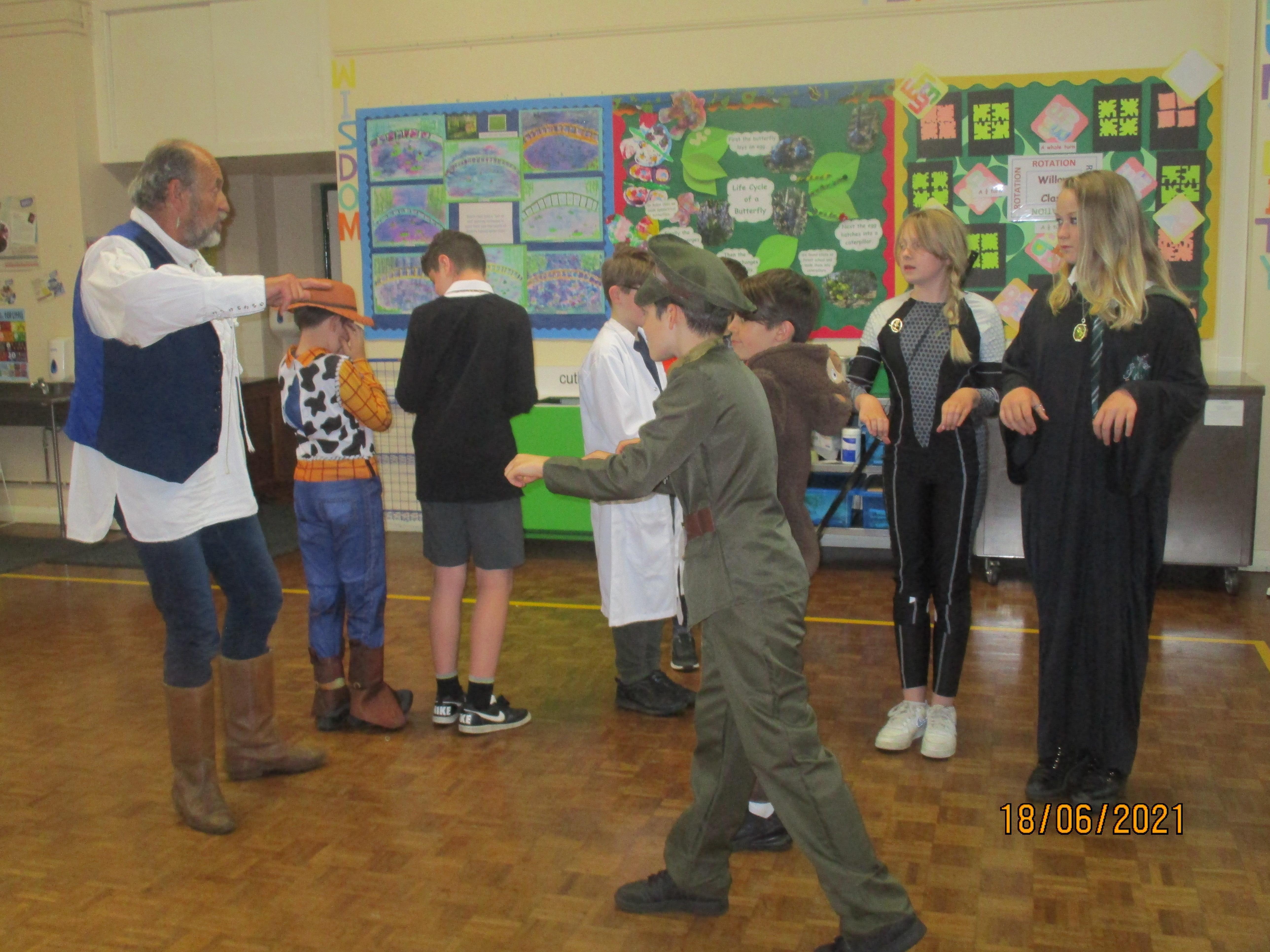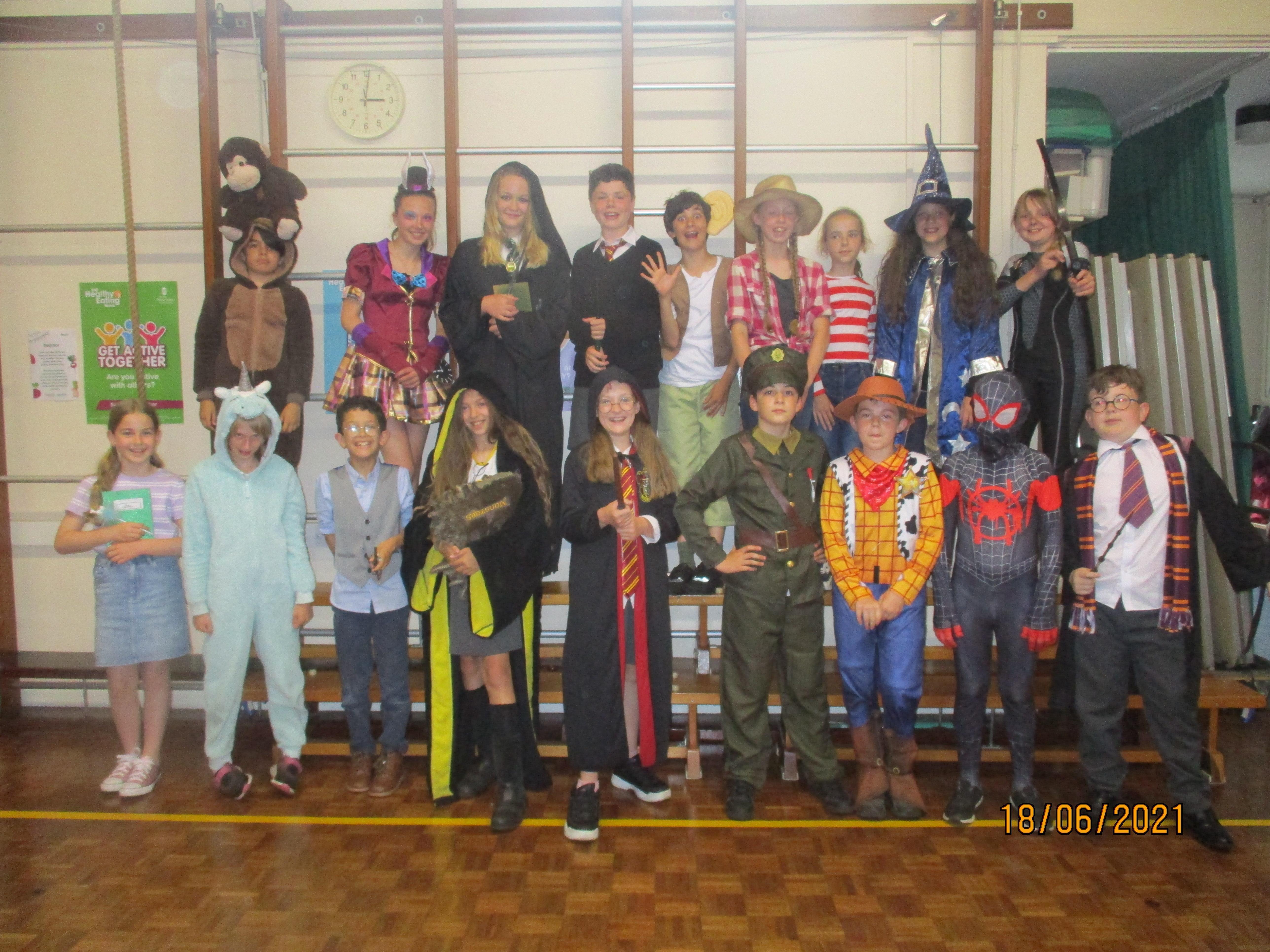 Finally, we finished our fantastic Book Week with a session full of music and drama created for us by 'Pirate' Pete and Ramona from The Tales From The Book of Life. We clearly enjoyed this activity as you will see from the photos and videos below. As usual, we all loved dressing up for the final day of Book Week as you will see from the photo below.