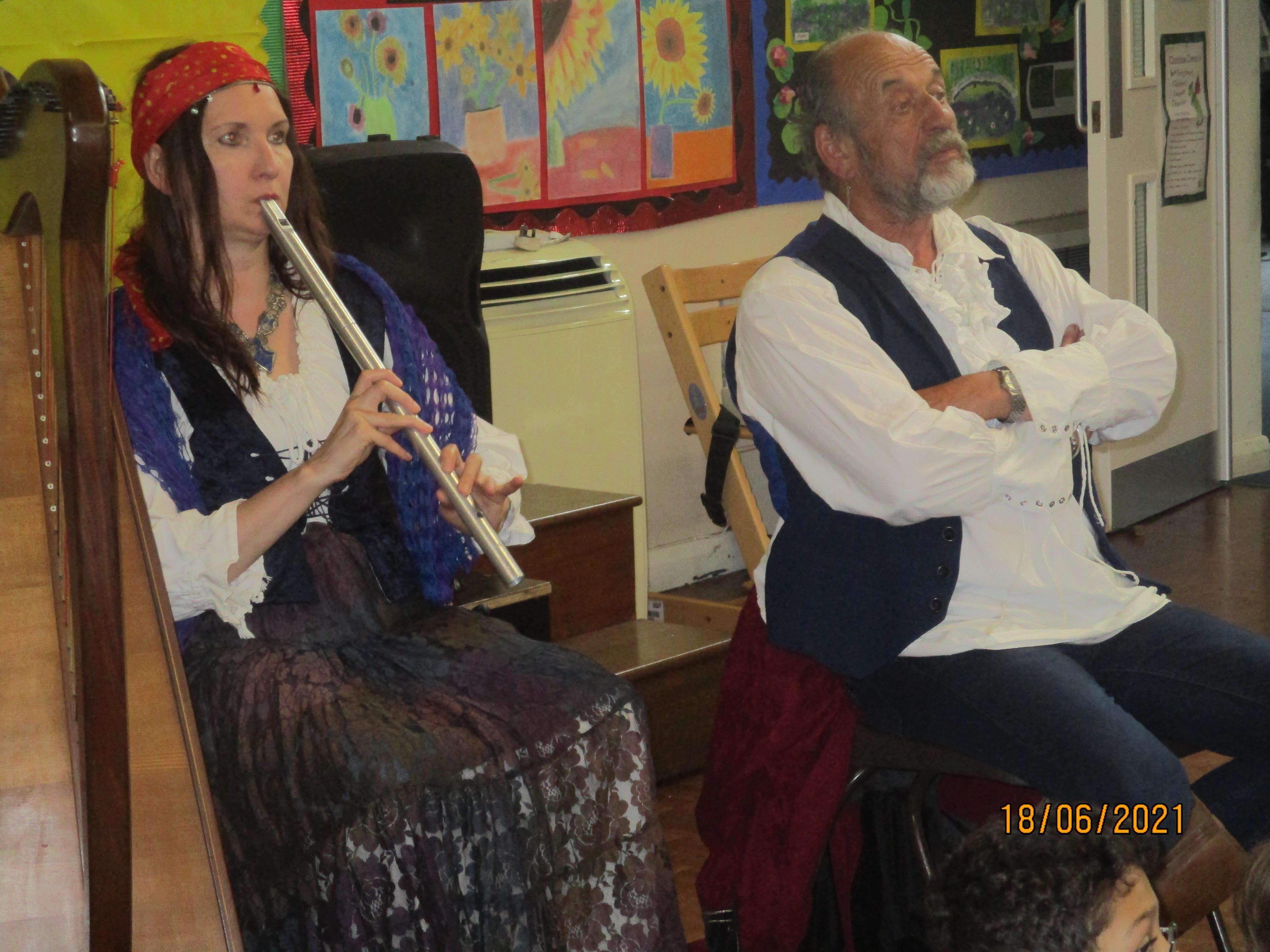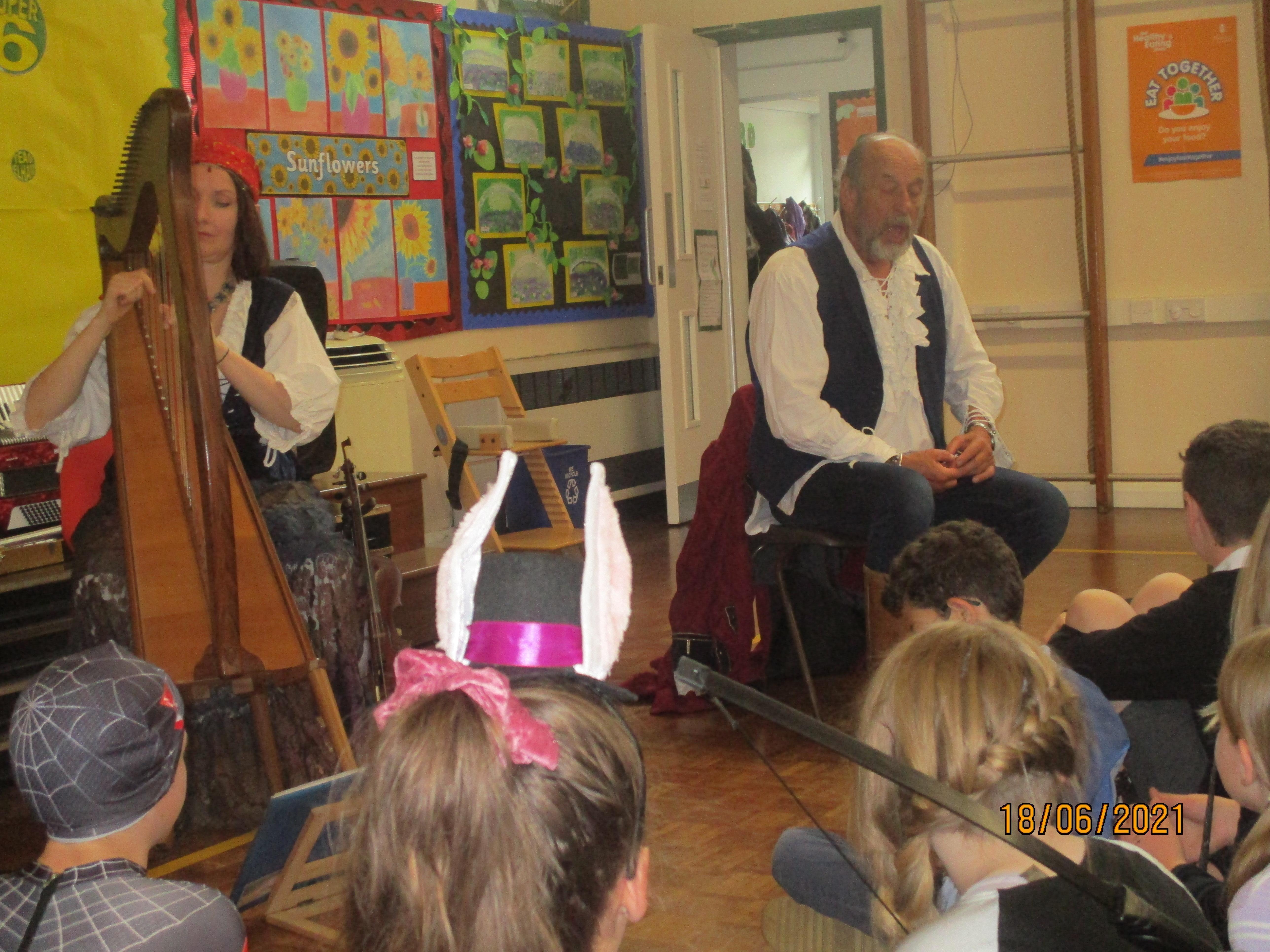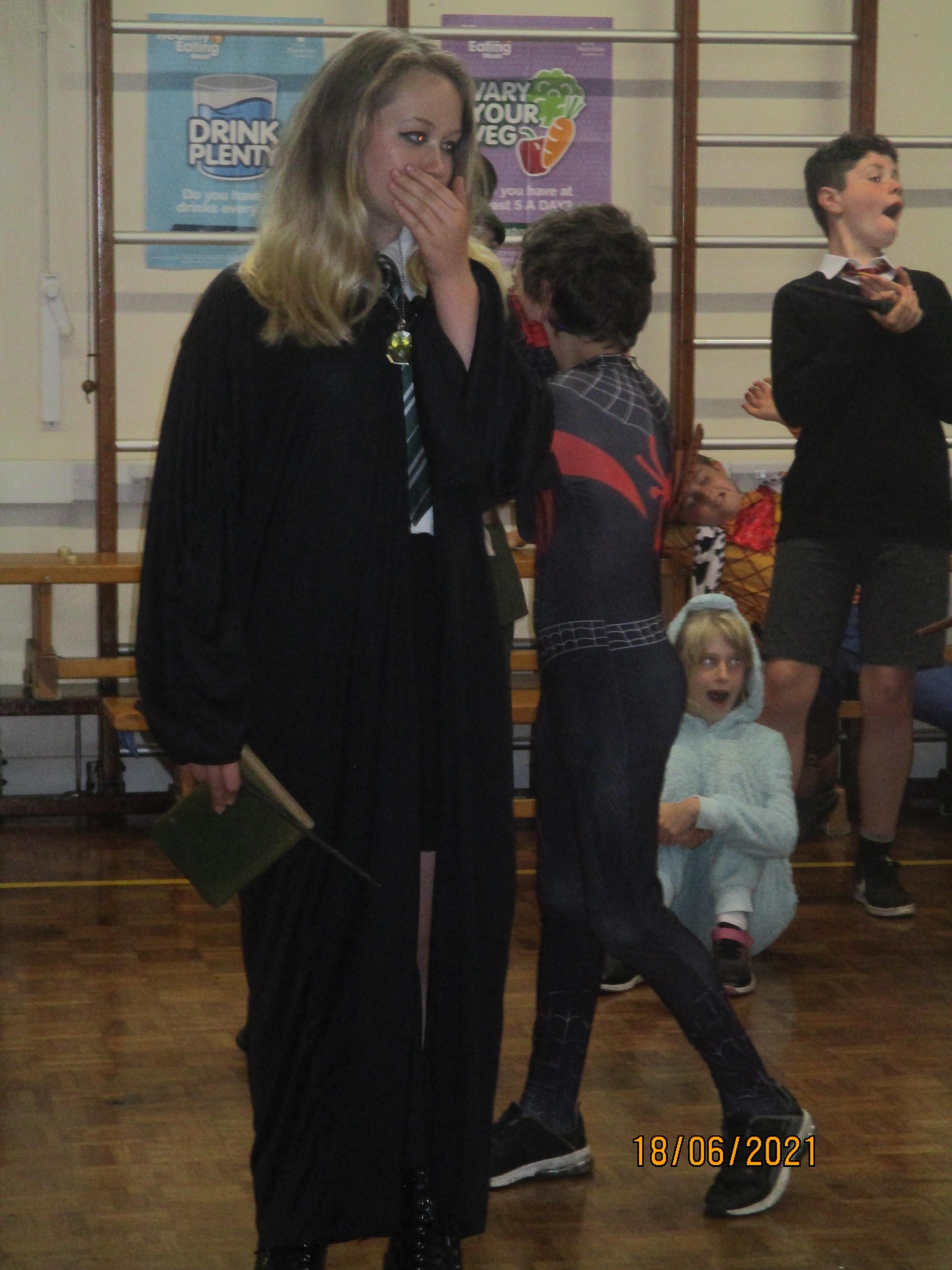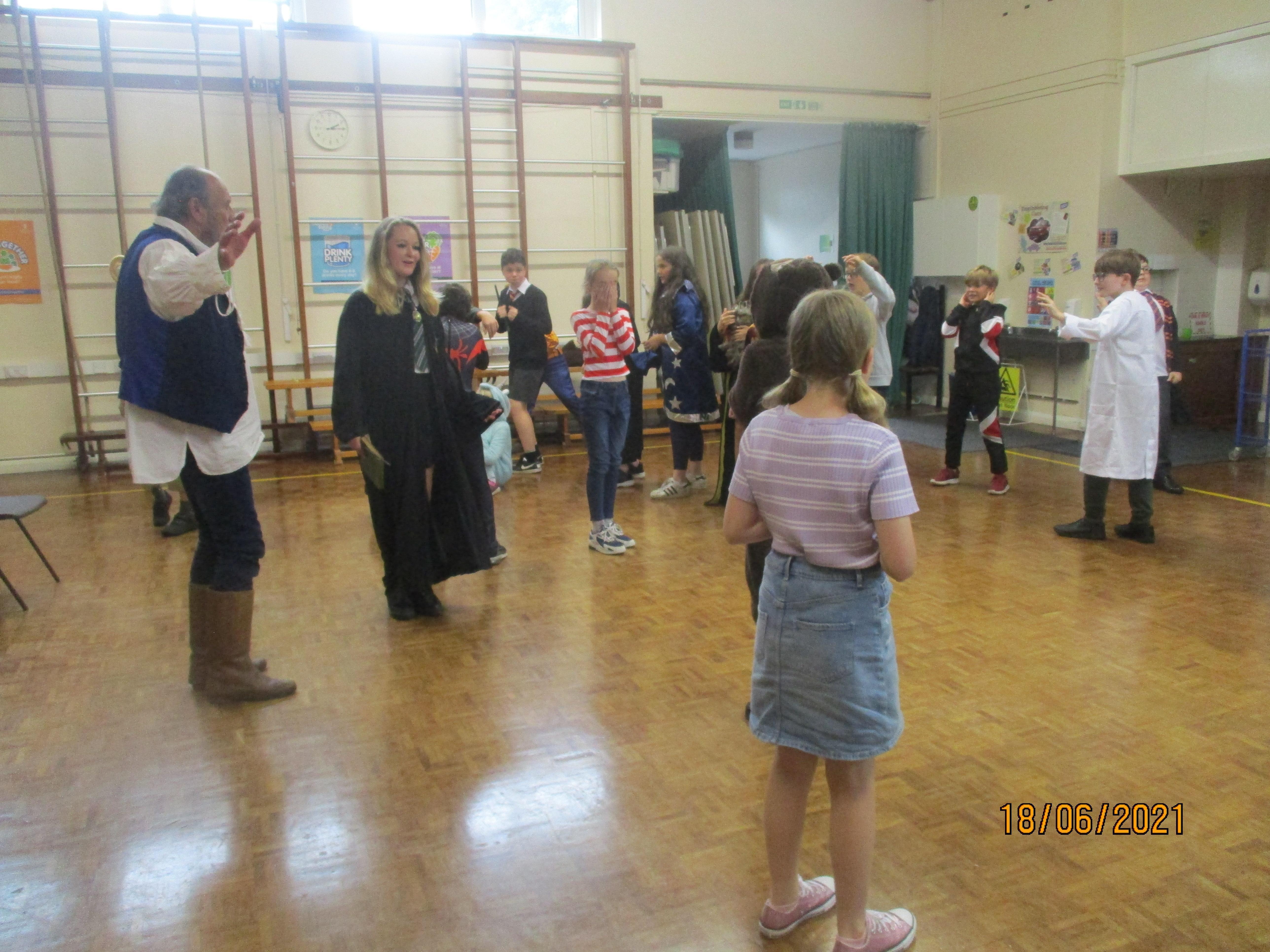 Finally, we finished our fantastic Book Week with a session full of music and drama created for us by 'Pirate' Pete and Ramona from The Tales From The Book of Life. We clearly enjoyed this activity as you will see from the photos and videos below. As usual, we all loved dressing up for the final day of Book Week as you will see from the photo below.