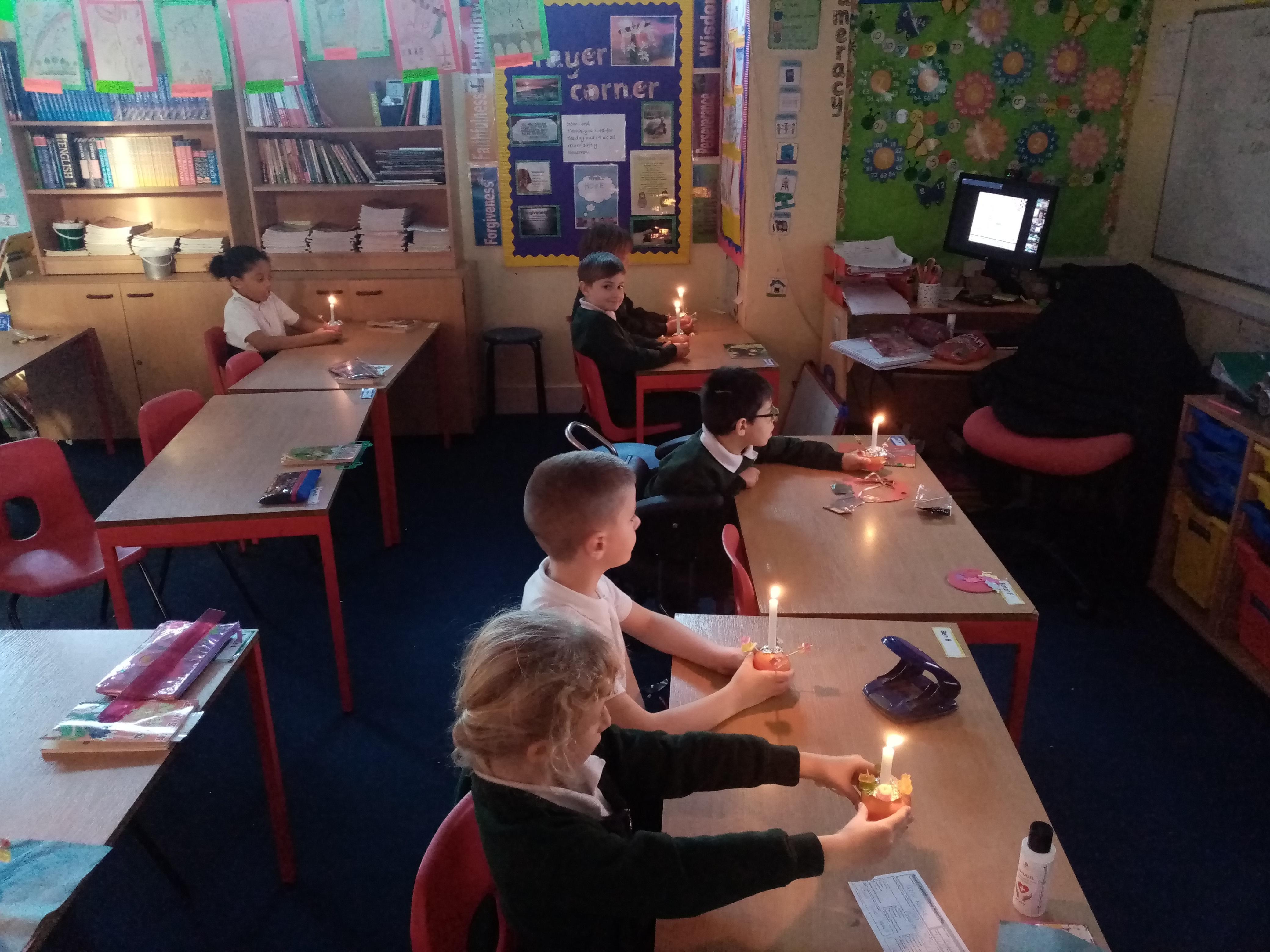 We had our Christingle service in class via zoom. On the last day we enjoyed our Christmas dinners together, had a visit from 2 festive donkeys and a surprise visit from Santa Claus himself. We also received lots of lovely gifts.