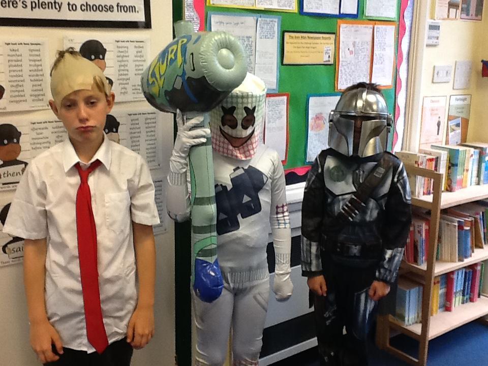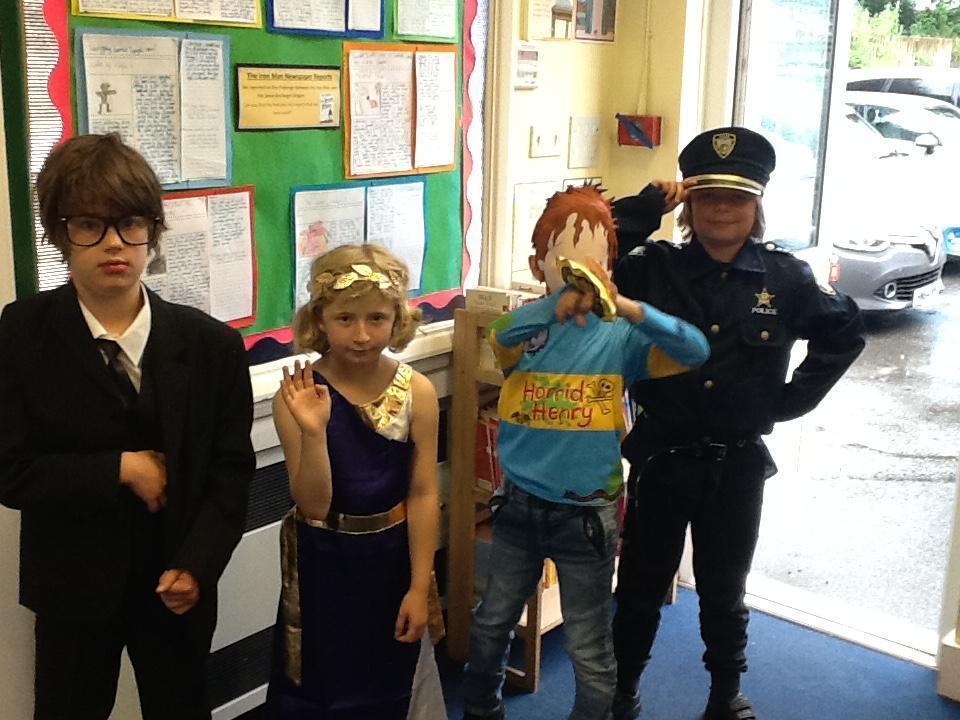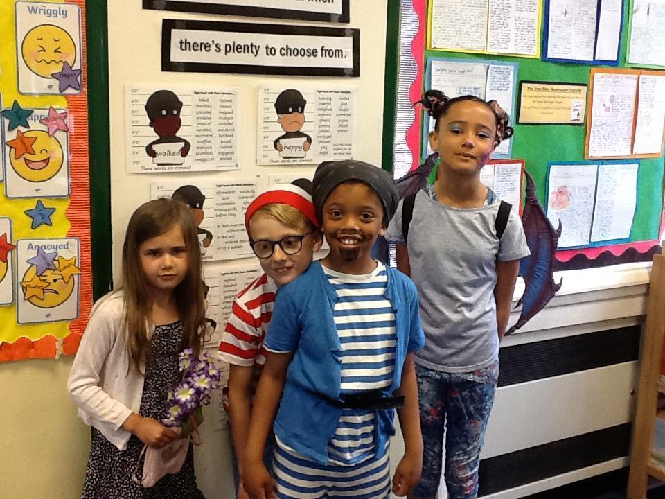 What a fantastic book week! The children have enjoyed meeting different authors and creating their own comic strip. Today they also had fun miming the different jobs on a large sailing ship from raising the anchor to scrubbing the decks and finishing off with a jig! The costumes today were amazing so thank you for your support with this. Have a look at the photos and see if you can guess who they are.