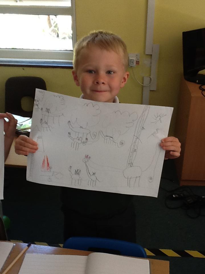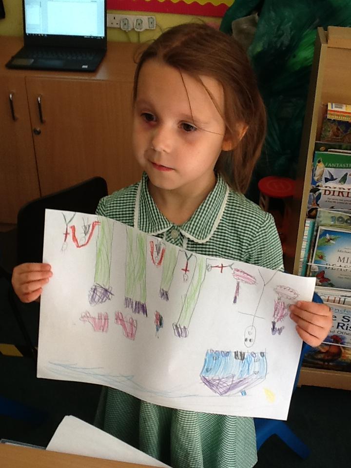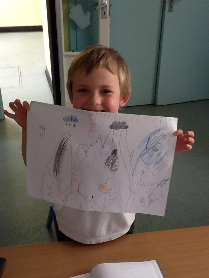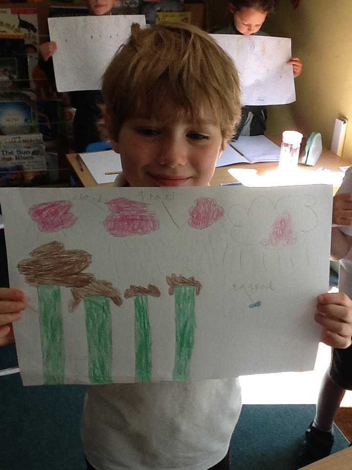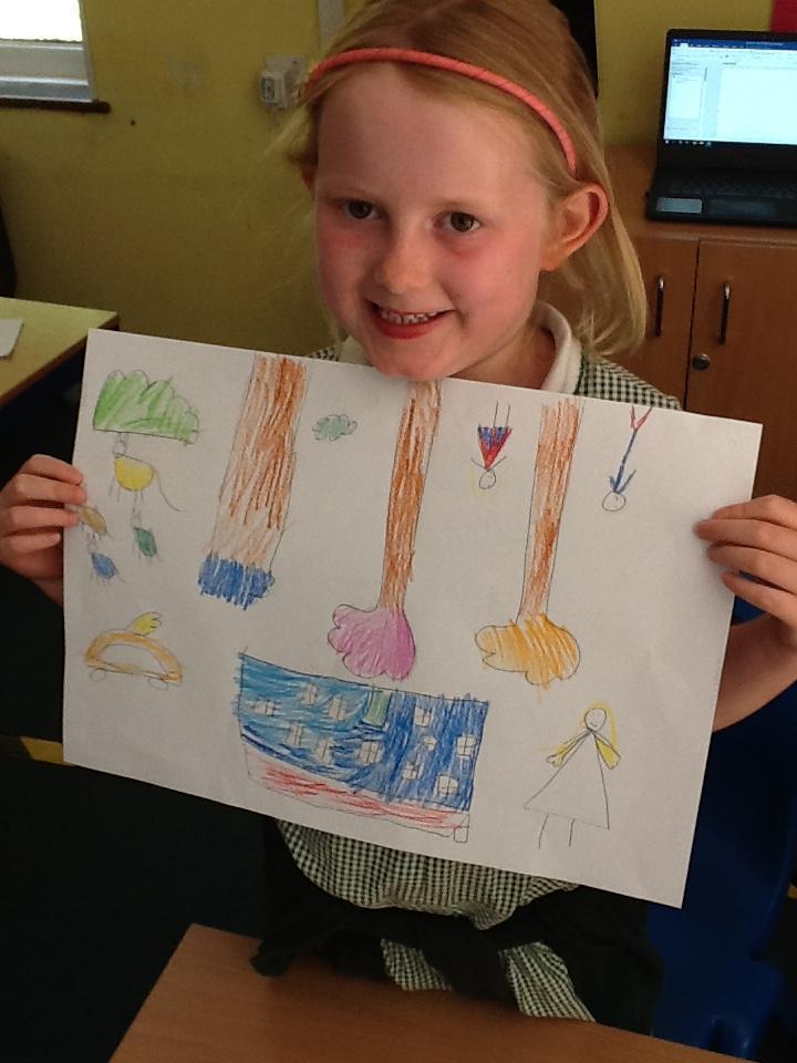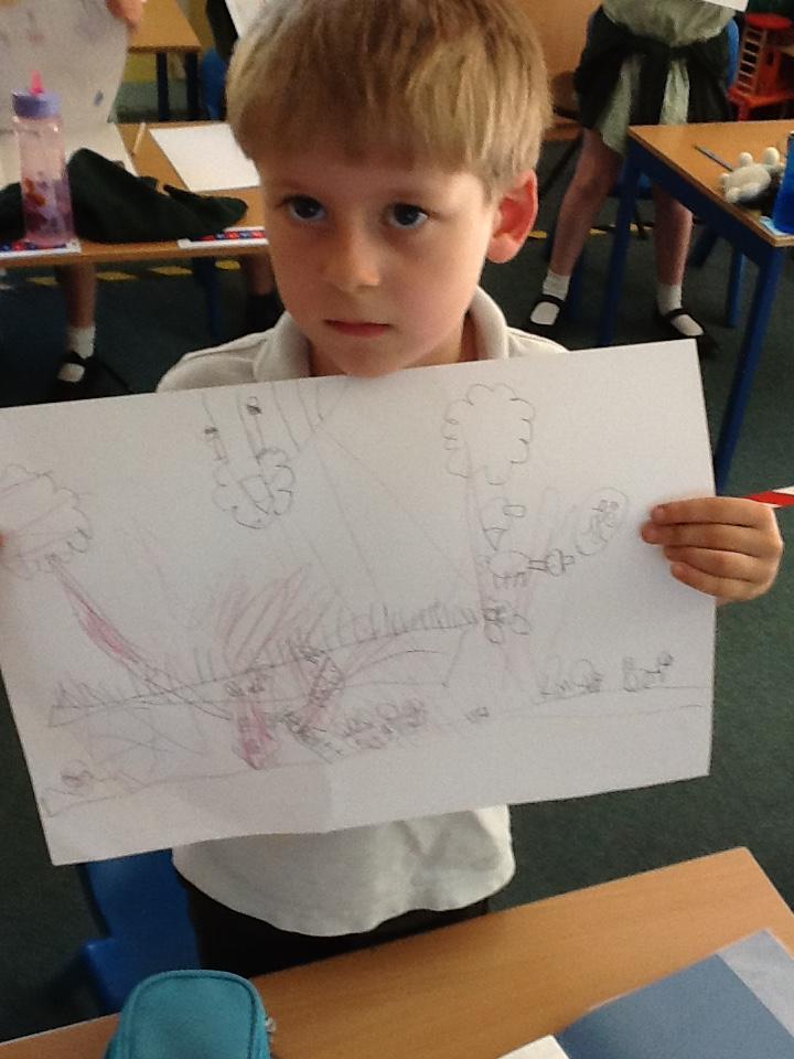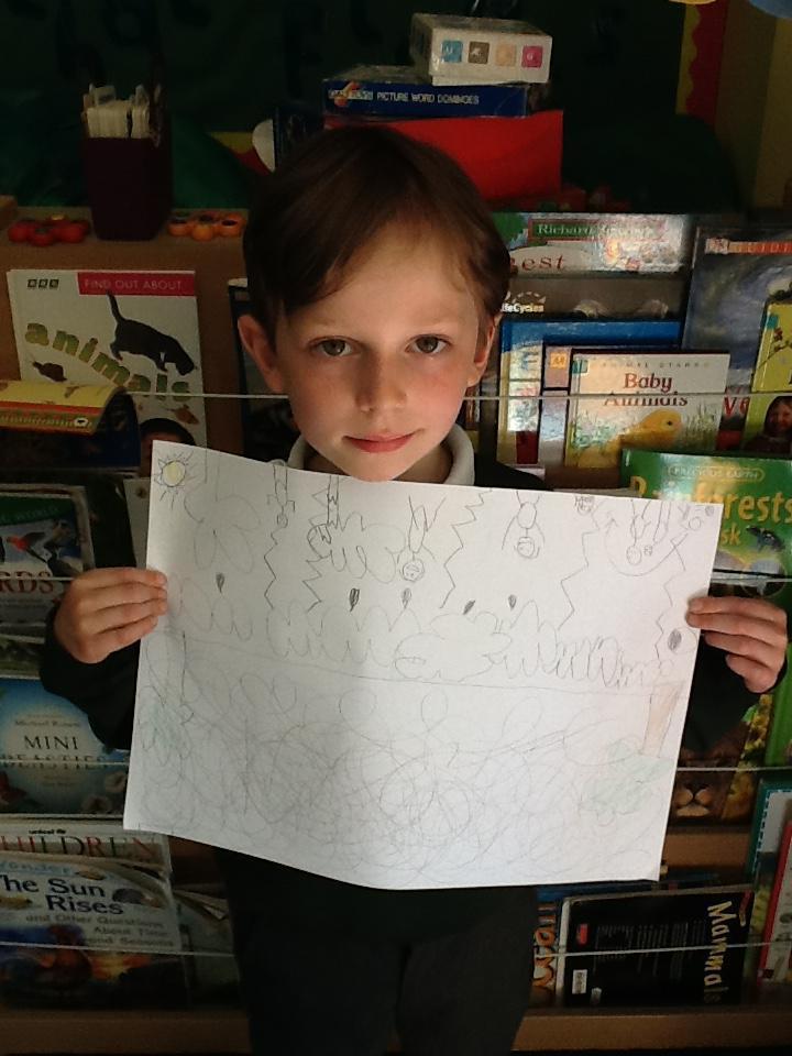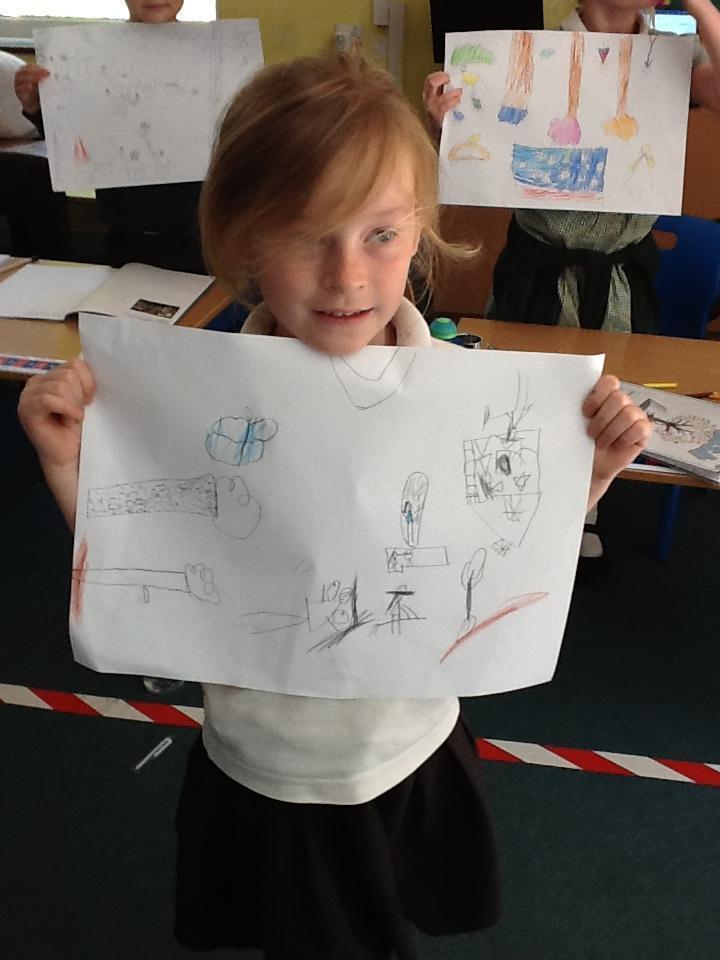 We have an author in today, Steve Clifford, who has encouraged us to use our imaginations! We have been drawing pictures of the world, but the trees might be upside down or the clouds might be raining cats and dogs or there might be blades of grass growing down from the sky!