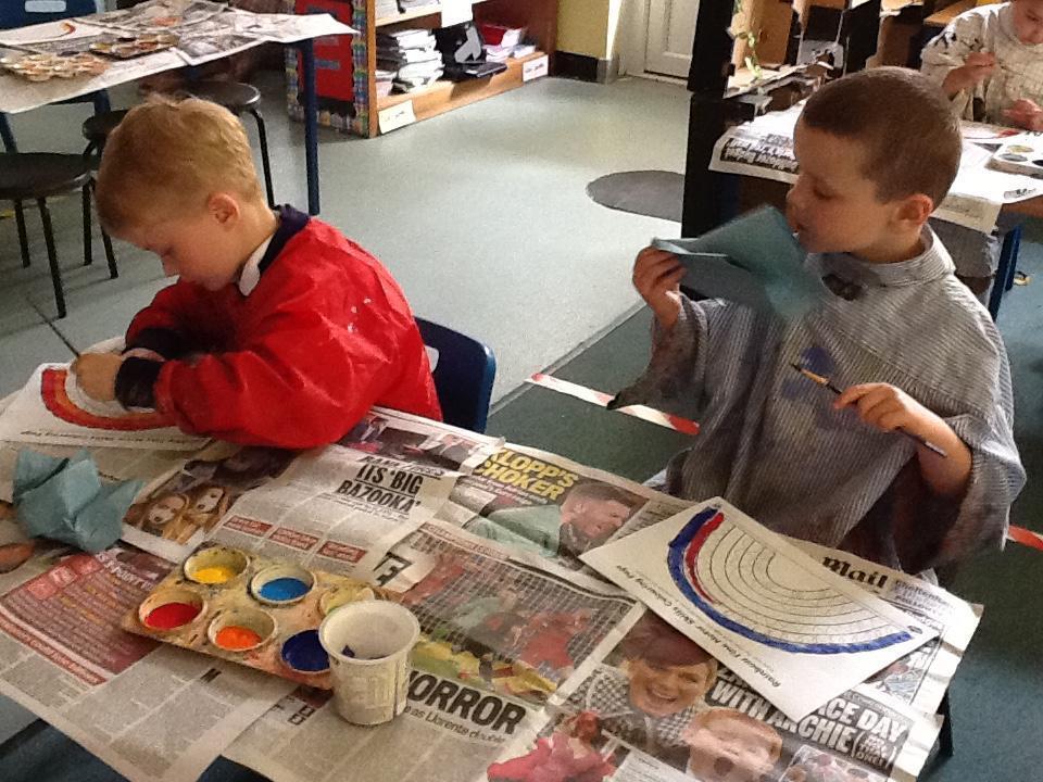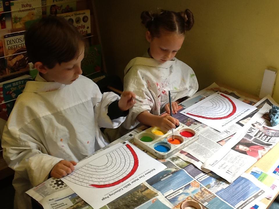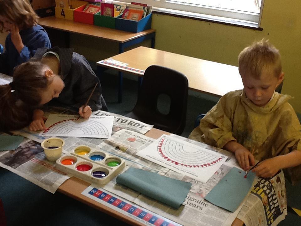 We sang 'I can see a rainbow' (and discovered the words were wrong in the song because there is no pink, like the song says) and used percussion instruments. We tried learning the names of the colours in French, but this was tricky!