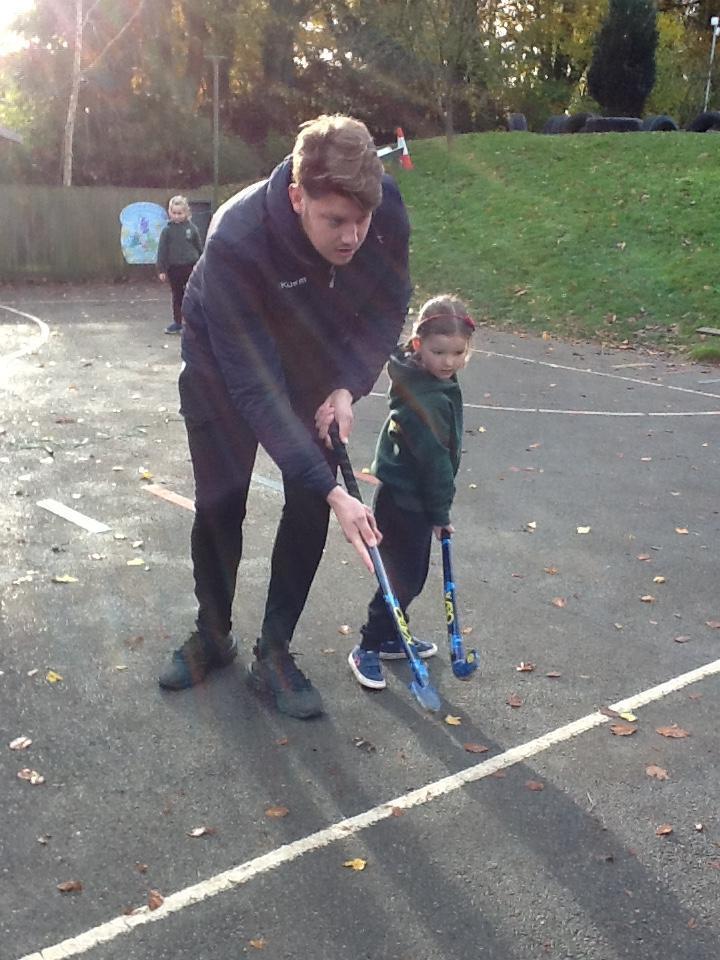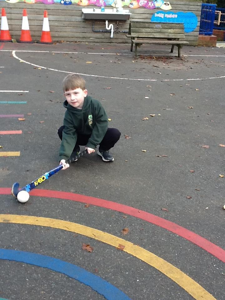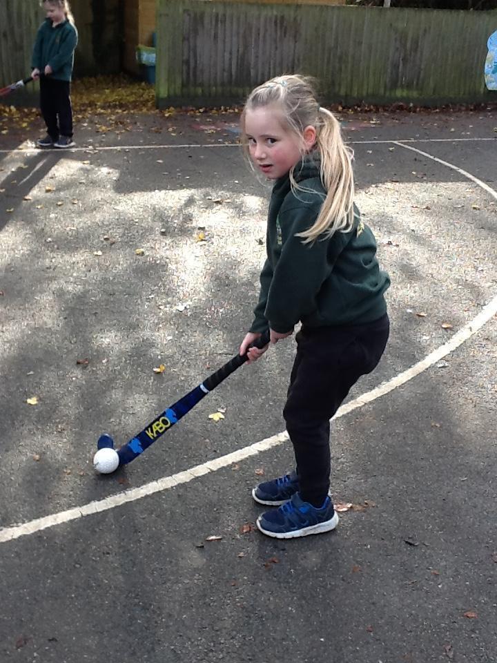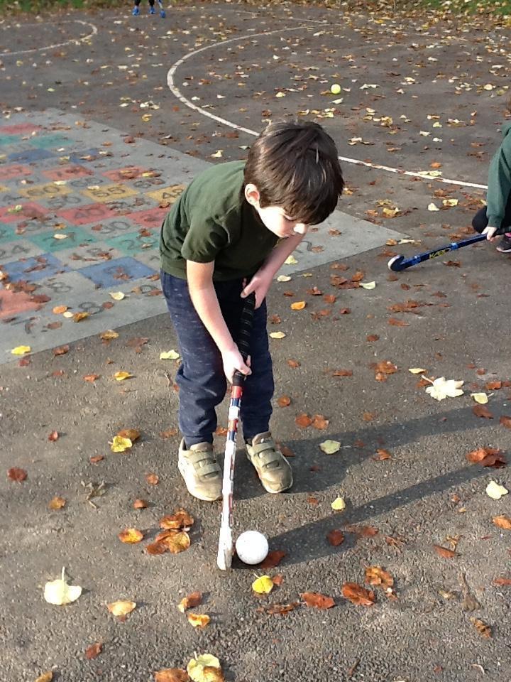 In hockey this week the children have continued to practise passing the ball (pushing) and stopping it by laying their hockey stick flat.