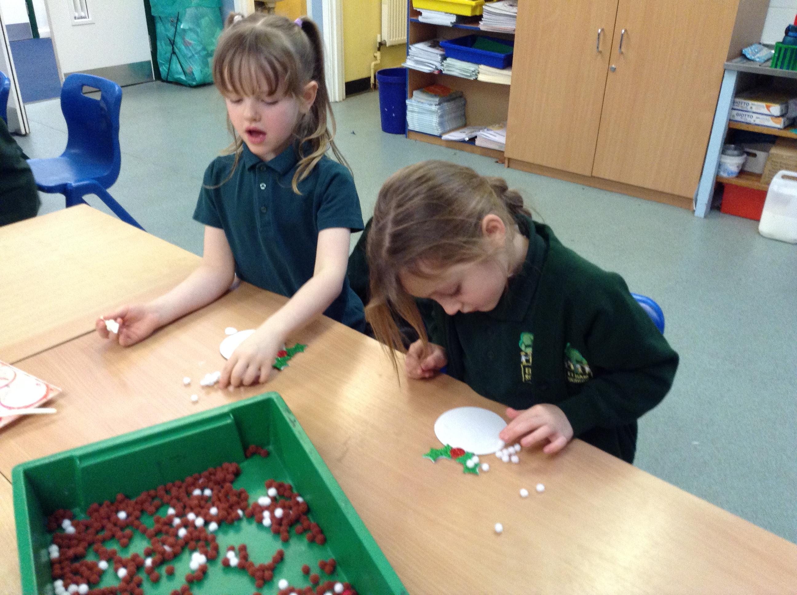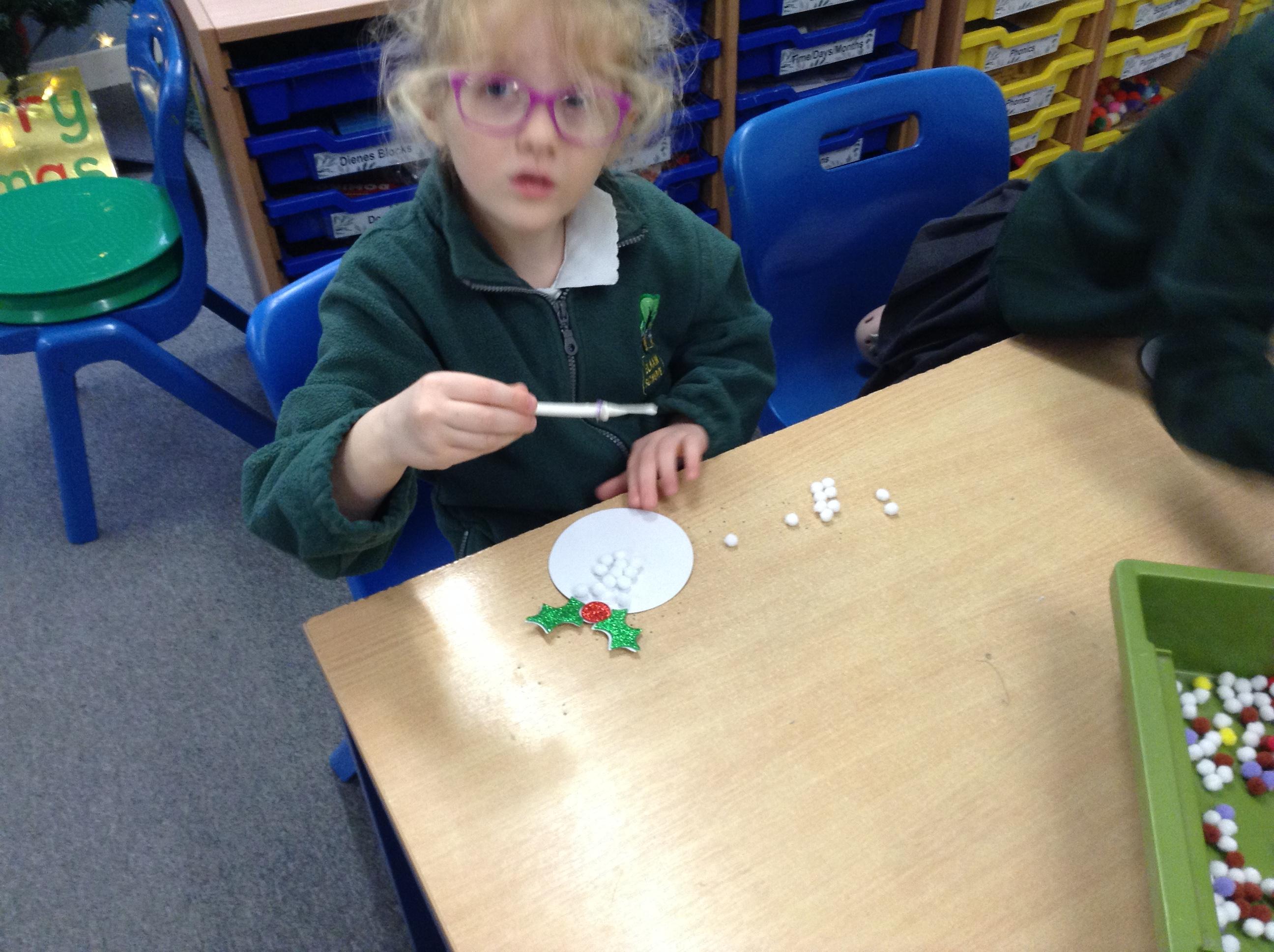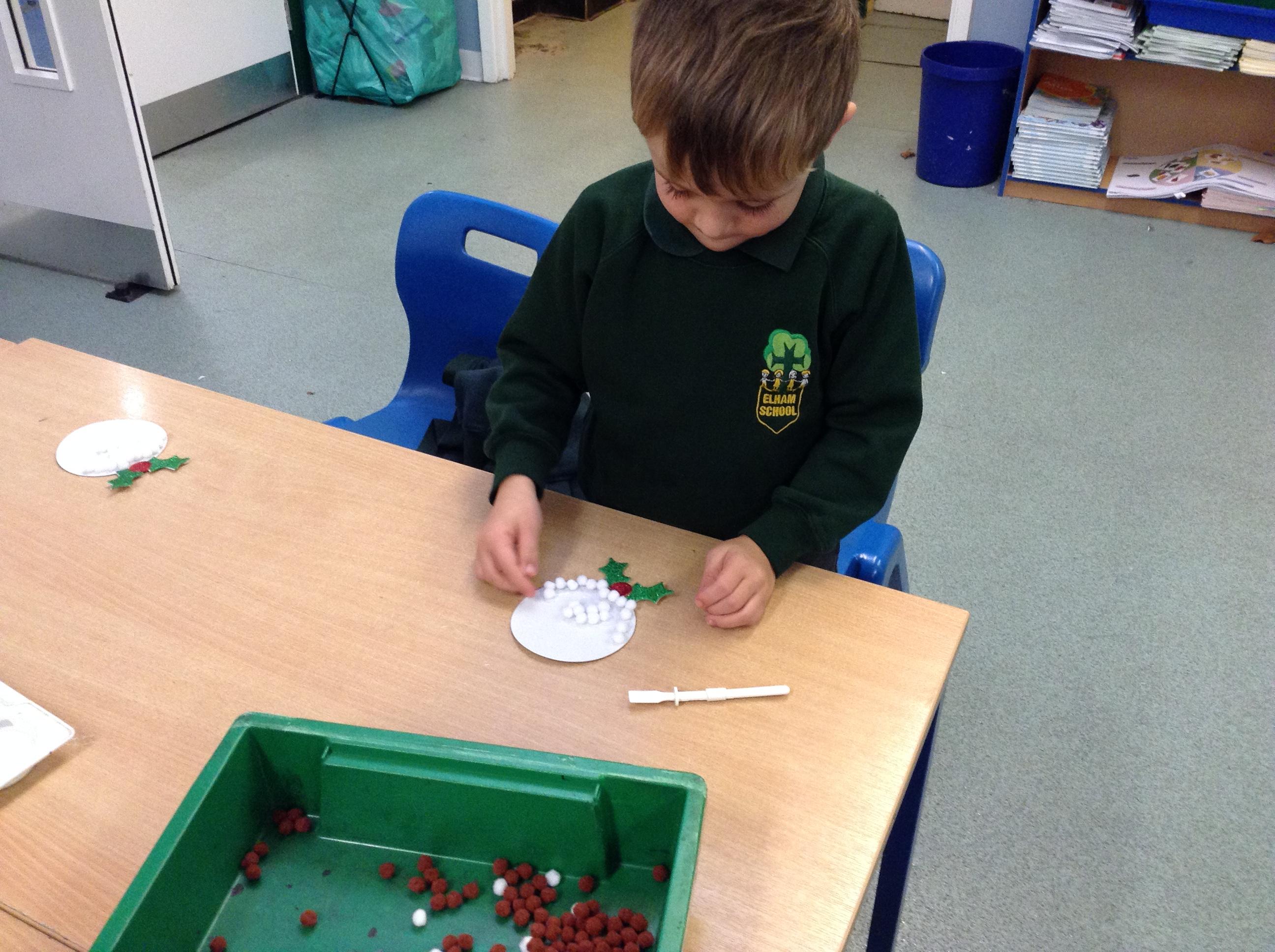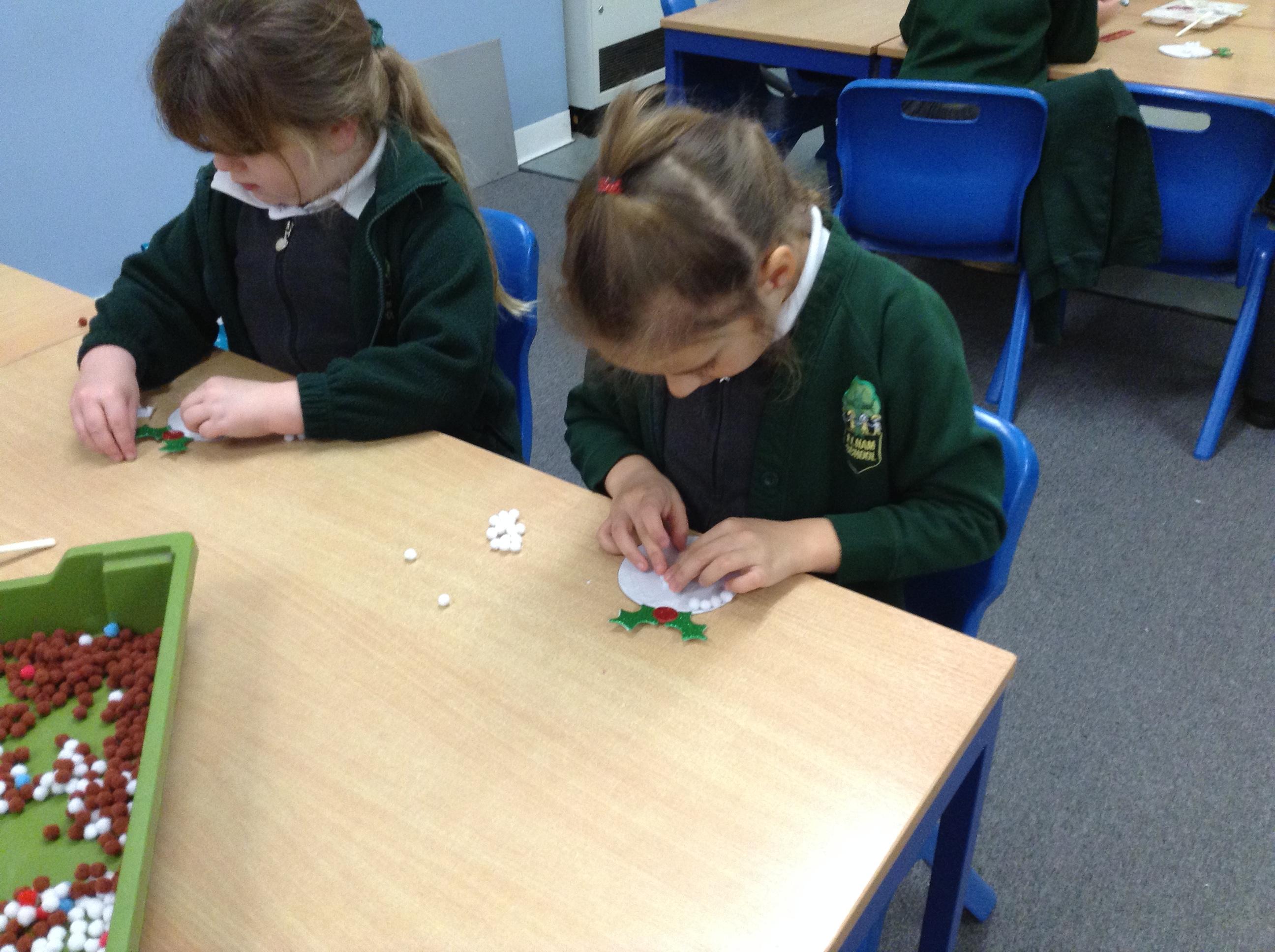 We've written and posted letters to Father Christmas - and then had a visit and an early present from the big man himself!! We've made Christmas cards, pom pom Christmas puddings and crowns for Christmas dinner and we're looking forward to making Christingles for the church service on Friday.