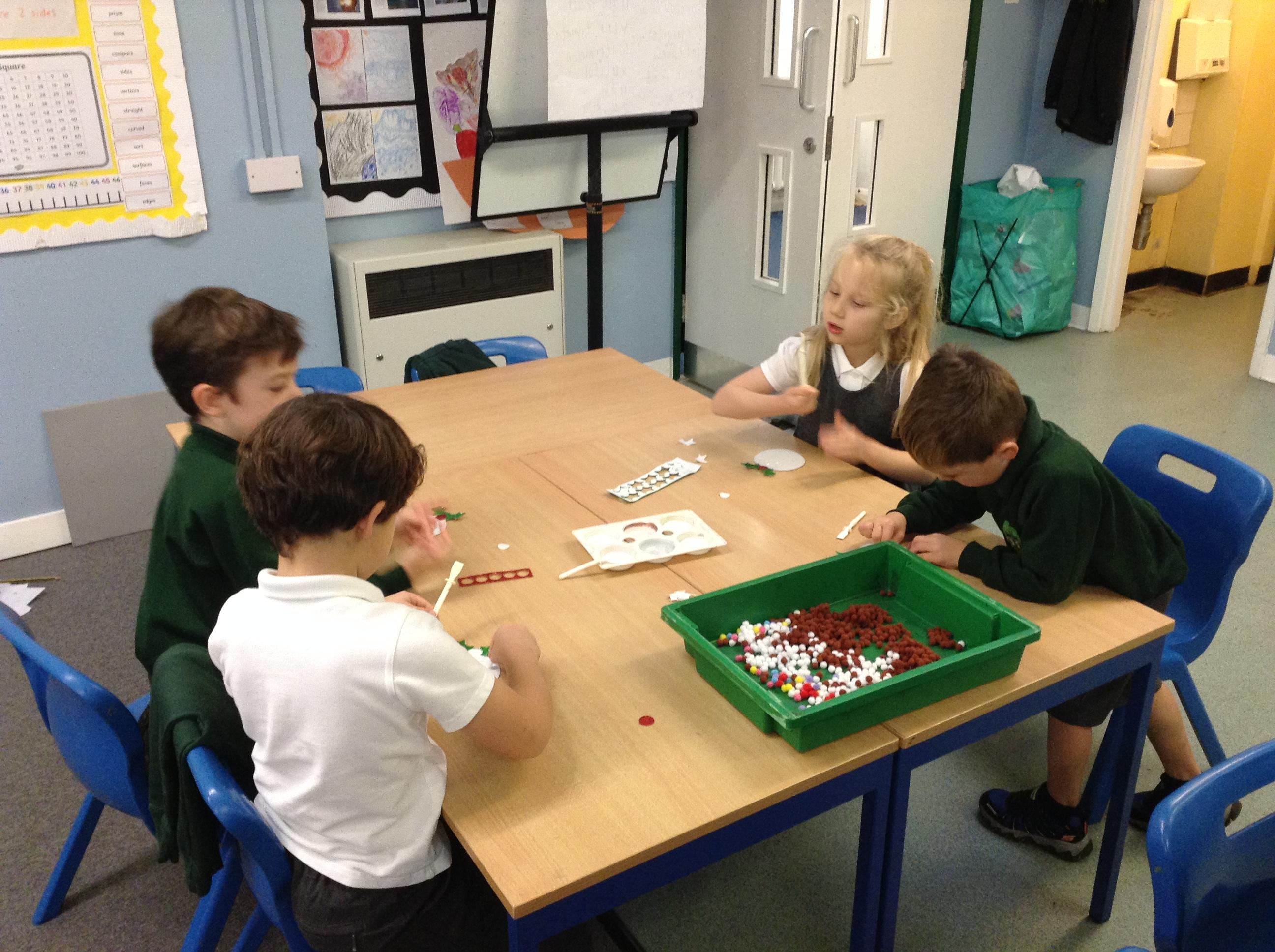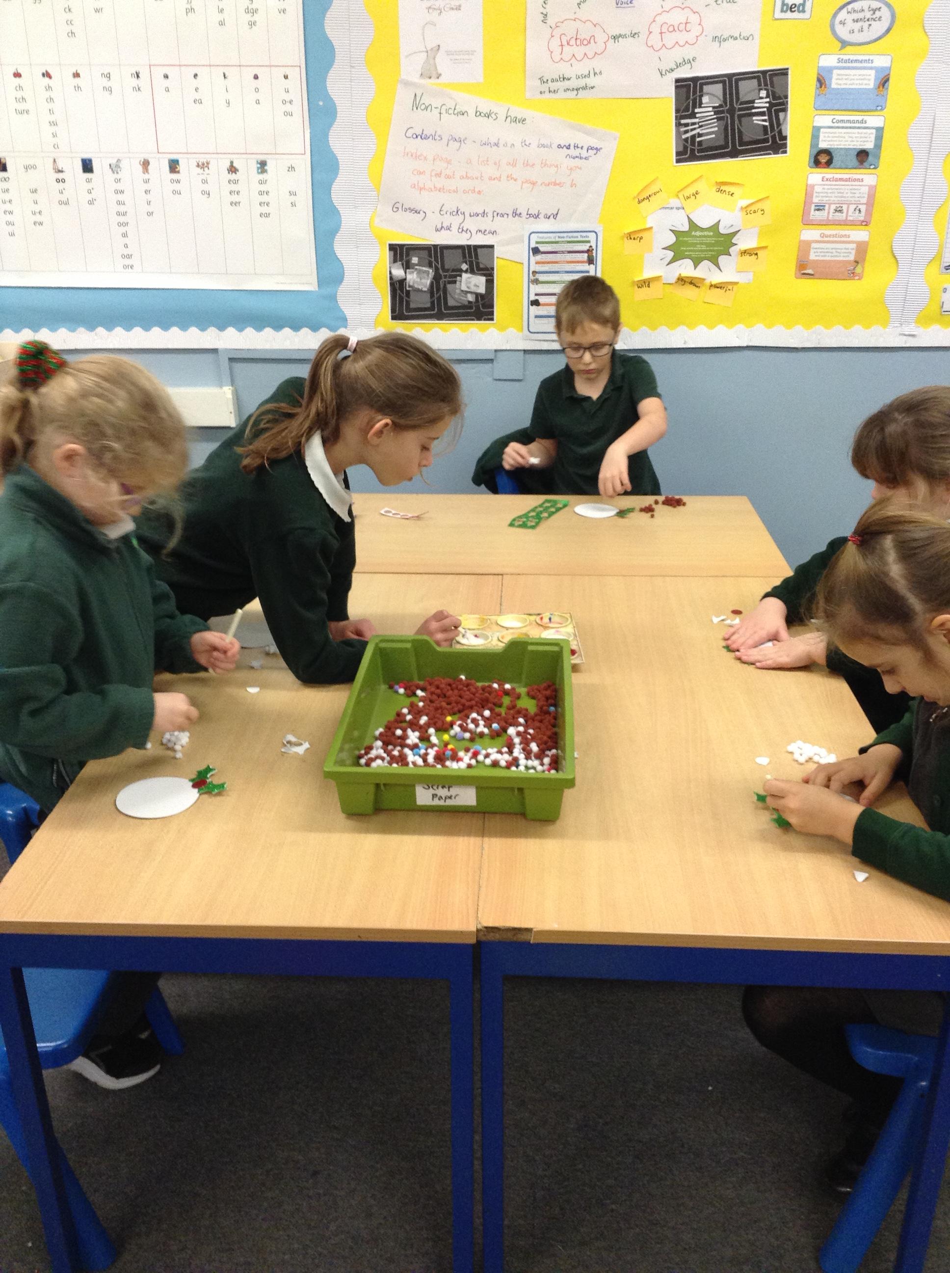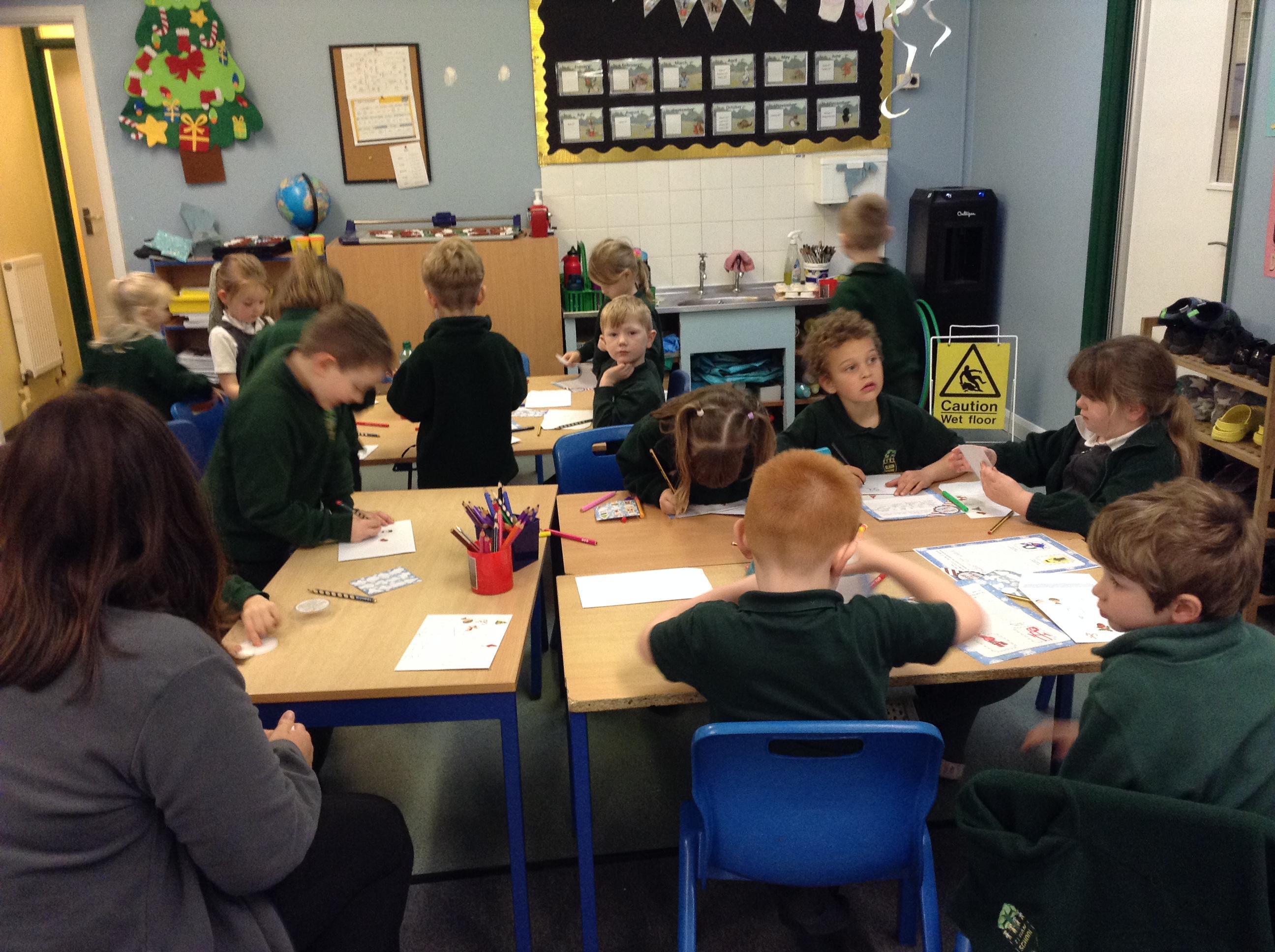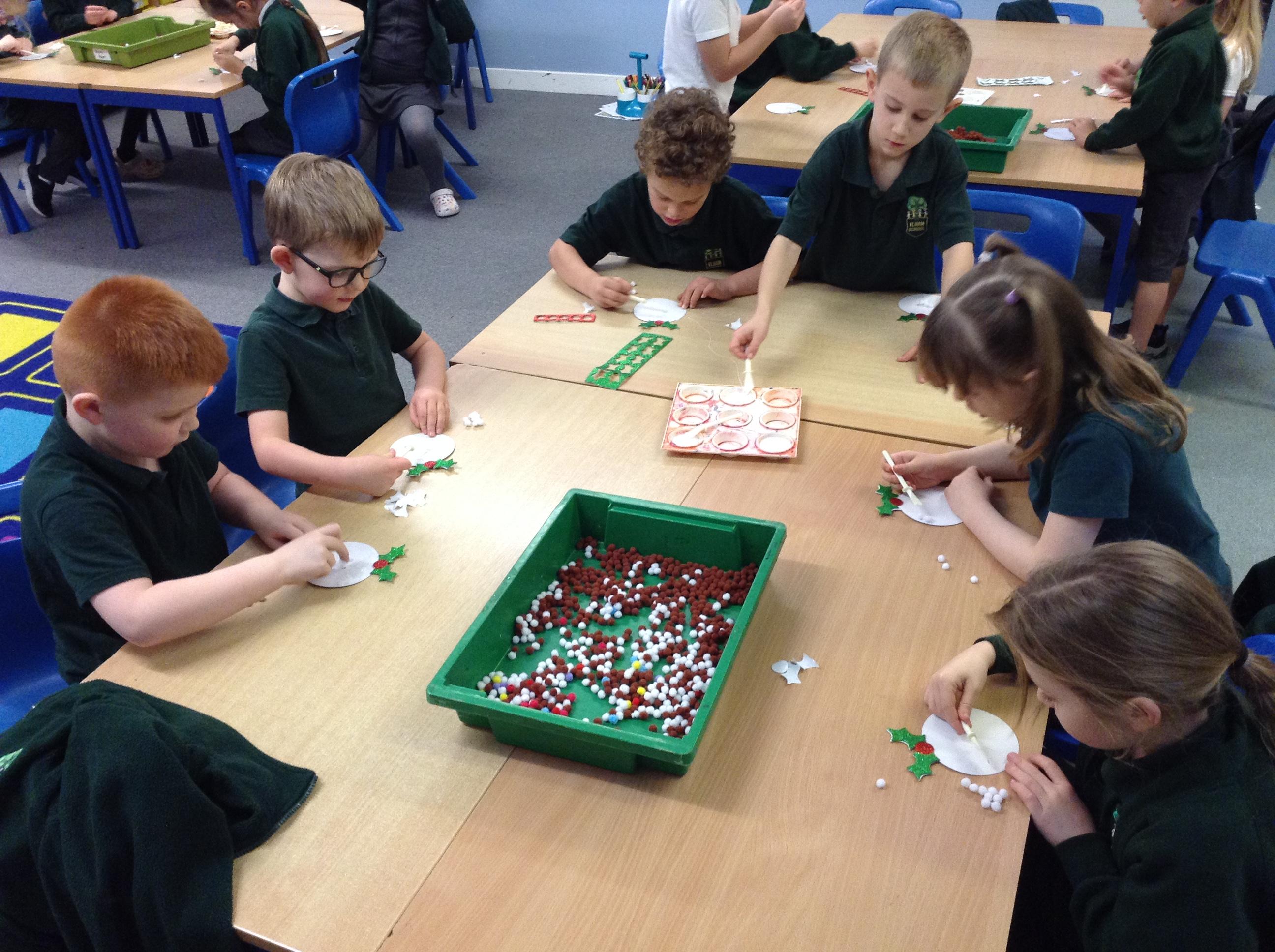 We've written and posted letters to Father Christmas - and then had a visit and an early present from the big man himself!! We've made Christmas cards, pom pom Christmas puddings and crowns for Christmas dinner and we're looking forward to making Christingles for the church service on Friday.
