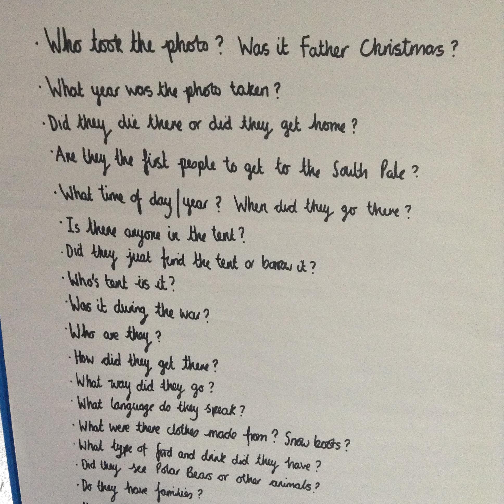 We then focussed on two important questions: What did Scott do to make him famous? How do we know he is famous? The children were then asked to think about why 4 Englishmen were being photographed outside a Norwegian tent!