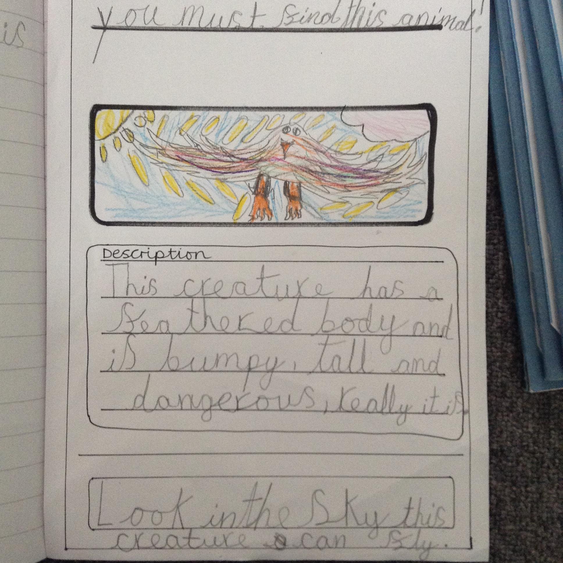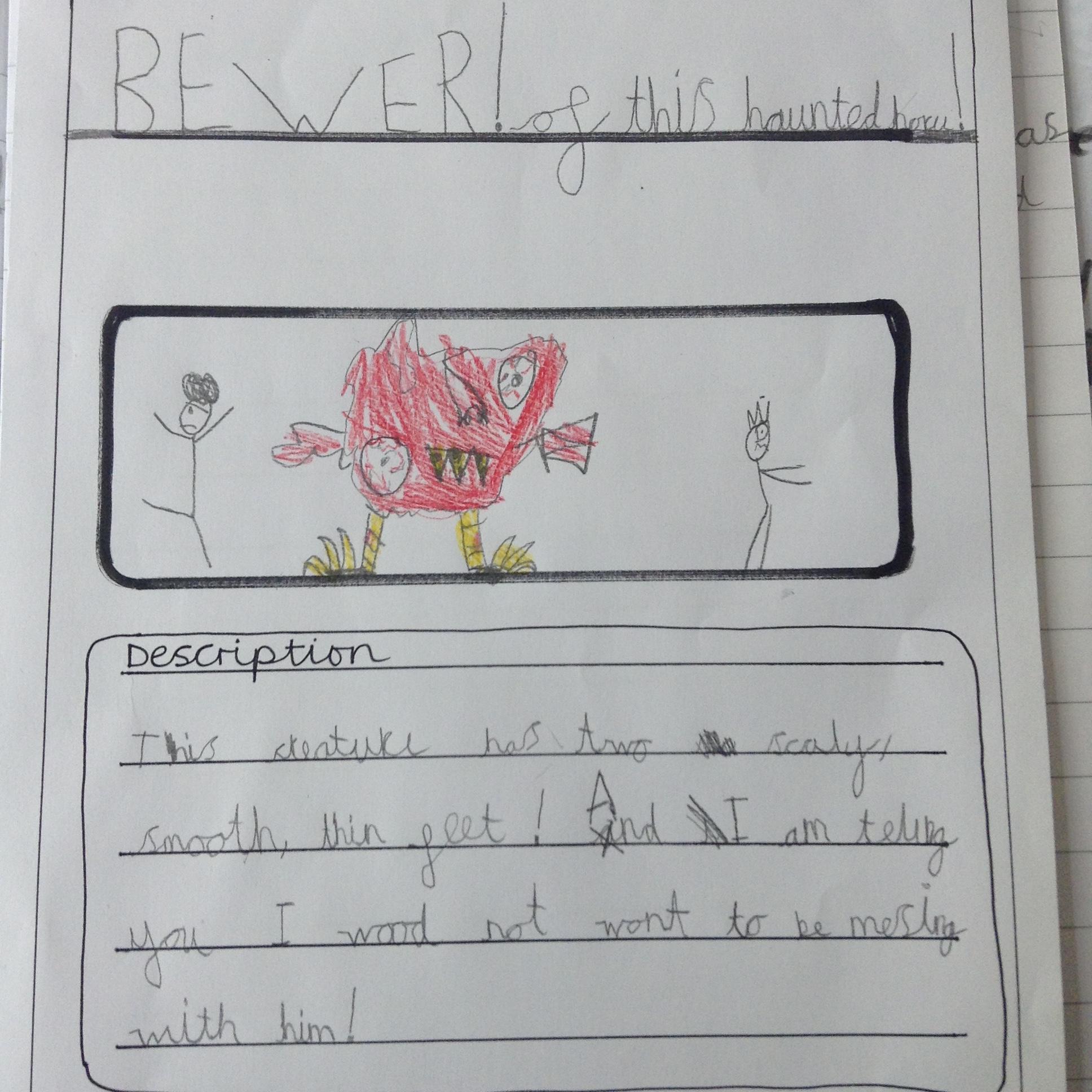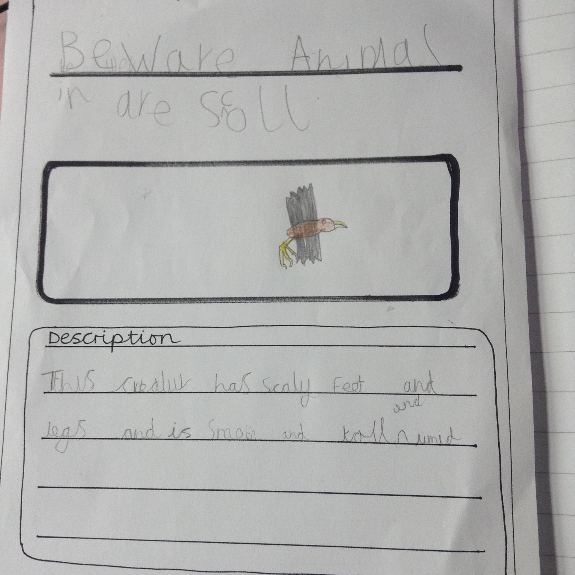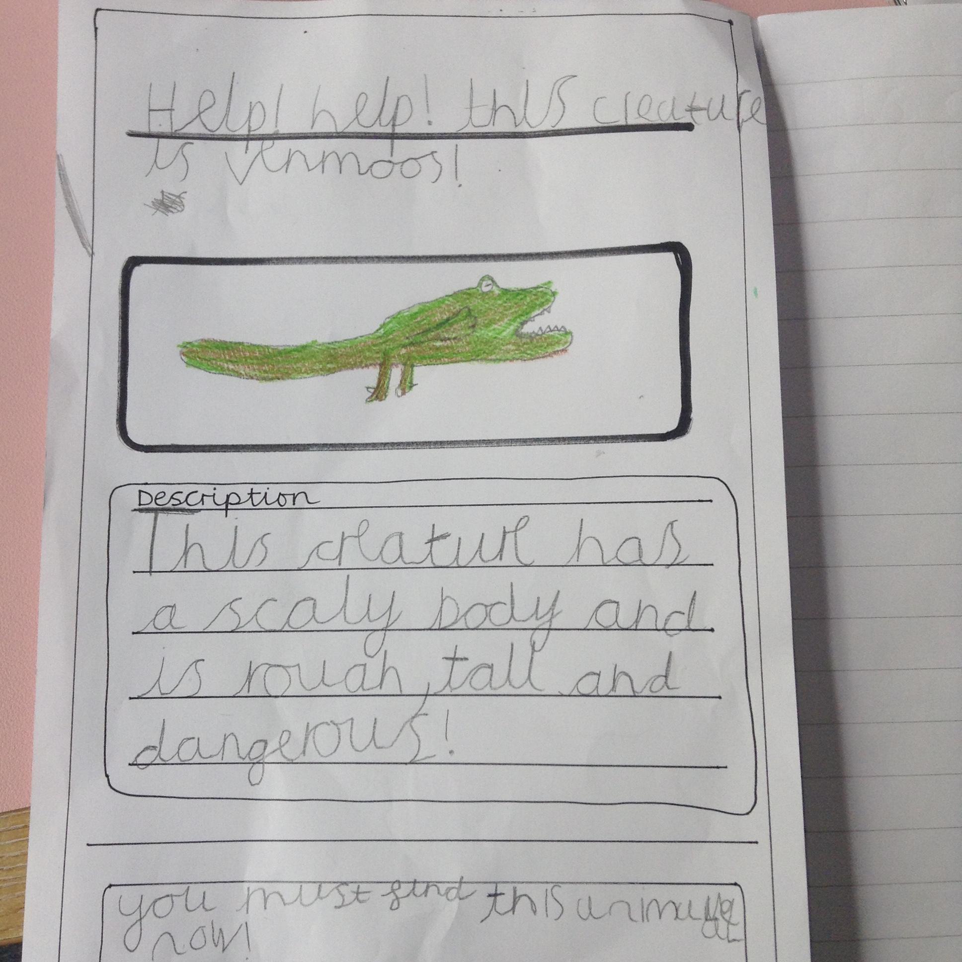 More mystery footprints have been spotted around the school which suggests the mystery creature is on the loose! The children used the descriptions from yesterdays lesson to create missing posters.