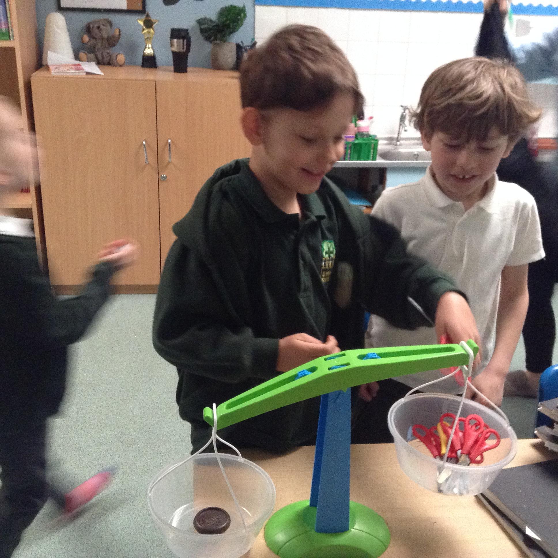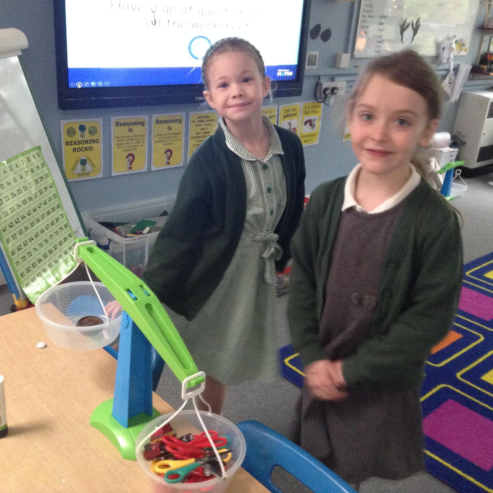 The children have been using scales to measure in grams.