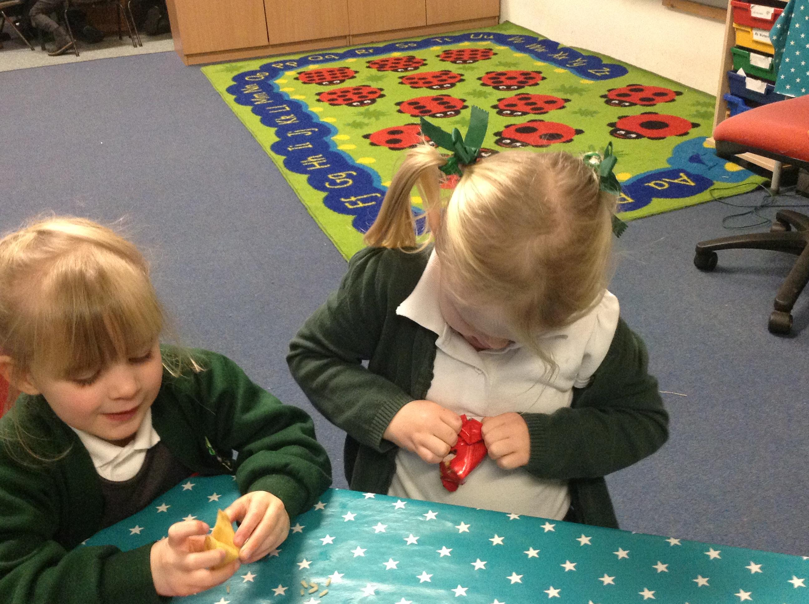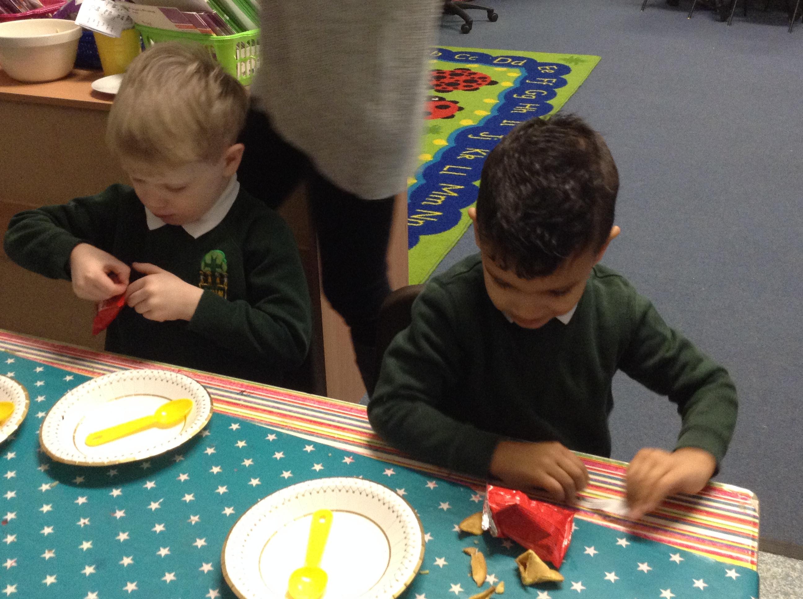 On Monday we tried some tyipical chinese food. Most of the children thought it was yummy. We also tried a fortune cookie. We learnt about some of the traditions chinese people follow at this time of year.
