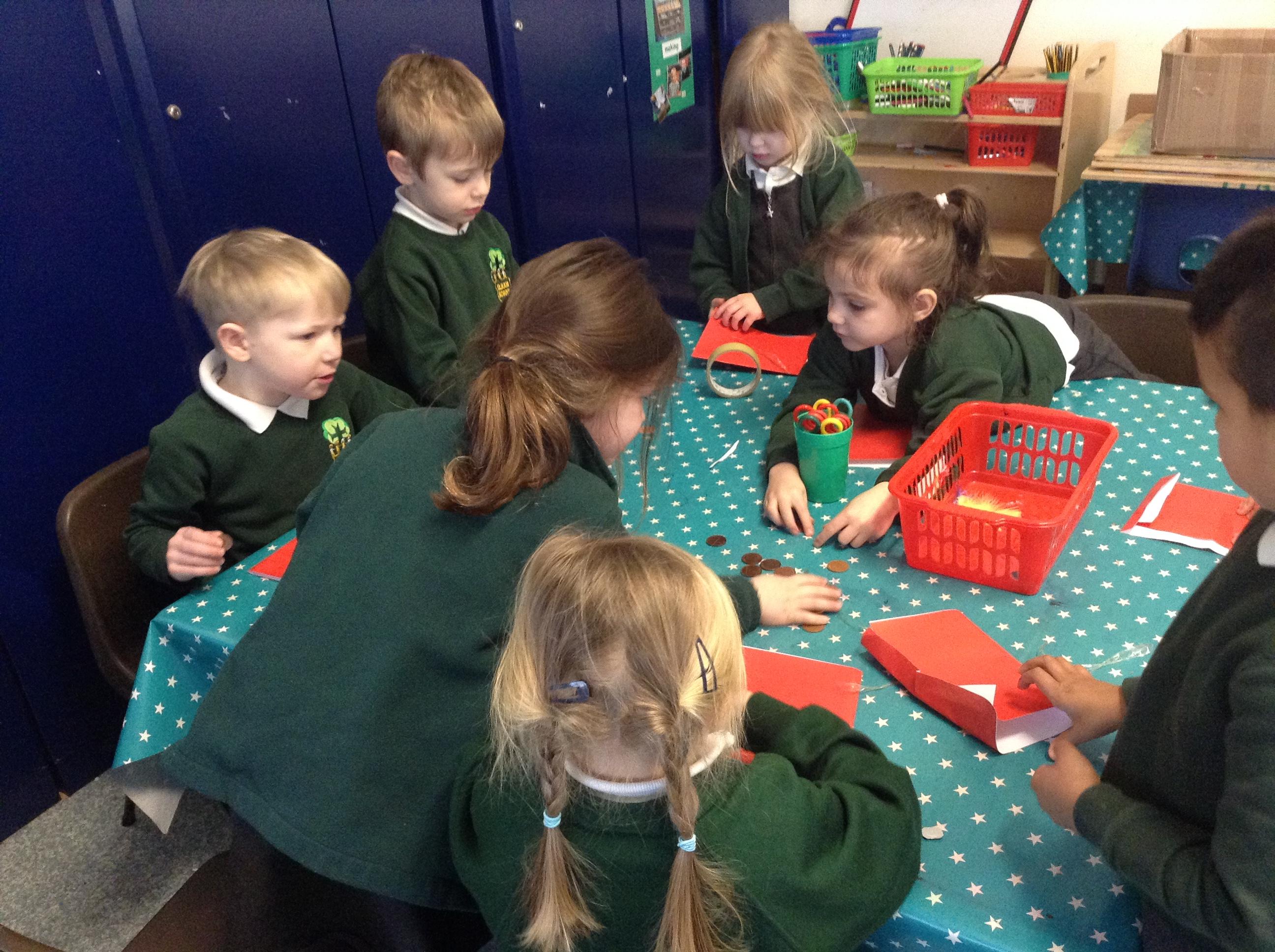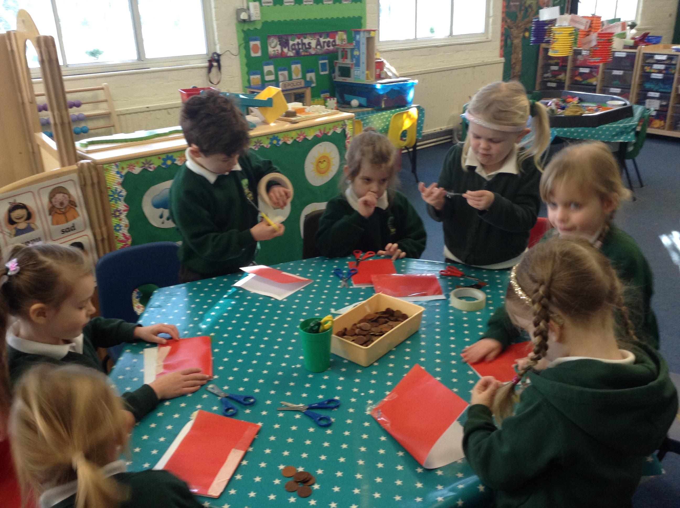 We made a traditional red envelope and tried to seal it to hold 6 coins. We learnt how to recognise our coins and had a little introduction to money.