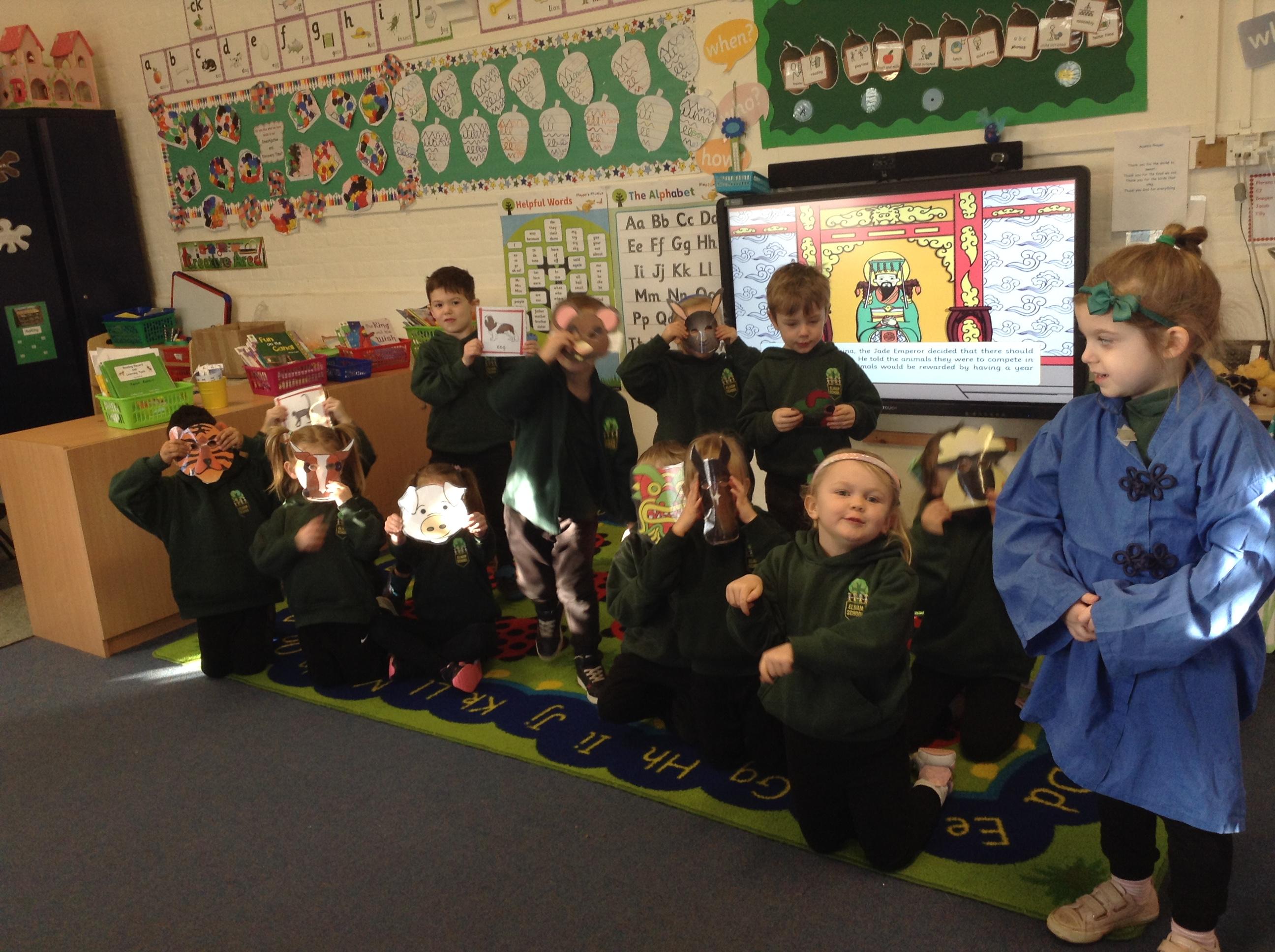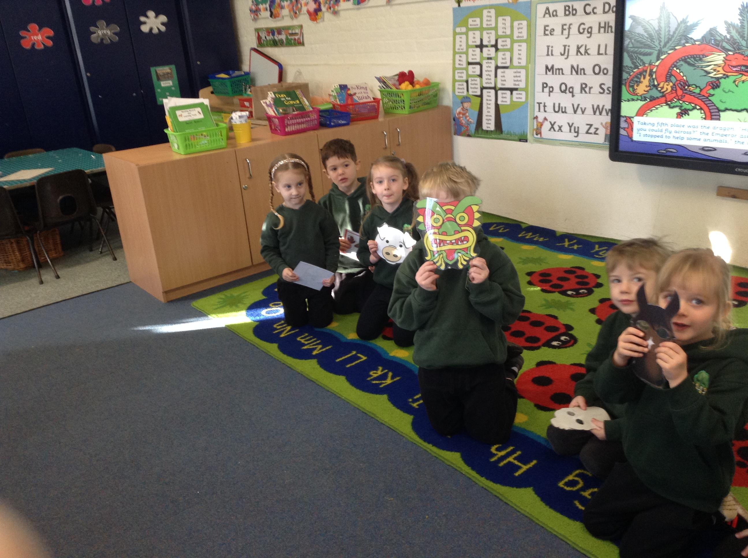 We acted out the story of the chinese new year, I wonder if the children can remember which character they played and what happened to them.