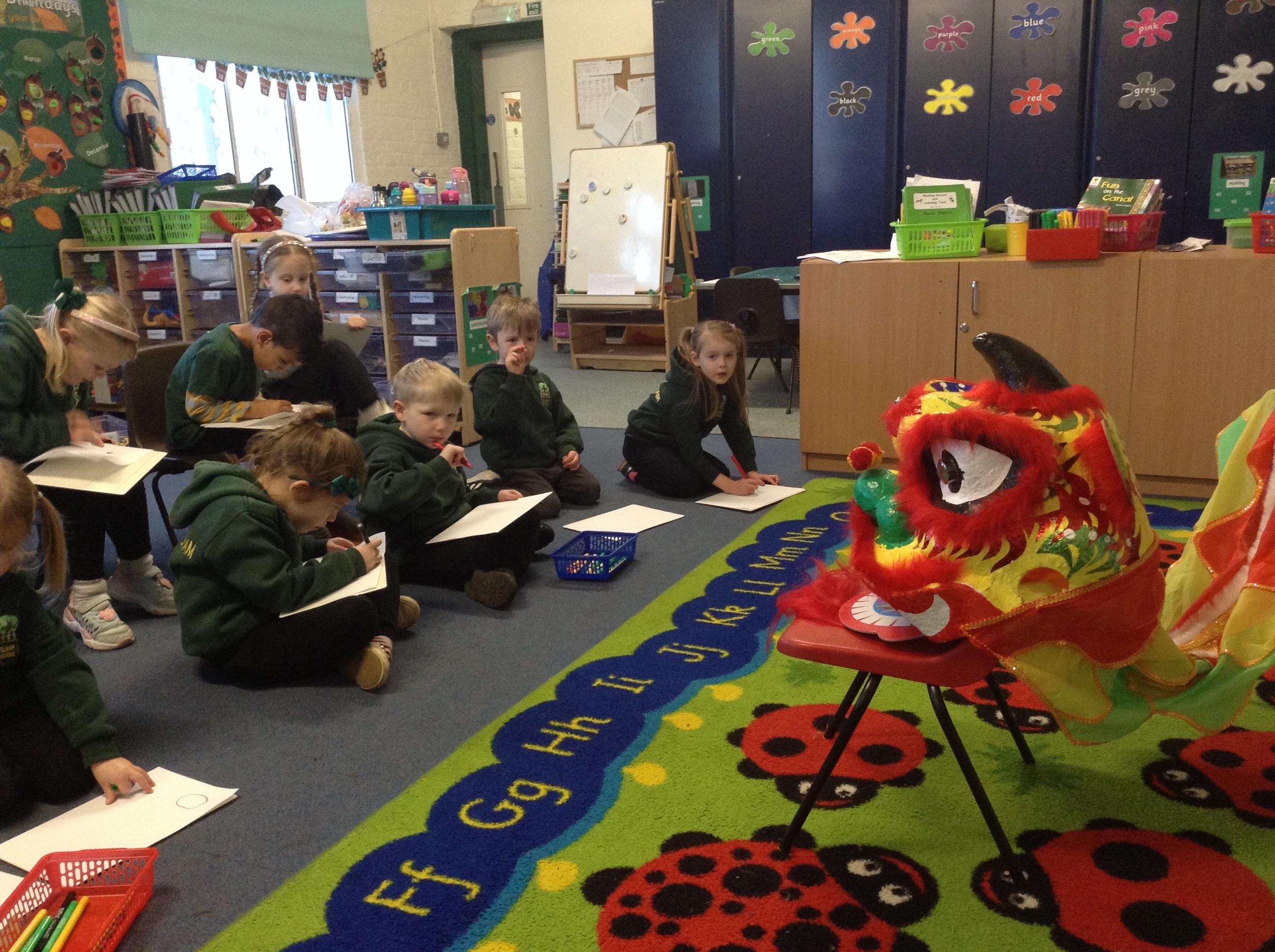 The children all tried it on and did some observational drawing. It was really hard tp draw but they did a great job.