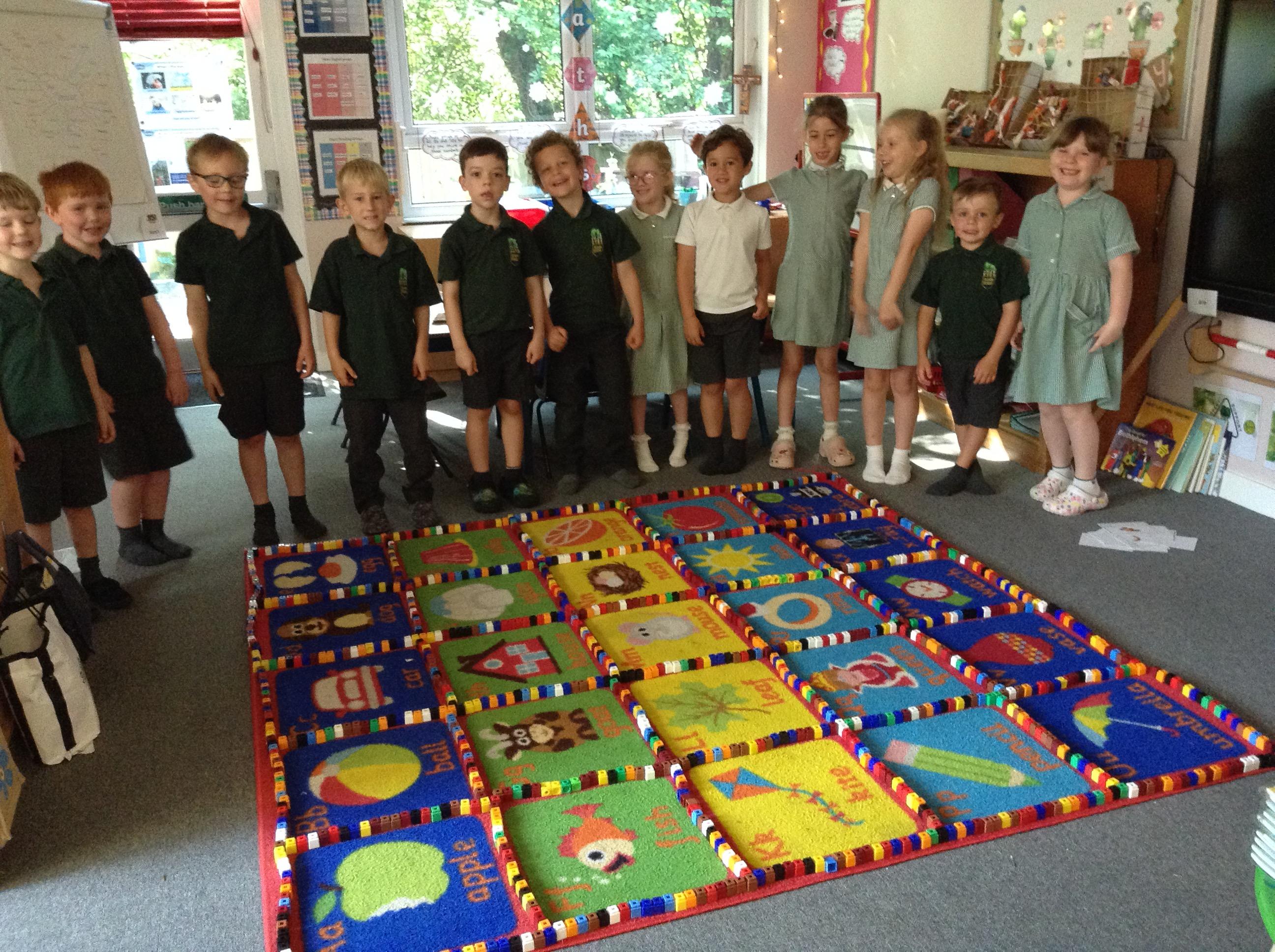 The children spent the morning working together and counting to see how many cubes it would take to fill the carpet! Unfortunately we lost count!