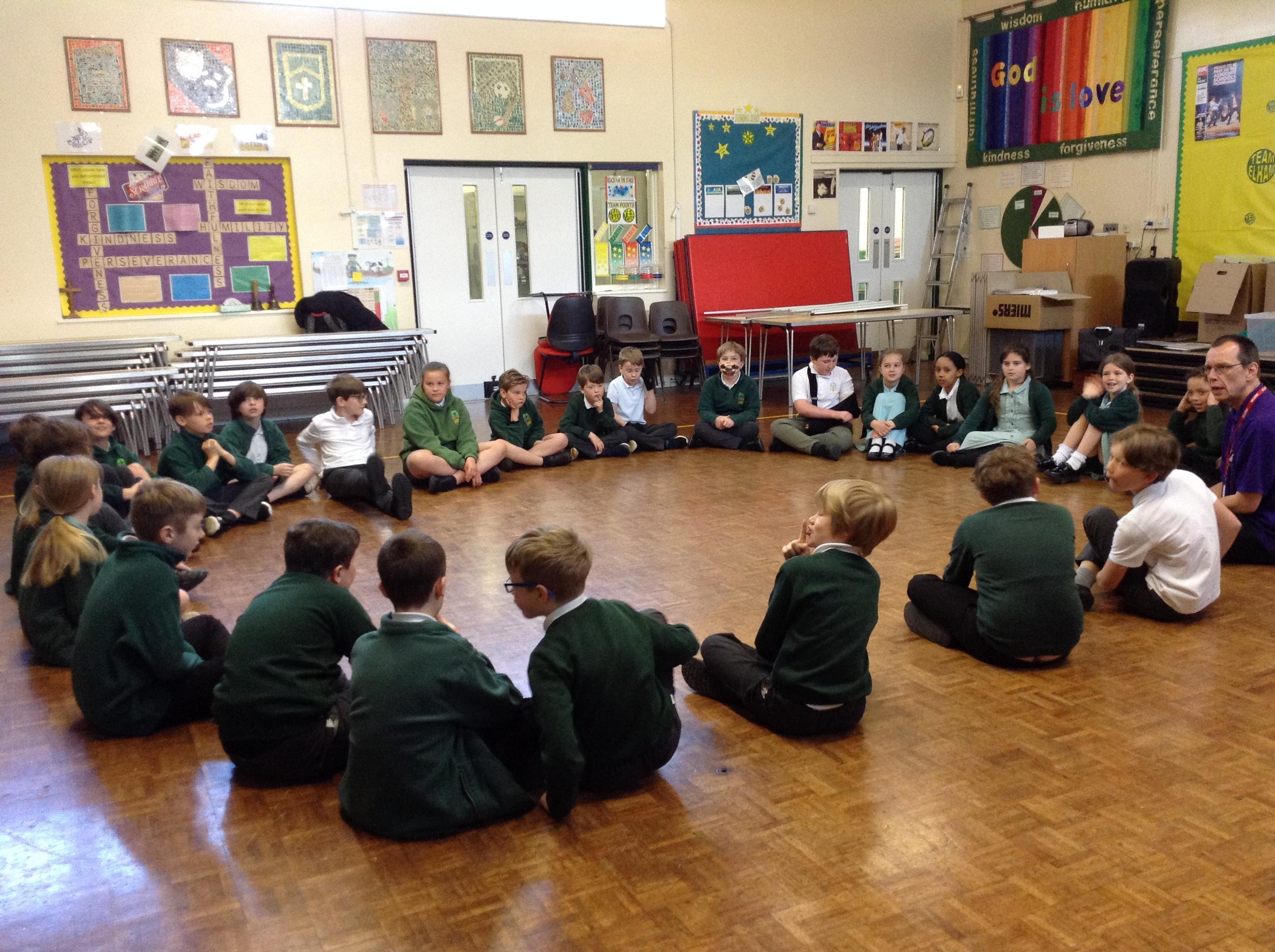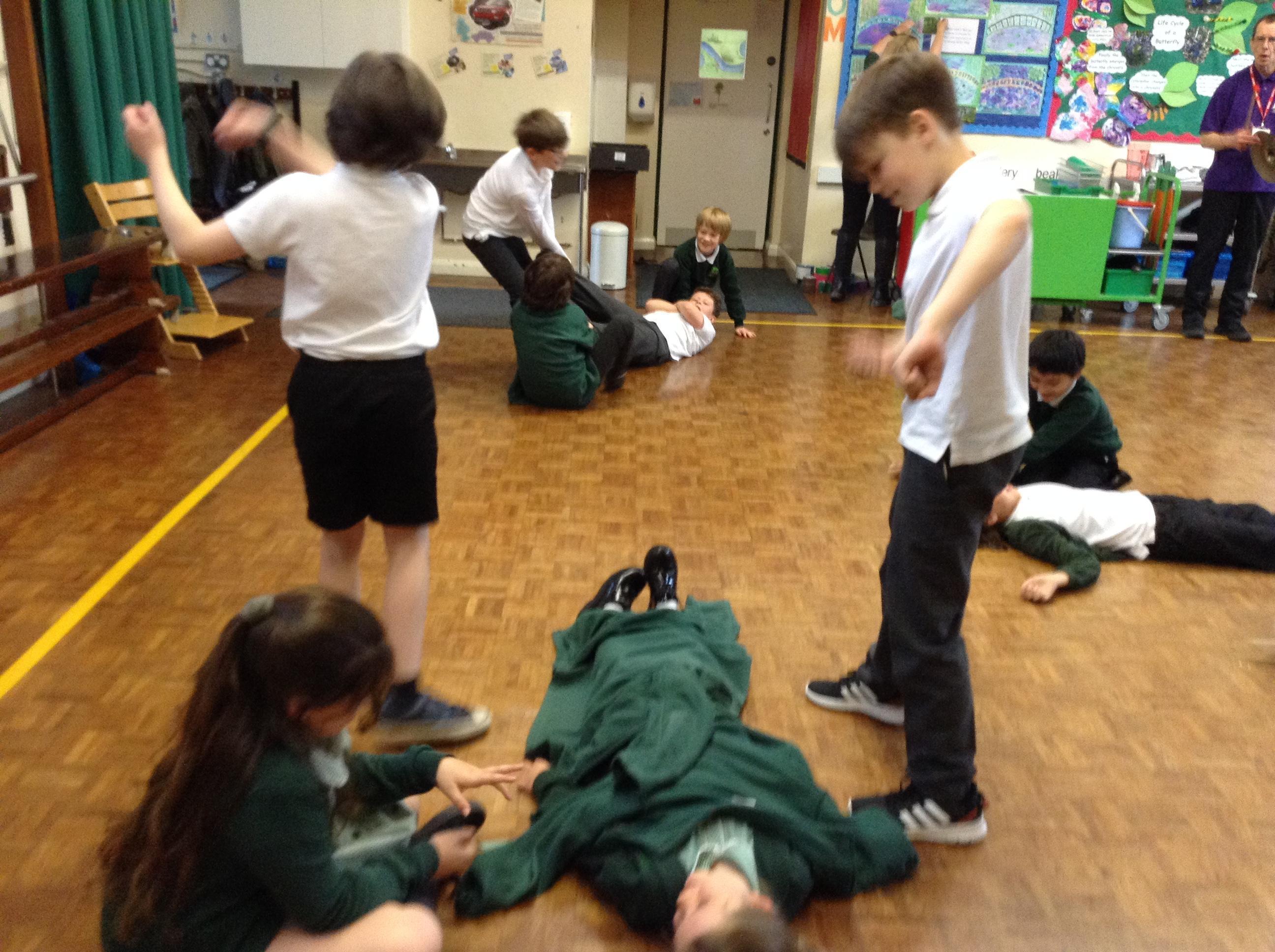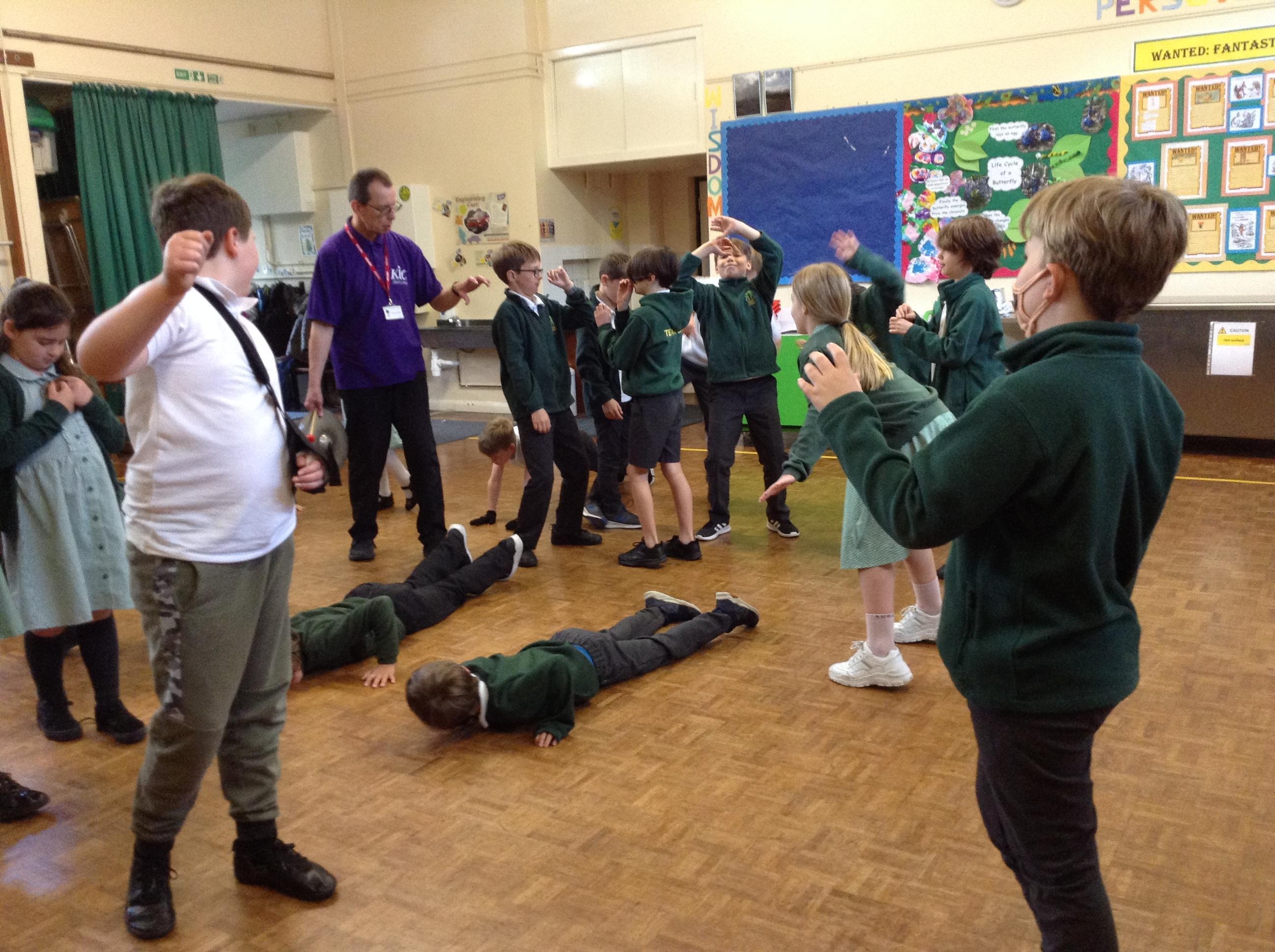 We had great fun with Ian from Kik Theatre today, working with the theme "Rivers". The children acted out the course of a river from mountain to coast via waterfalls, ox bow lakes and rapids! They built bridges, put out the Great Fire of London and explored the Amazon. They even rowed an Egyptian mummy down the Nile and prayed in the Ganges! Well done everyone and thank you to Ian for his endless enthusiasm and patience!