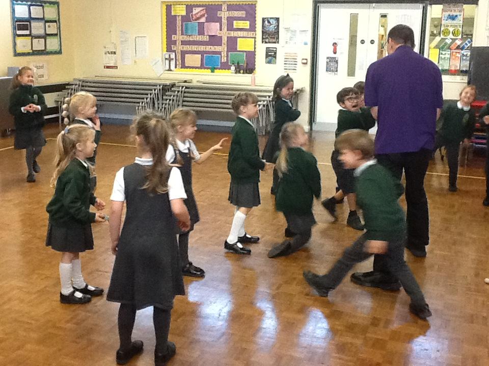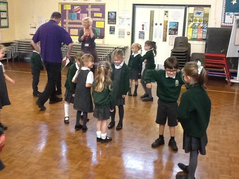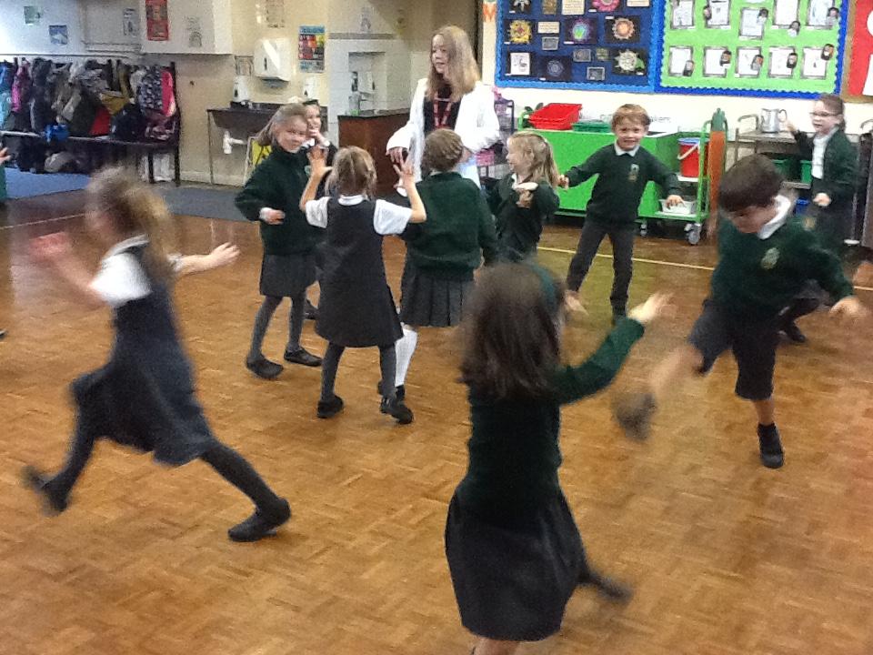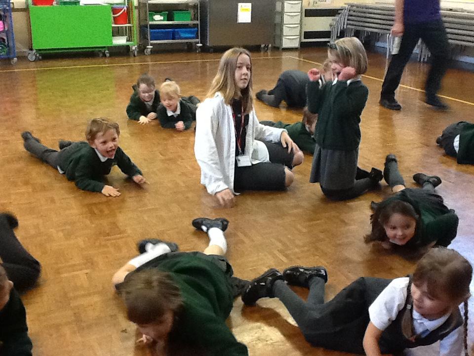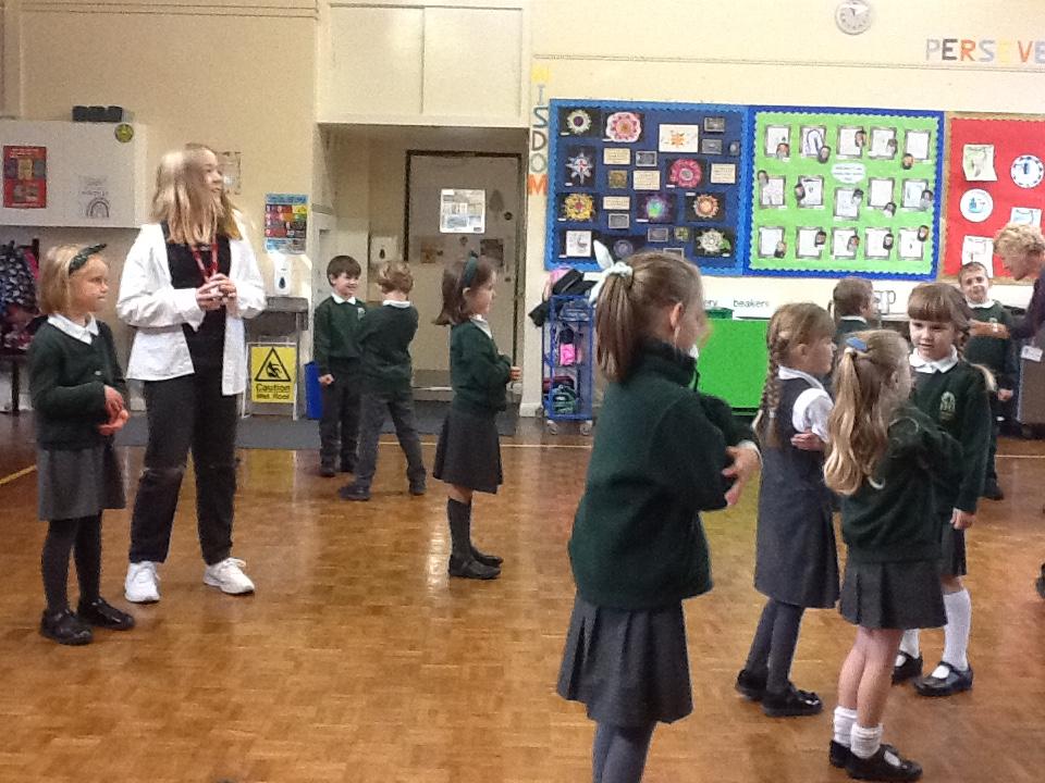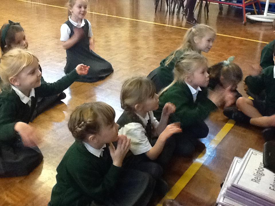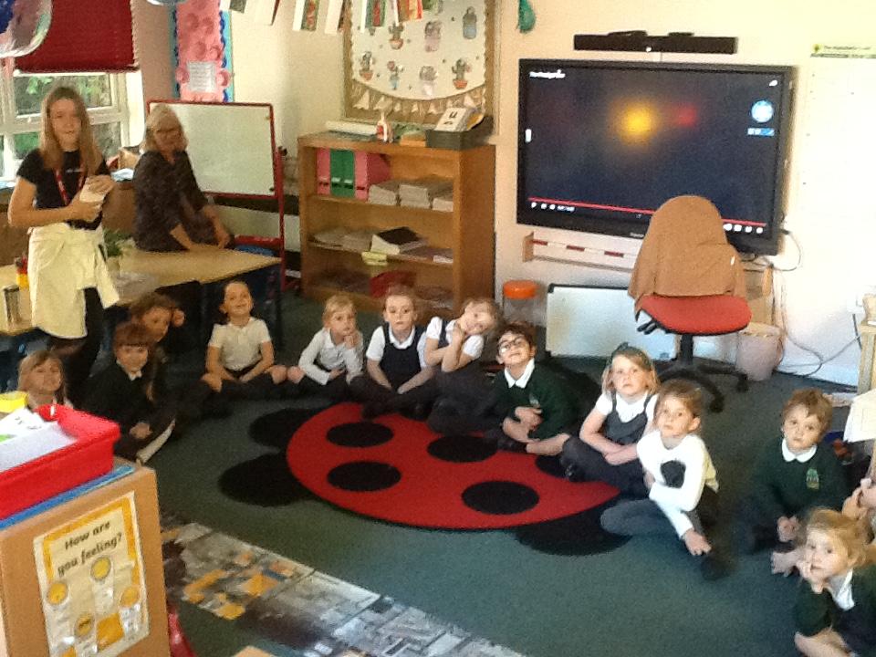 Another nice thing that happens around half term is that some of last year's Year Sixes come in to work with us. We welcomed back Sabine, who used to be a buddy when we were in Acorns. She explained to us everything she knew about the Big Frieze in RE (art work about the bible).