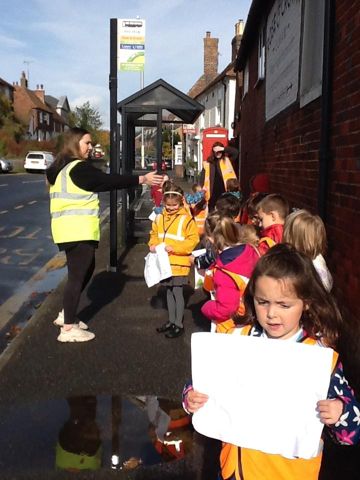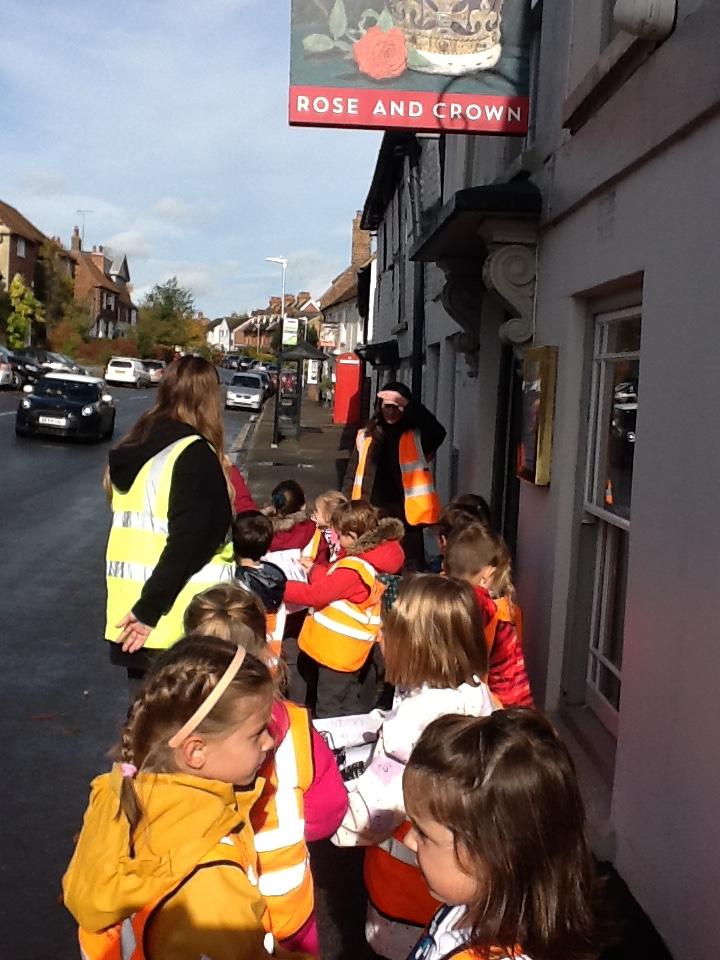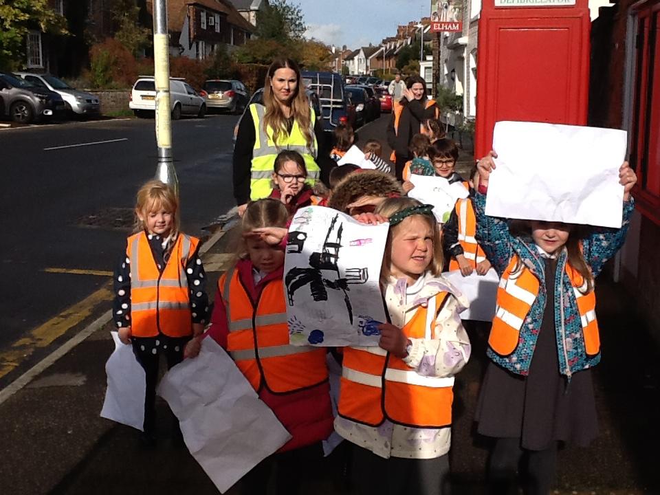 This week we have finished of our geography and science units of work by going out into Elham and checking the places we put on our maps last week and thinking about what we could see, hear and smell as we moved from place to place.