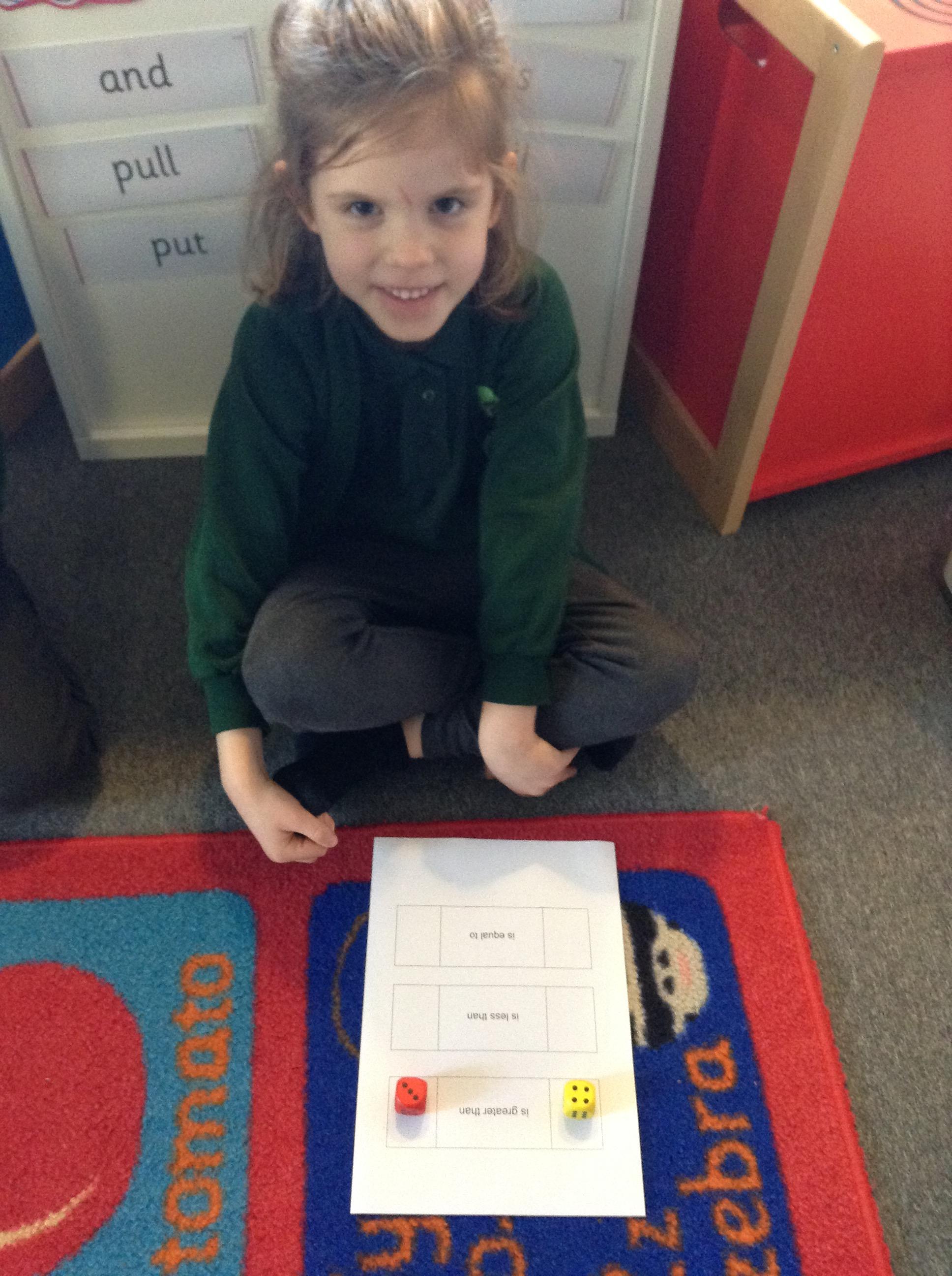 This week we have been comparing numerical values using the vocabulary 'greater than' 'less than' or 'equal to' alongside the symbols <, >, and =.