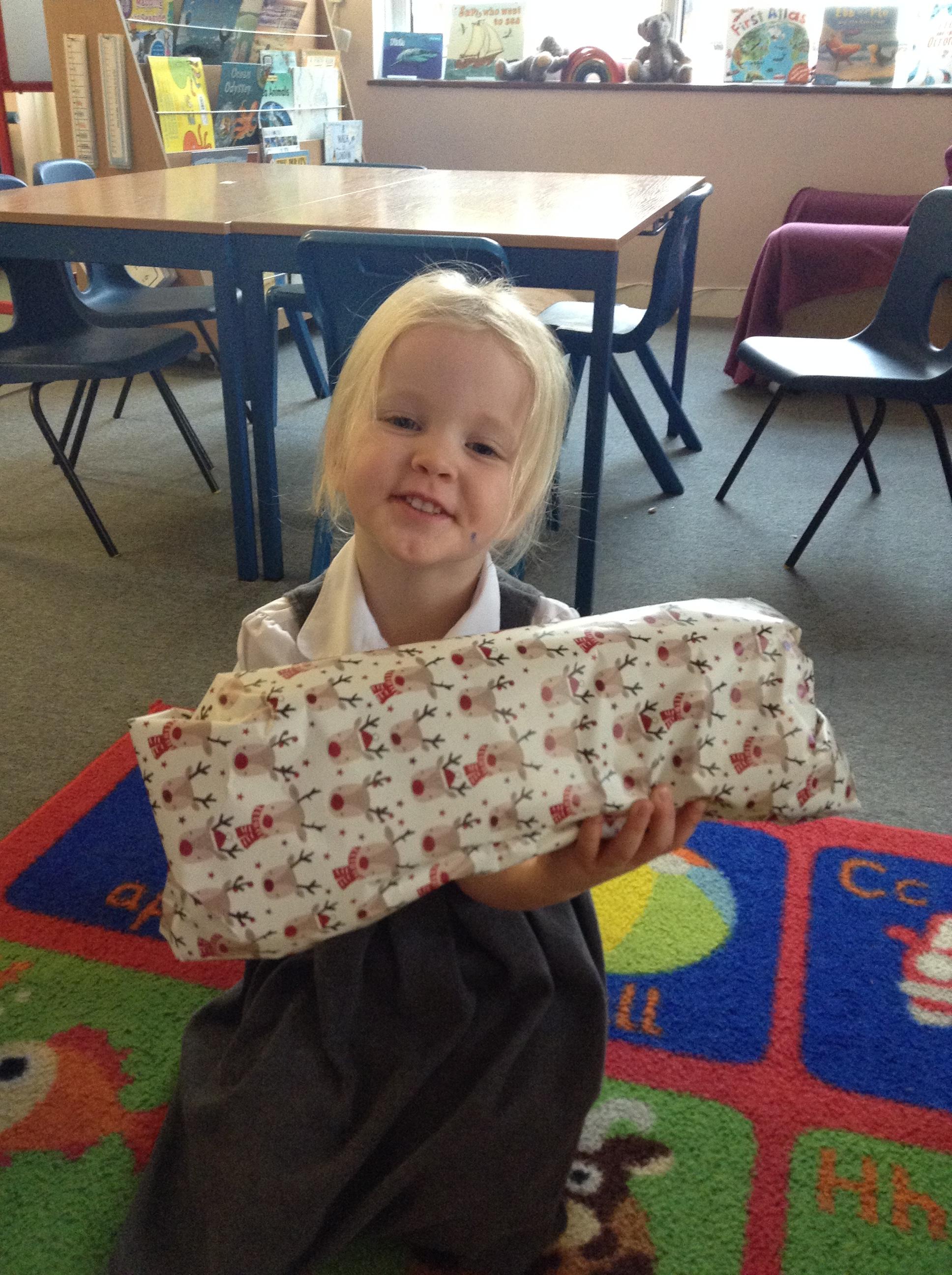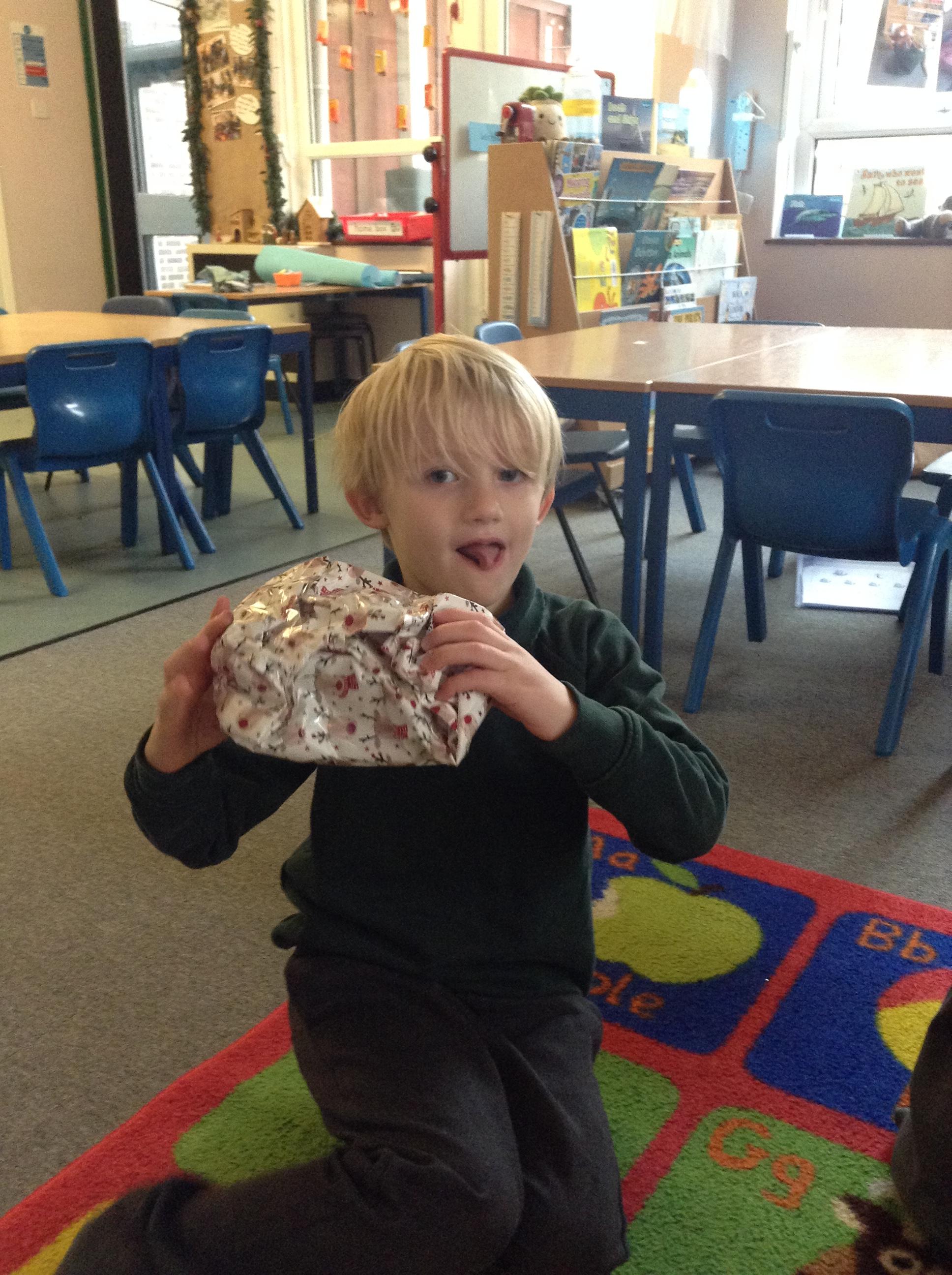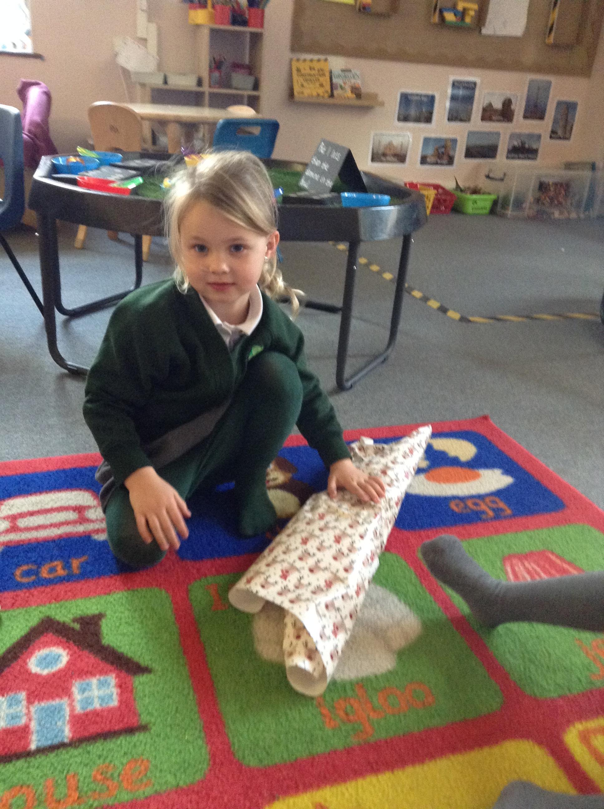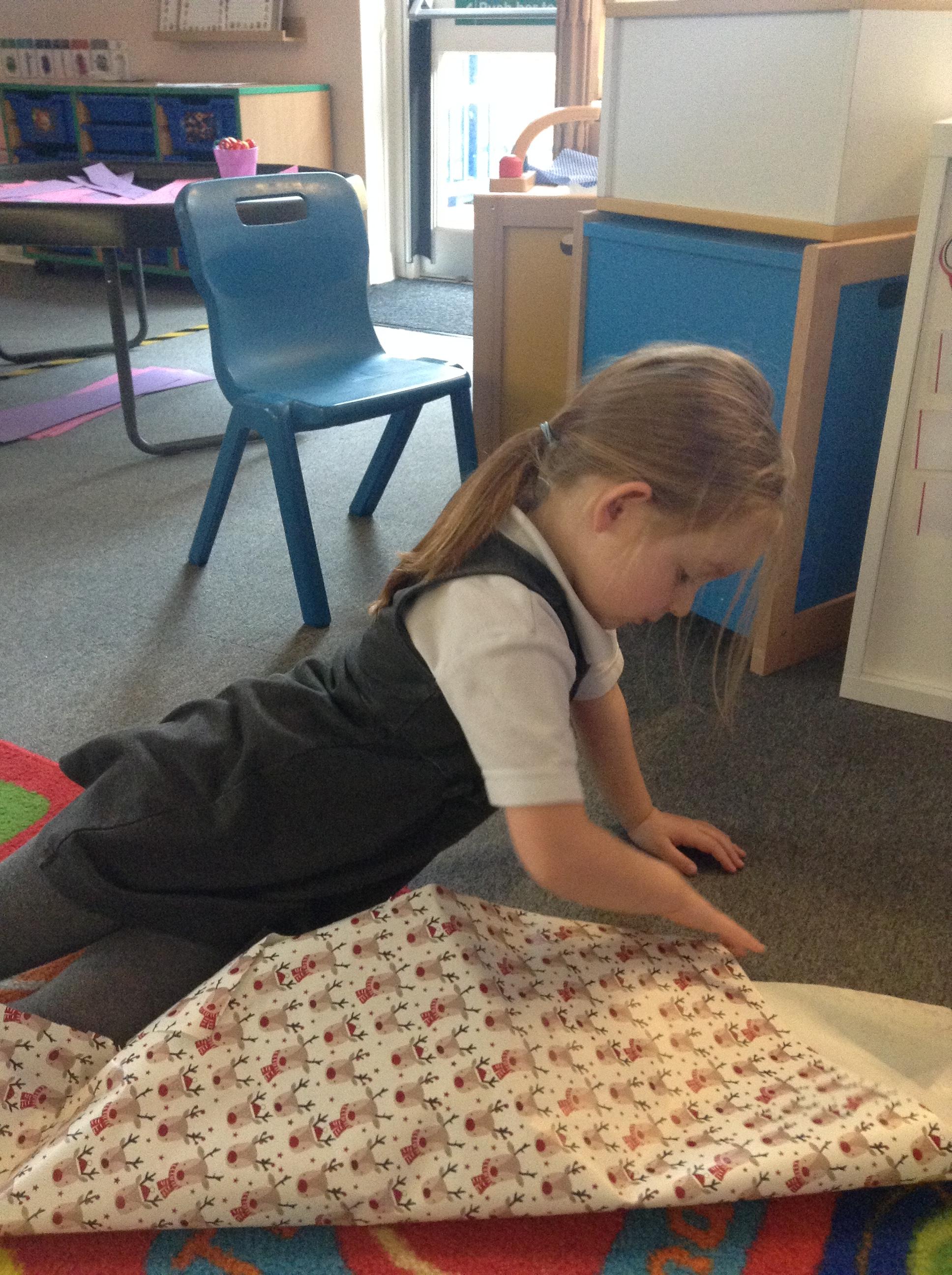The reception children have been talking about their Christmas traditions and thinking about the Christmas story. We have been listening to some Christmas carols and then we had a parcel wrapping challenge!