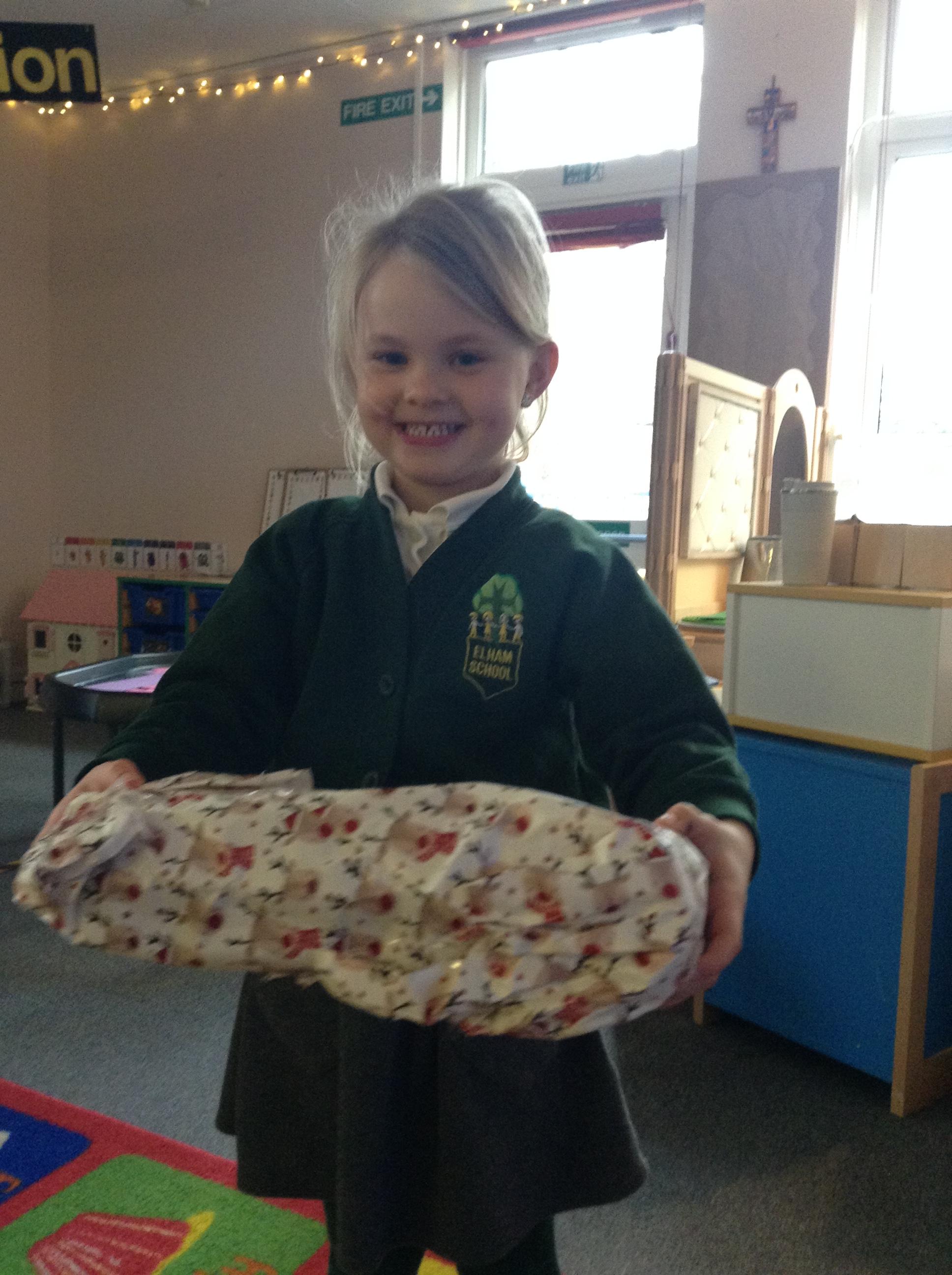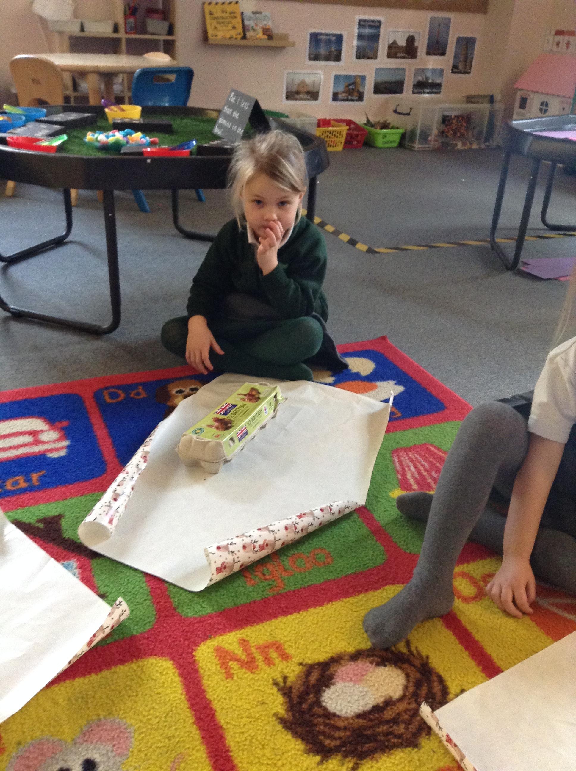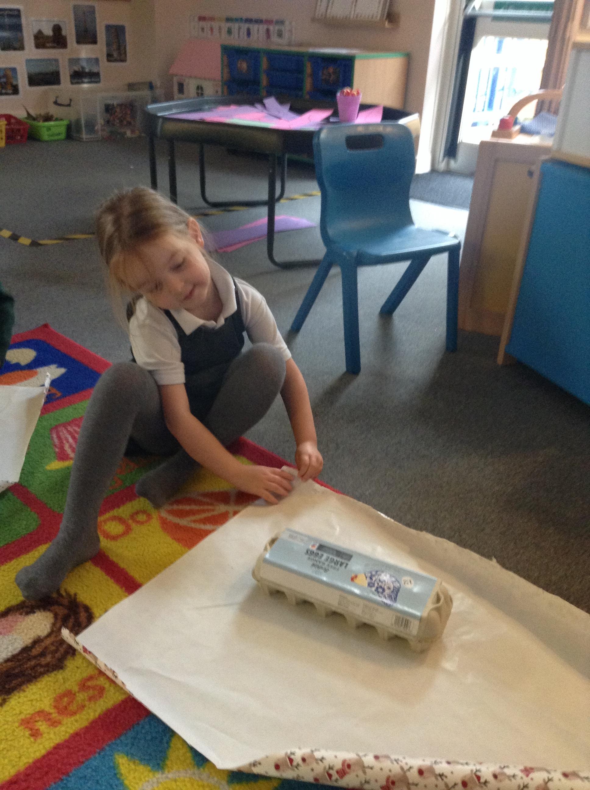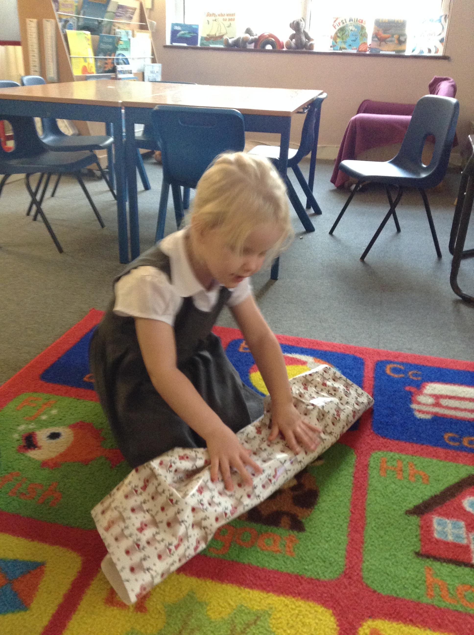 The reception children have been talking about their Christmas traditions and thinking about the Christmas story. We have been listening to some Christmas carols and then we had a parcel wrapping challenge!