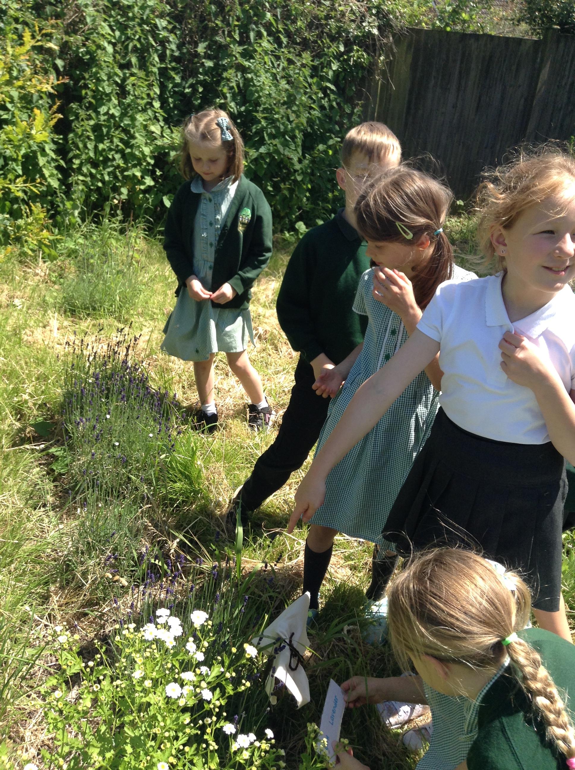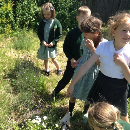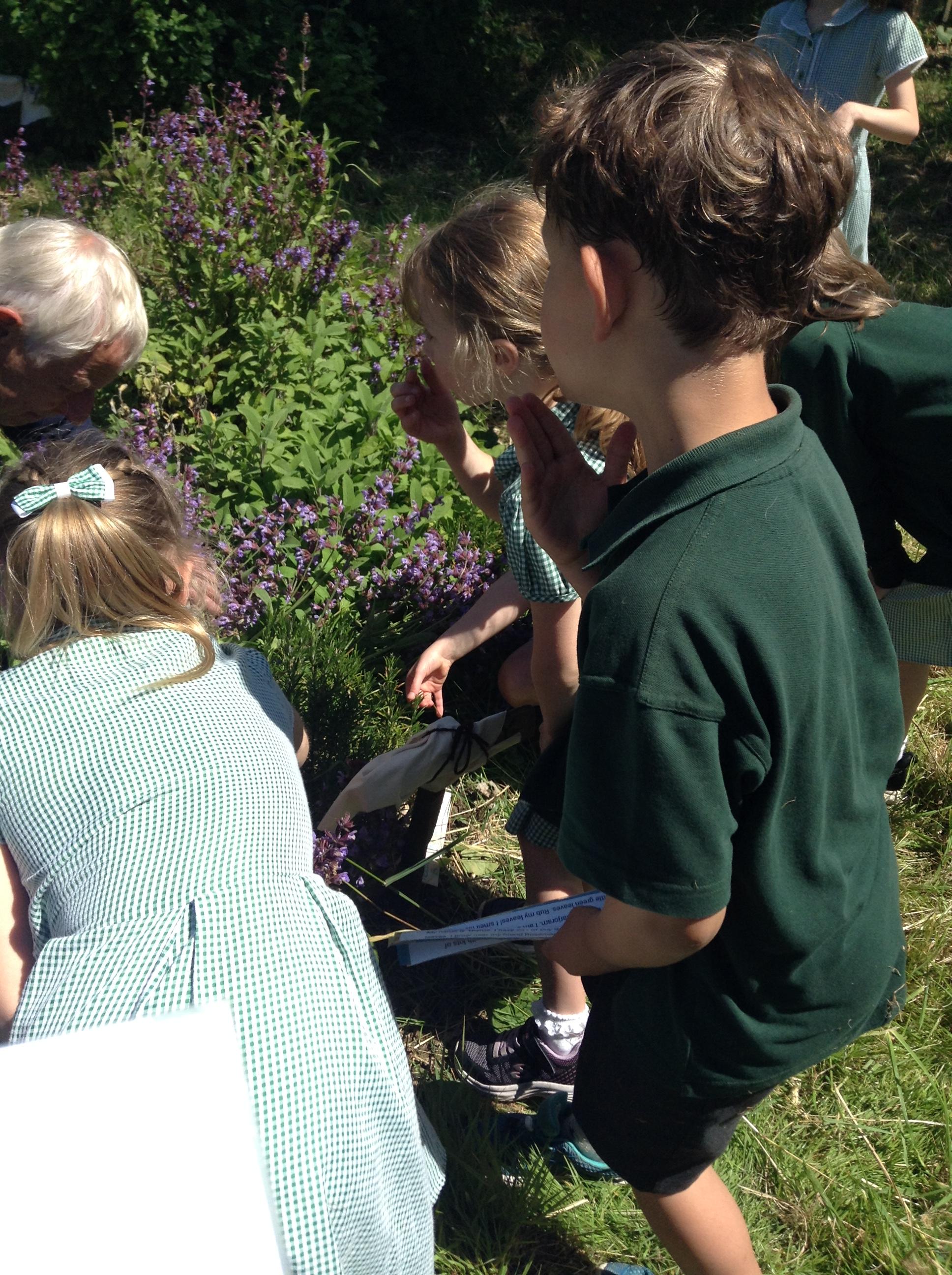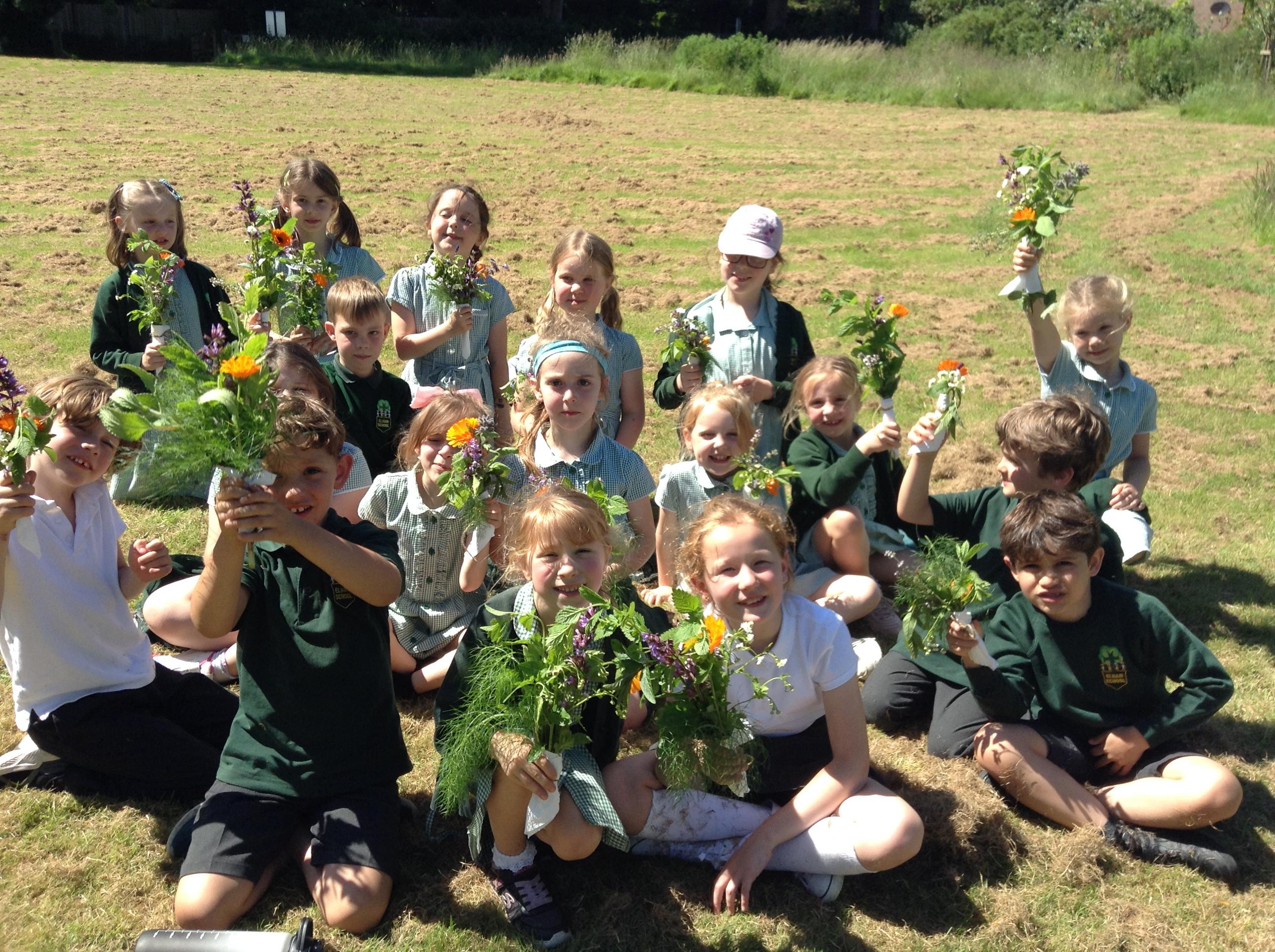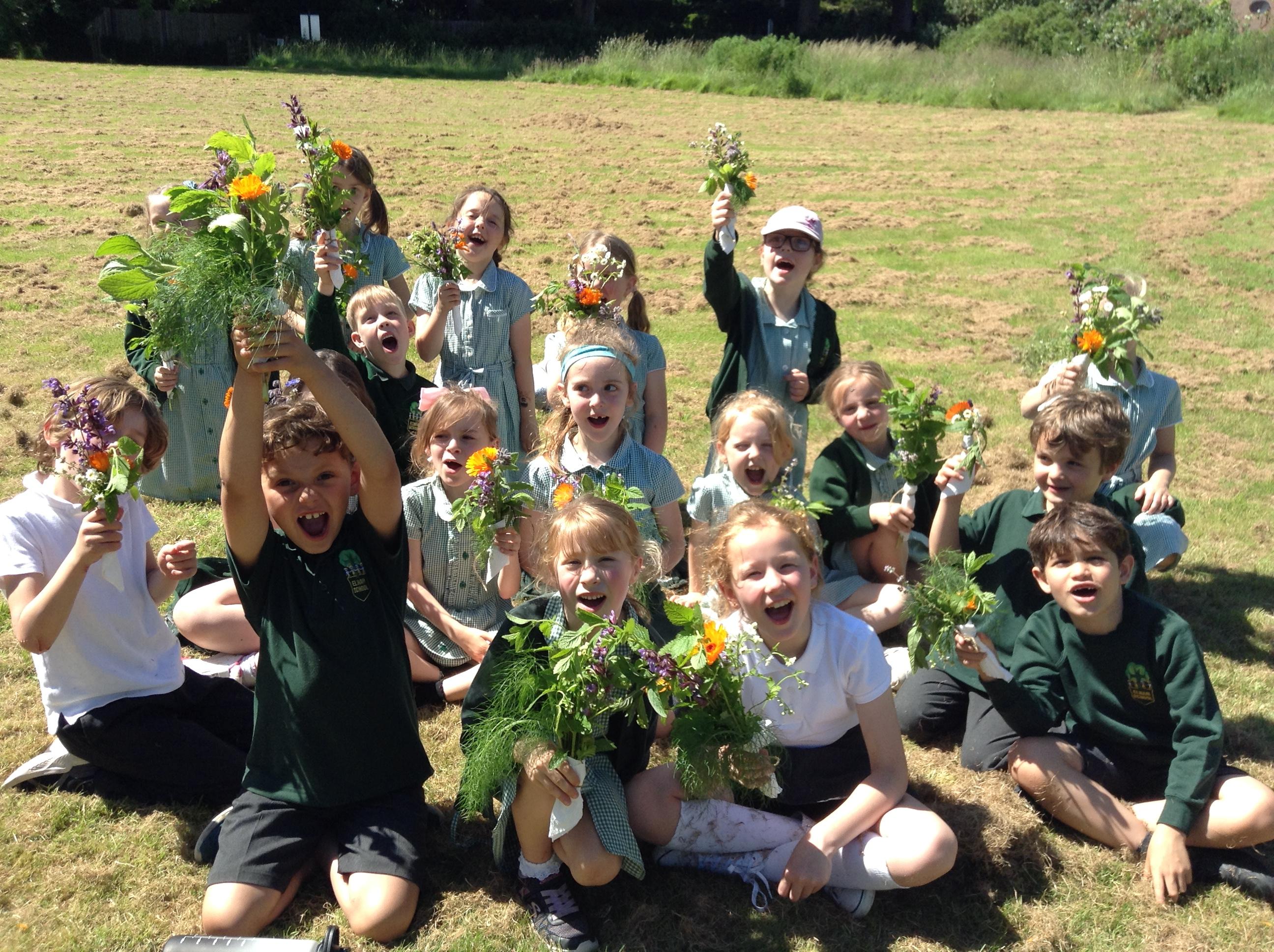 We have had a great afternoon in the park with the Elham Environmental Society finding out about all the herbs which are planted in the garden. The children used clues to help them guess which types of herbs are in the garden, they tried some cheese with herbs and then created their own bouquet of herbs to take home.