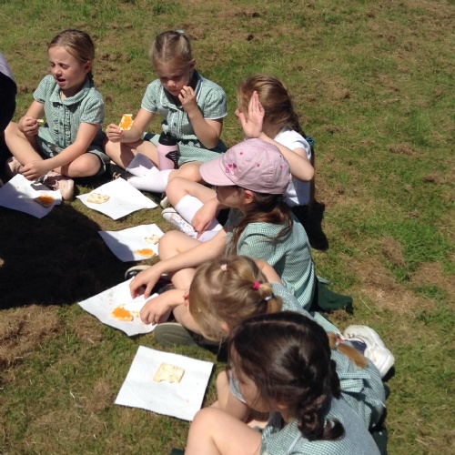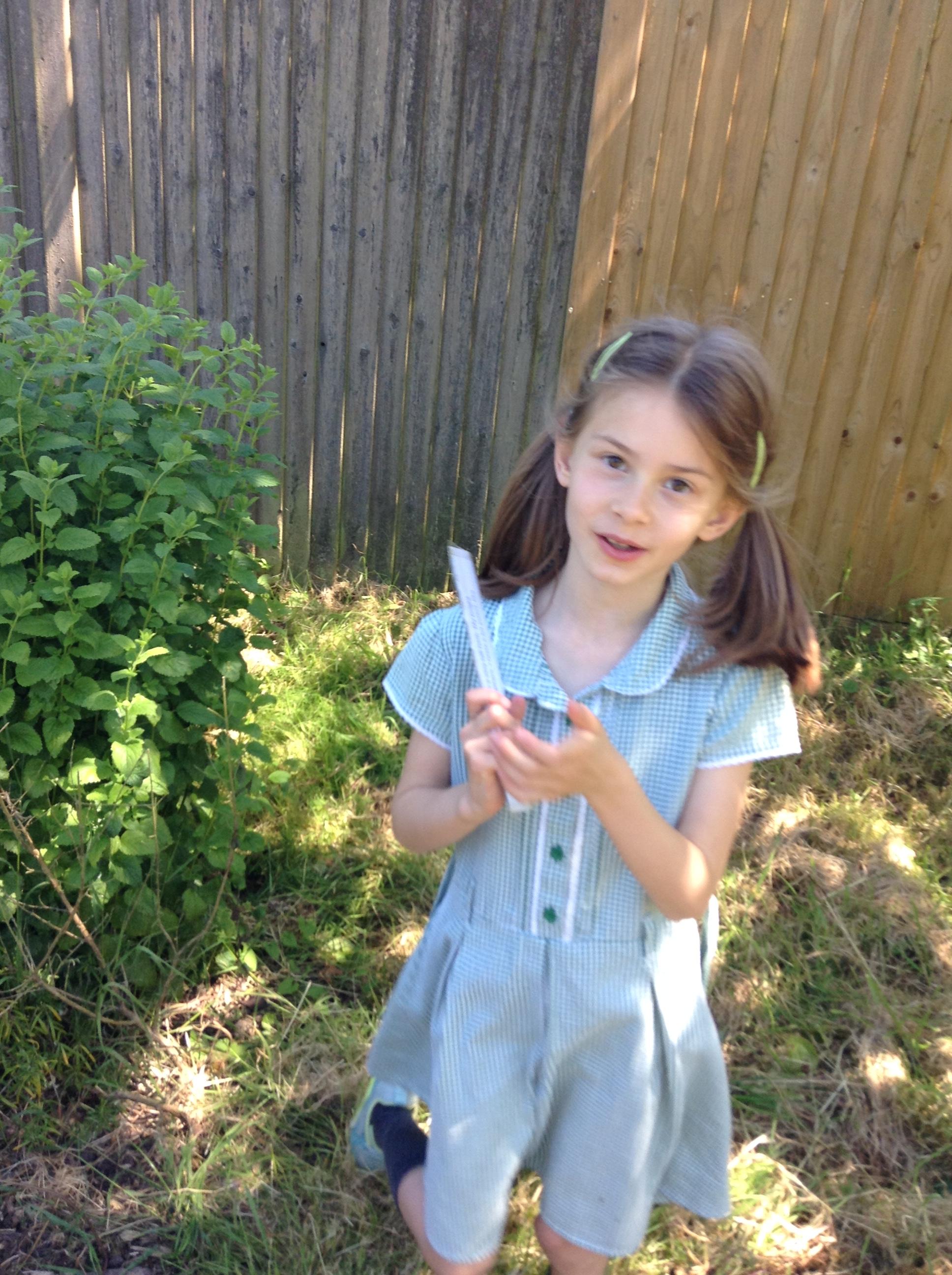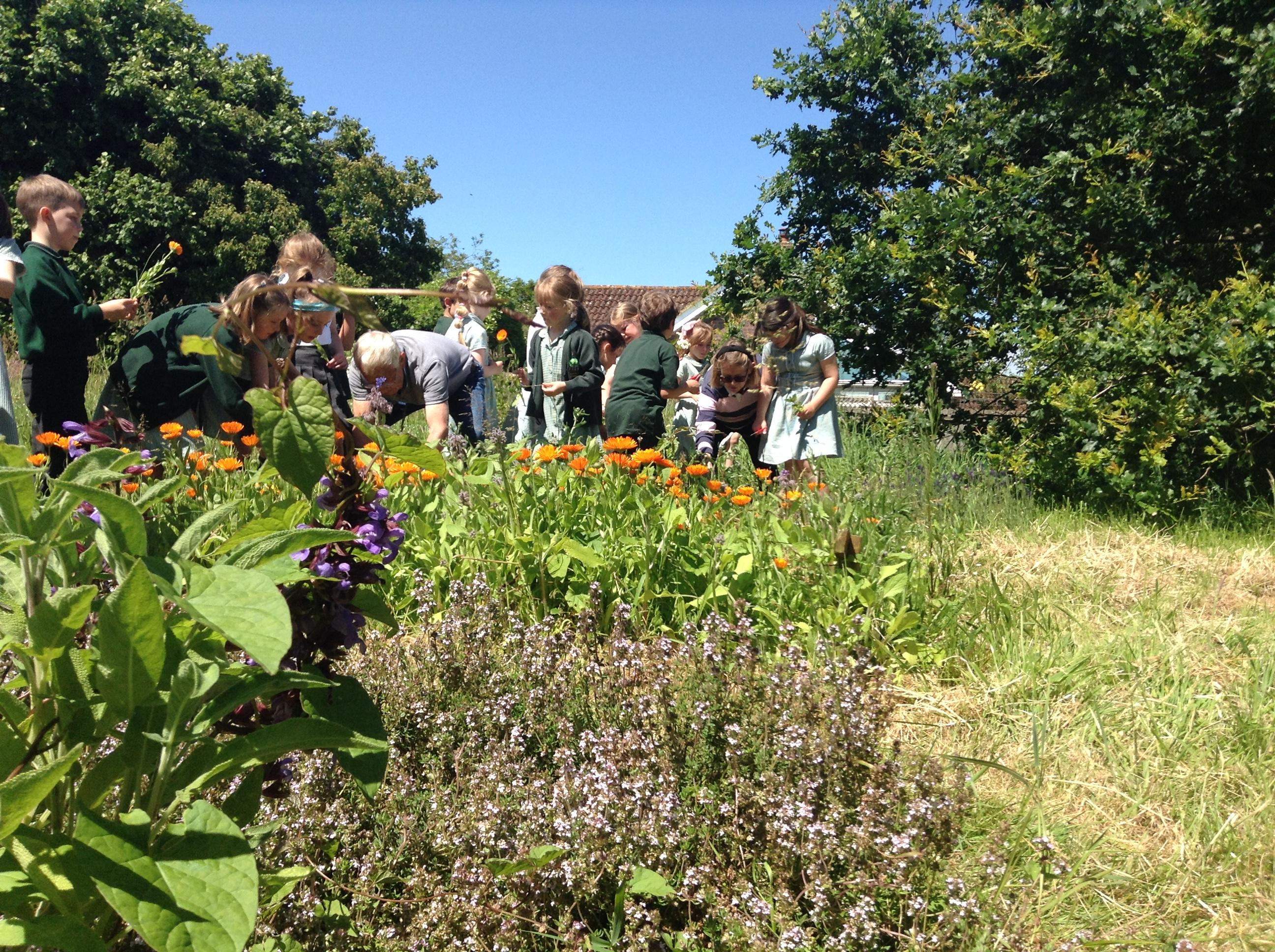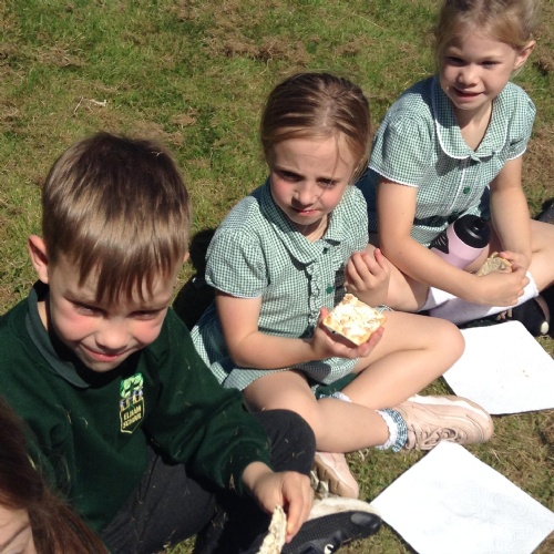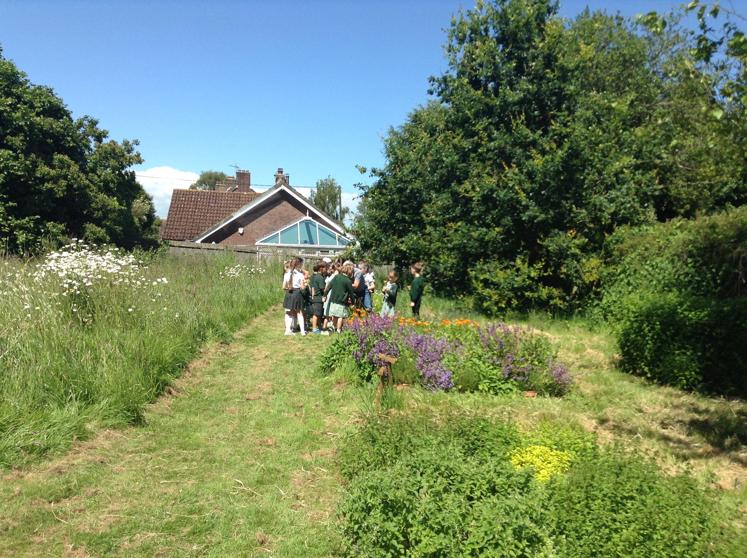 We have had a great afternoon in the park with the Elham Environmental Society finding out about all the herbs which are planted in the garden. The children used clues to help them guess which types of herbs are in the garden, they tried some cheese with herbs and then created their own bouquet of herbs to take home.