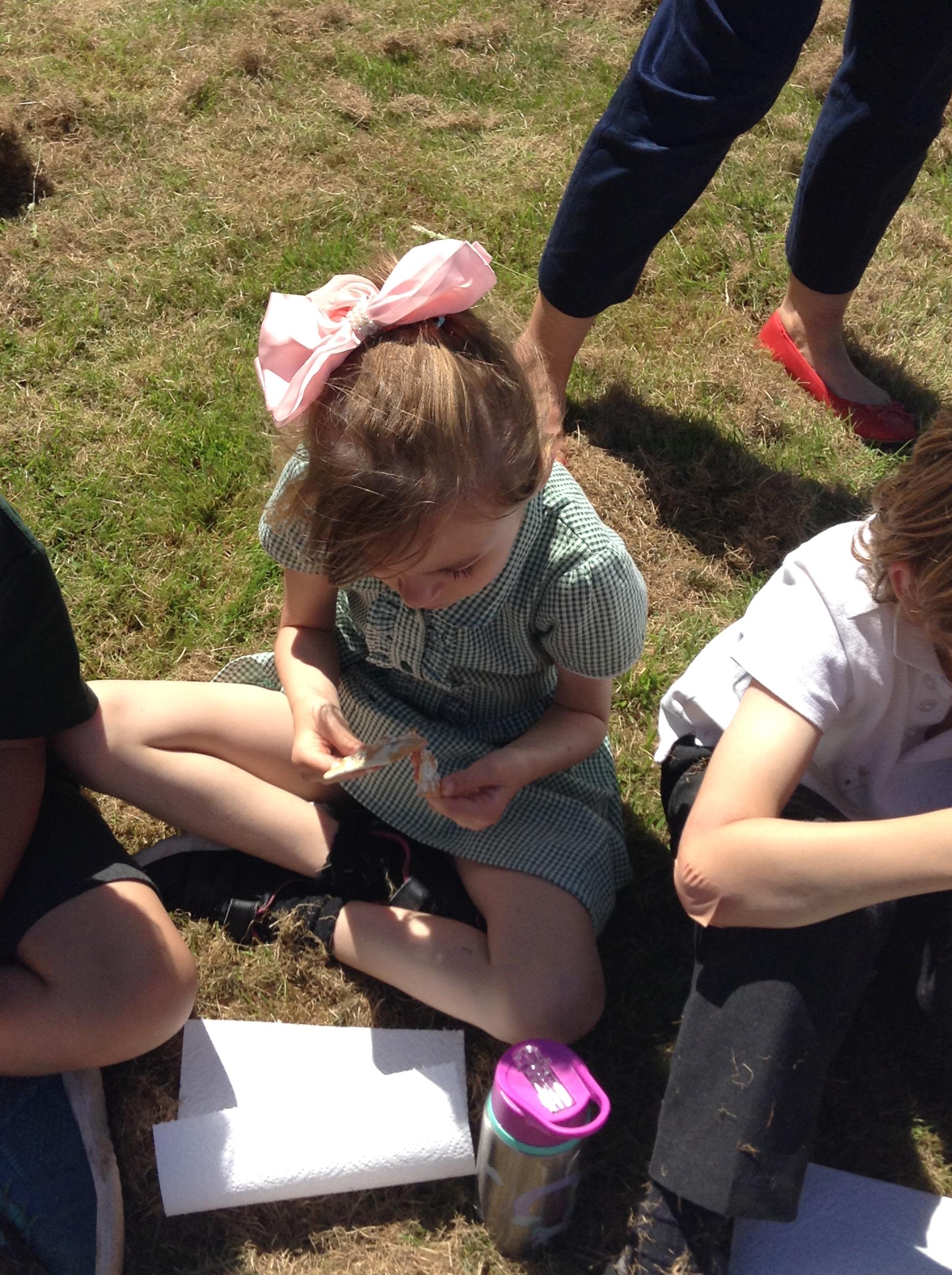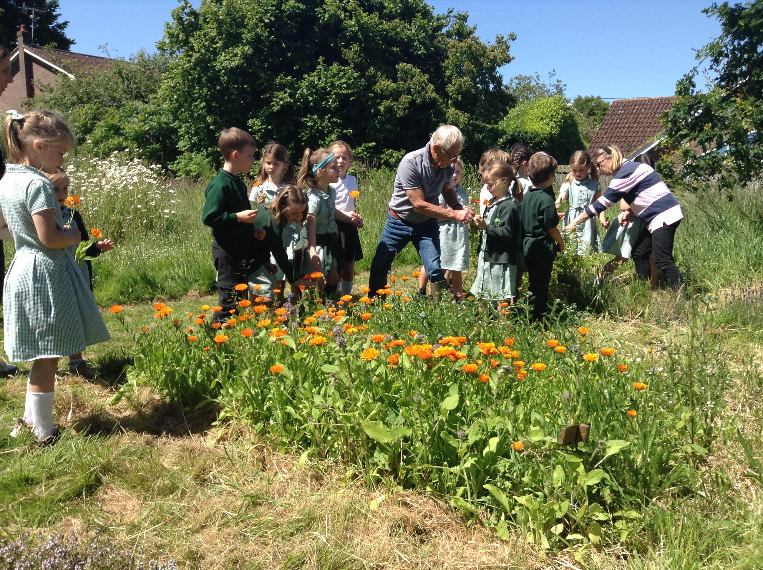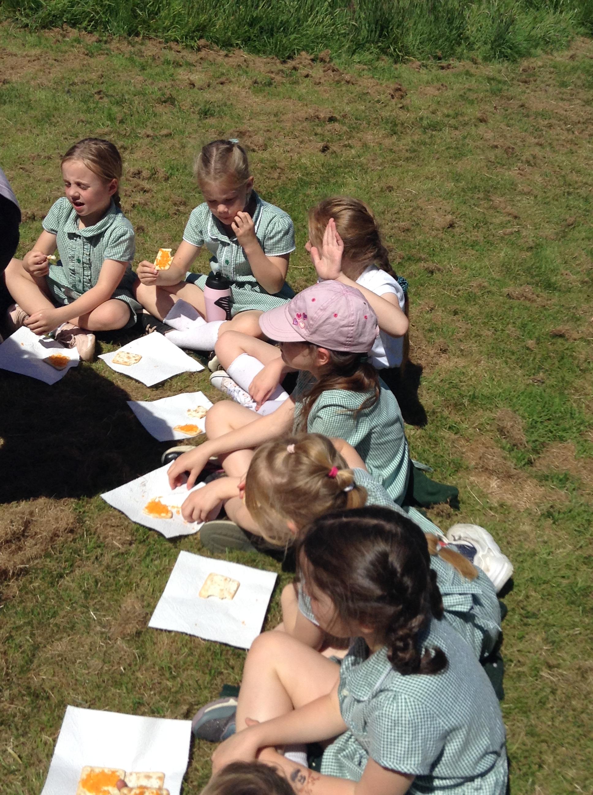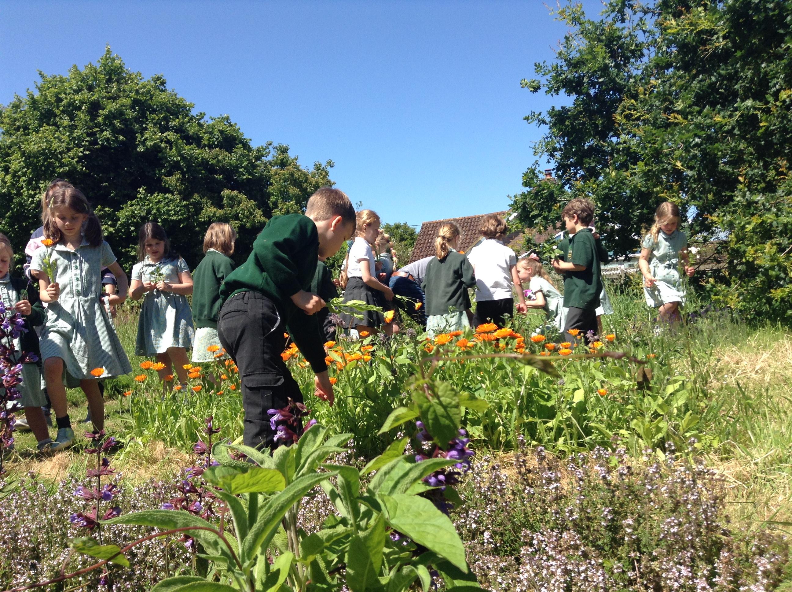 We have had a great afternoon in the park with the Elham Environmental Society finding out about all the herbs which are planted in the garden. The children used clues to help them guess which types of herbs are in the garden, they tried some cheese with herbs and then created their own bouquet of herbs to take home.