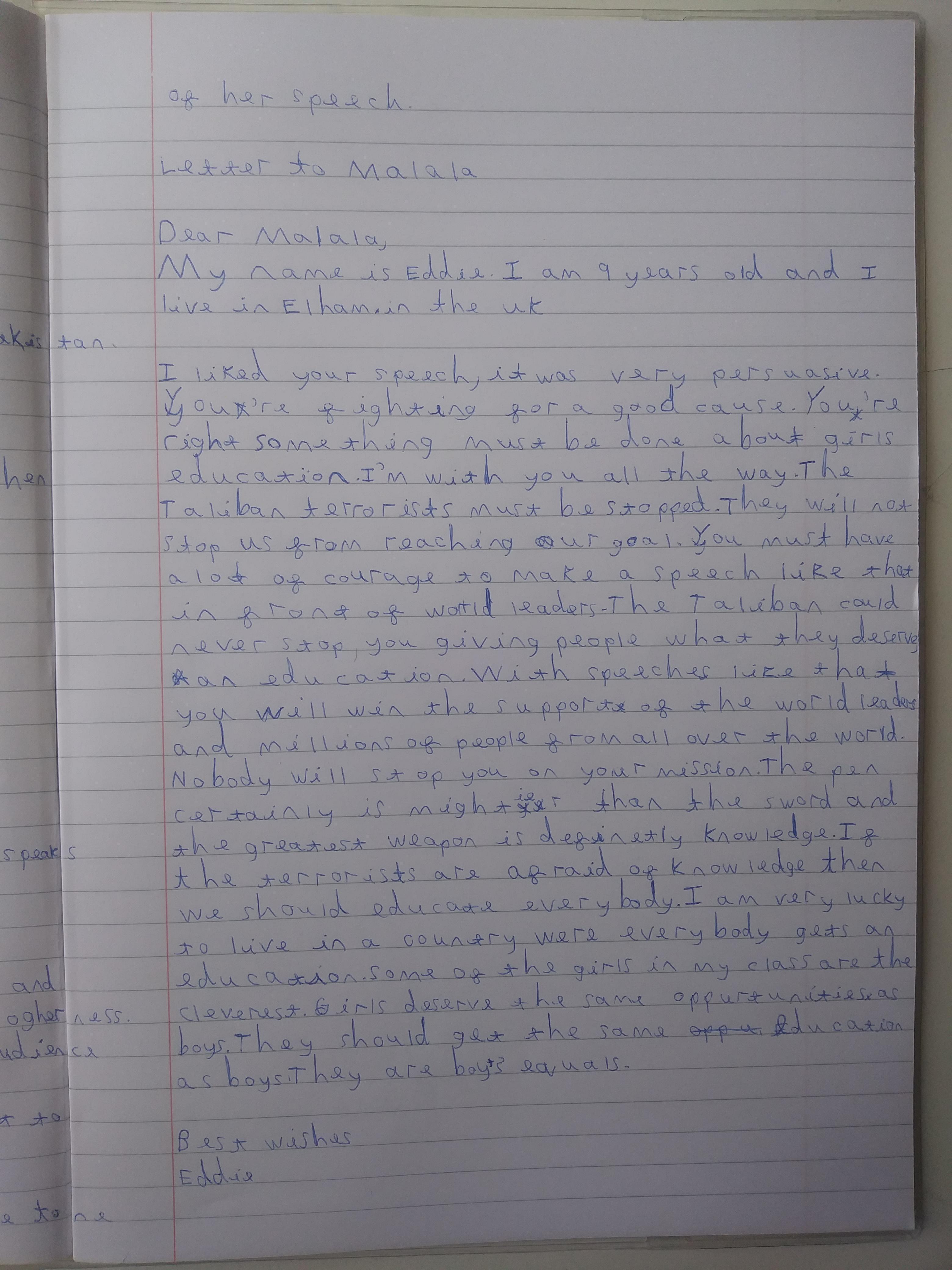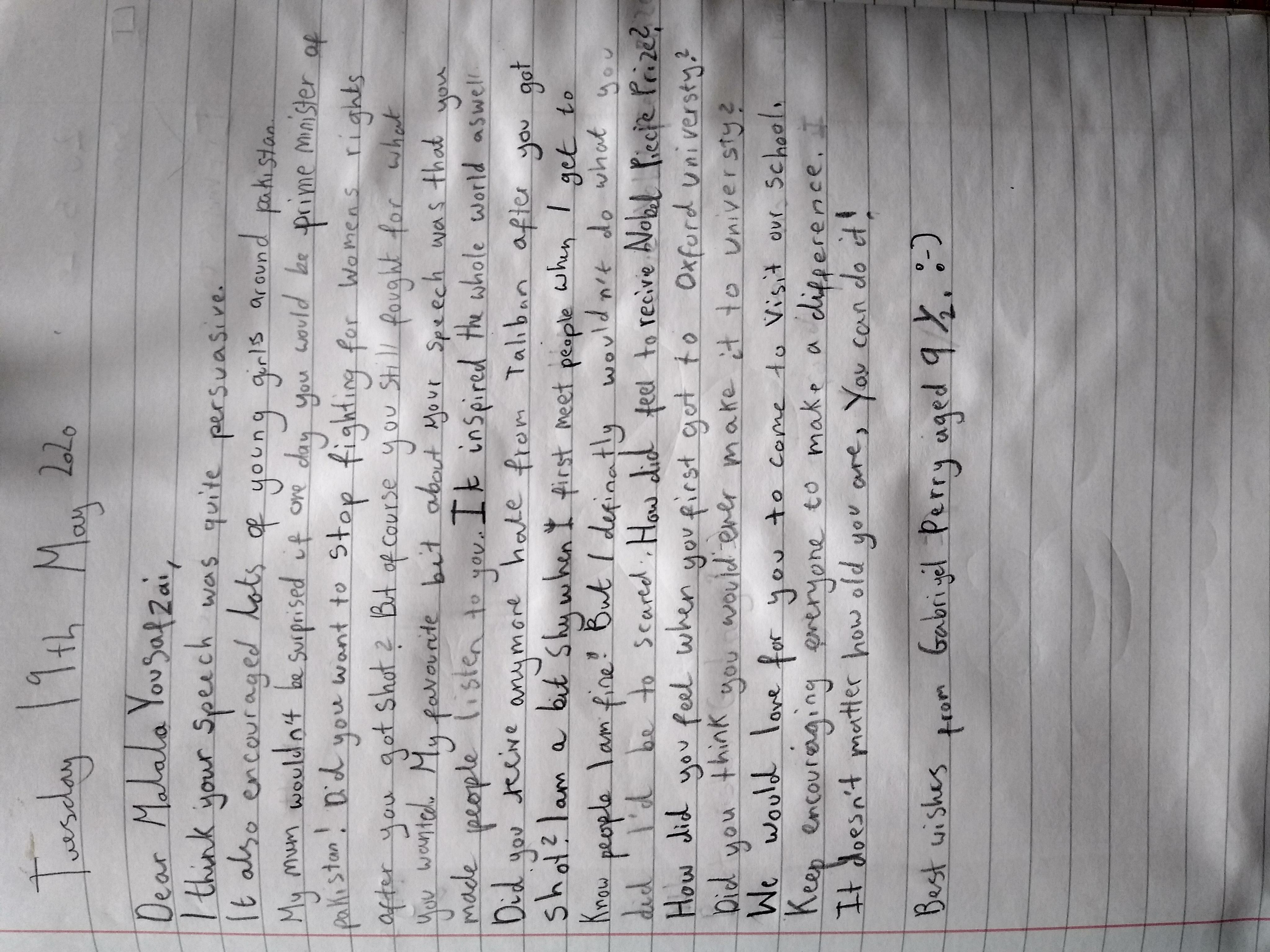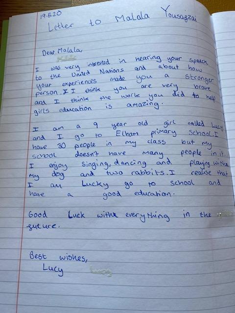 I have had some lovely work from Ruby and Howie today. You have all been working hard on your letters to Malala this week - well done.
