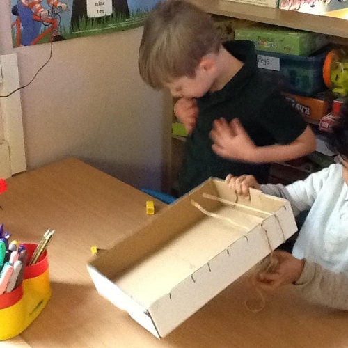 We are learning to thread, plait and weave in art and this week the children helped us to make looms!