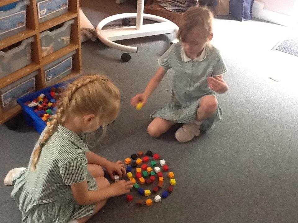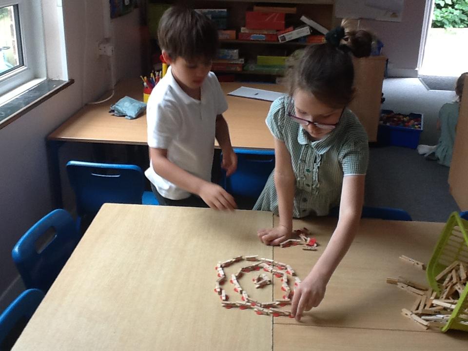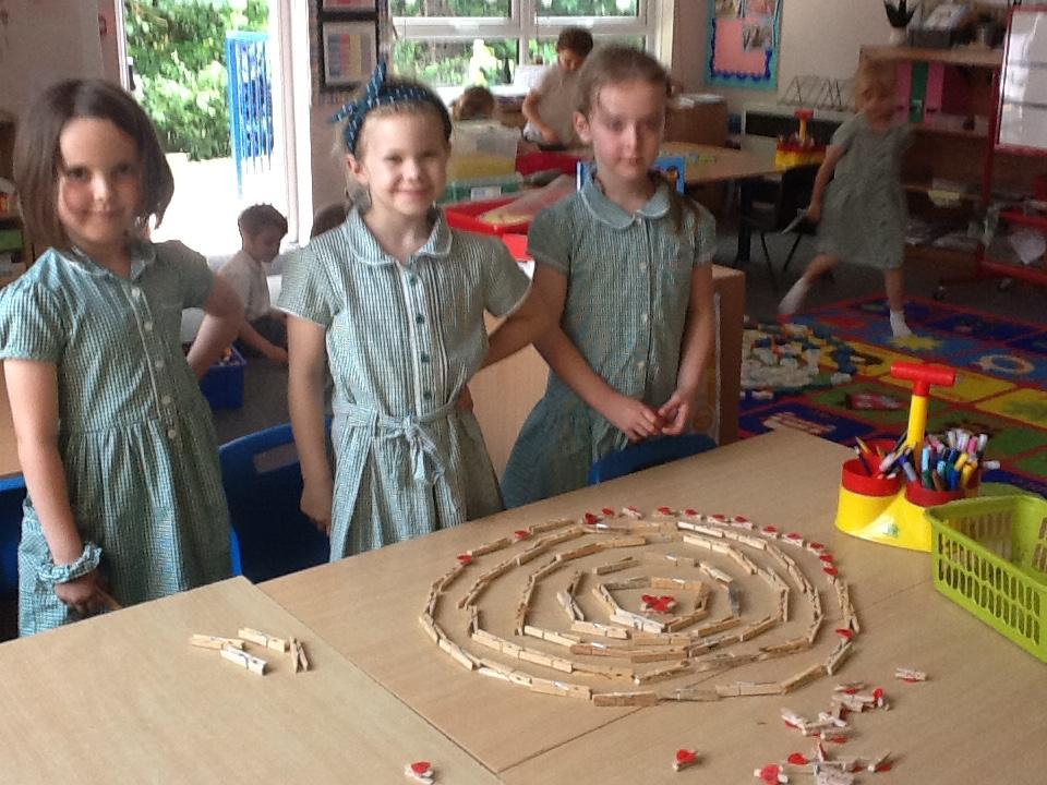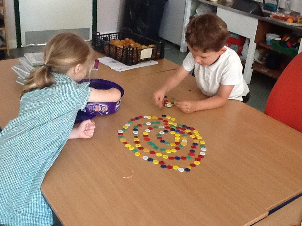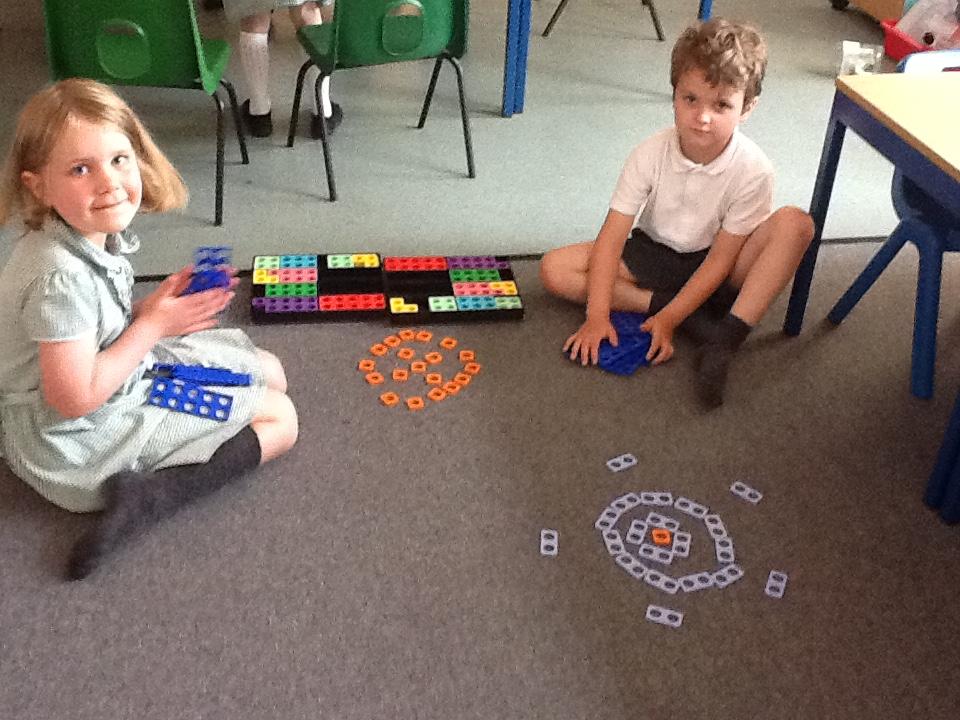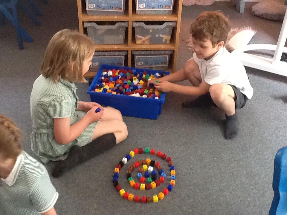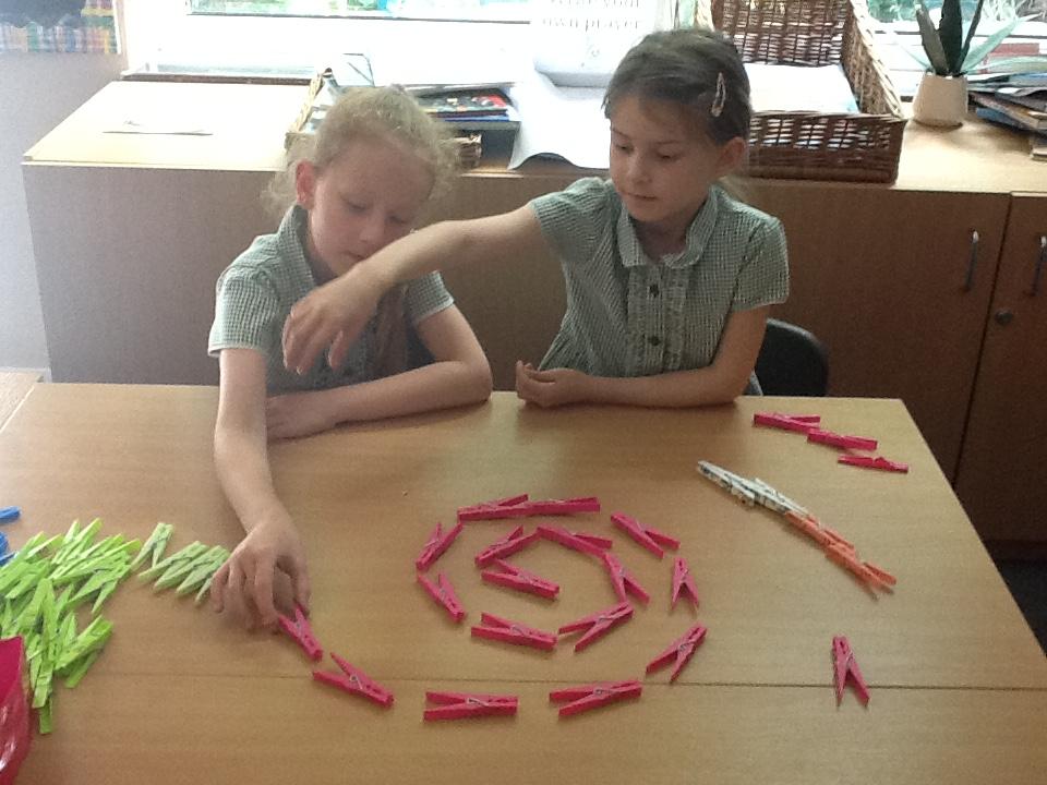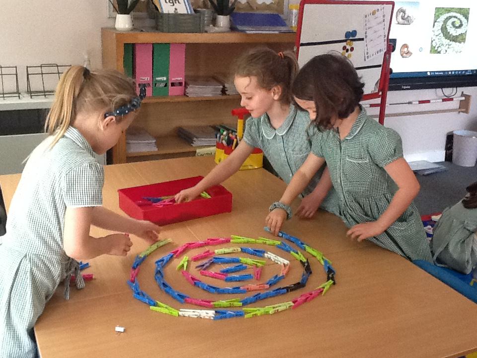 Following Andy Goldsworthy's style we have used classroom manipulatives to make circles and spirals in art.