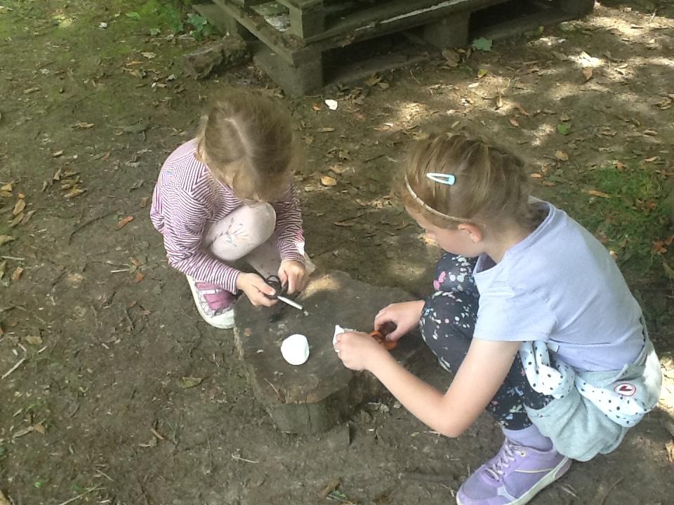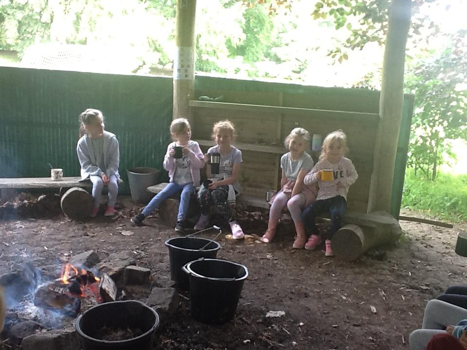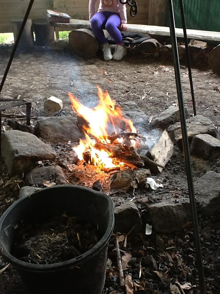 The children practiced their fire lighting skills today, we all persevered as it was very tricky. We finished off with a lovely cup of hot chocolate and marshmallows again!