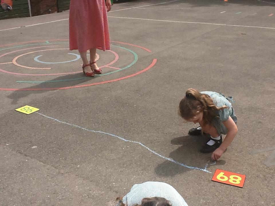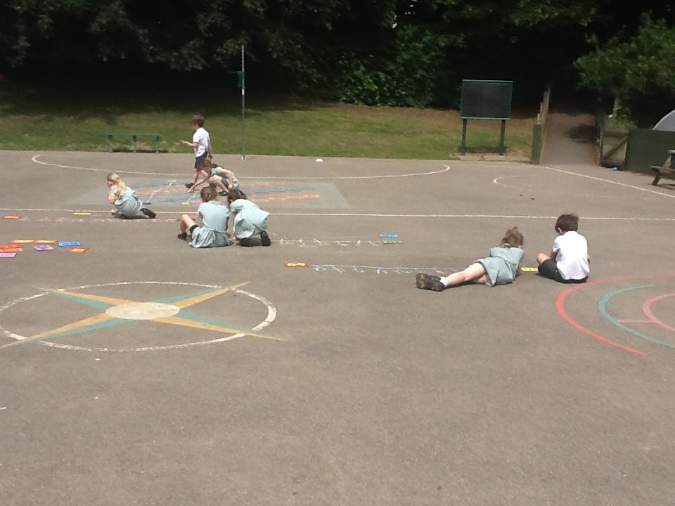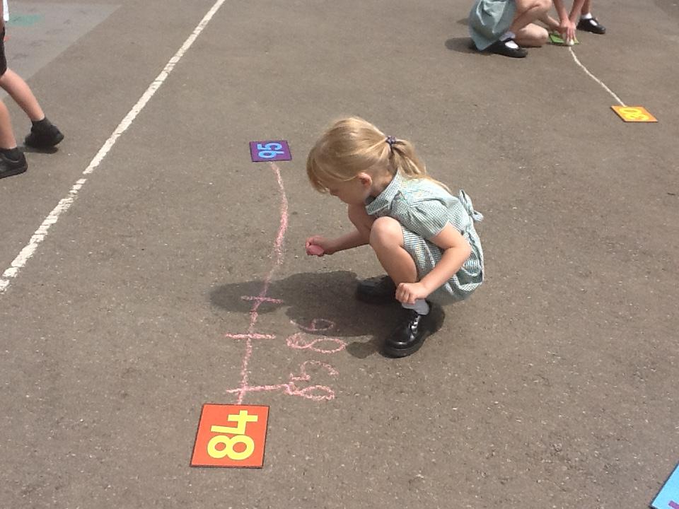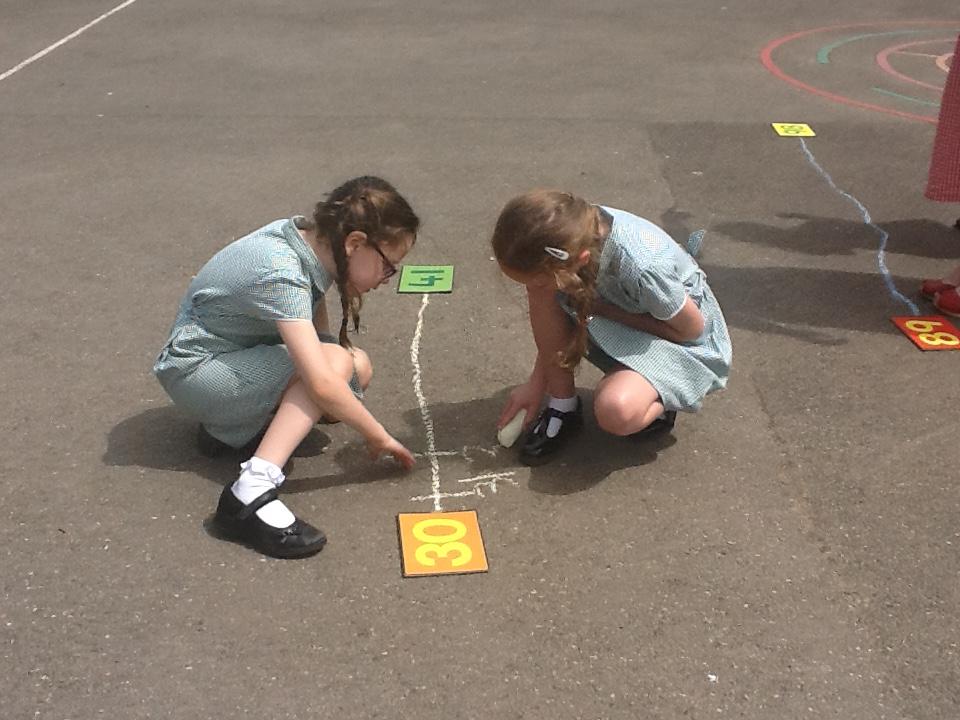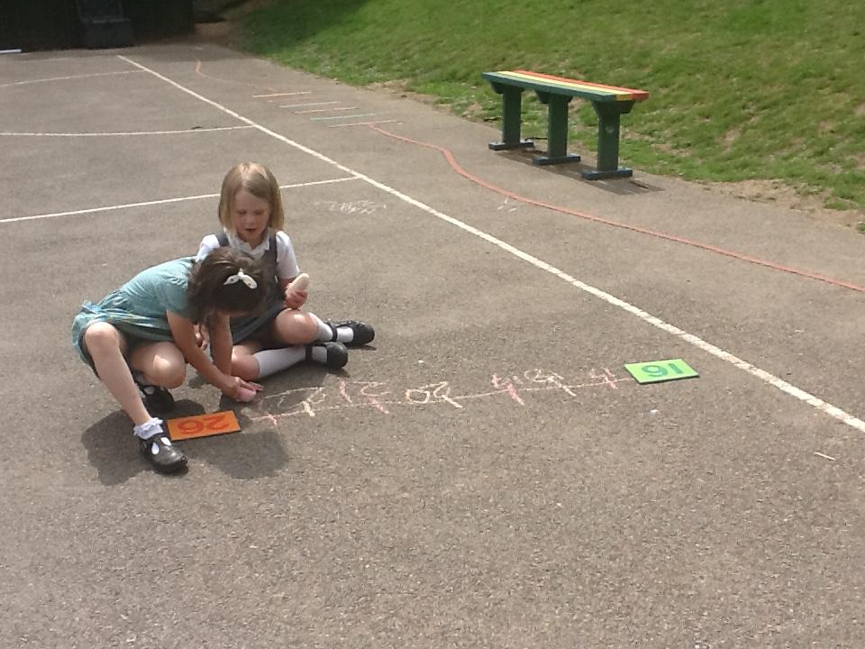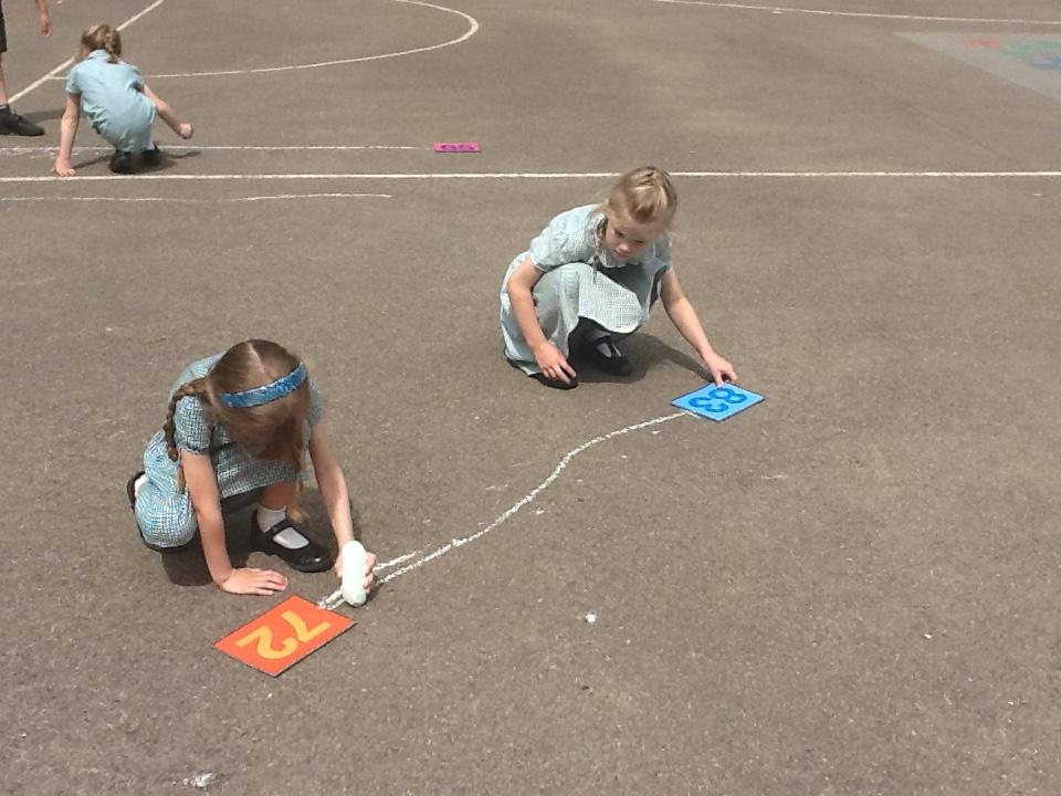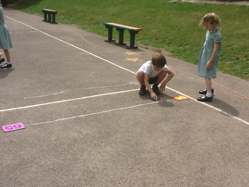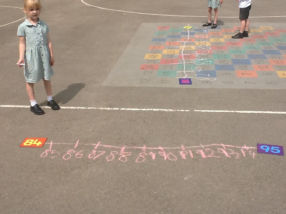 Our maths learning has been focusing on using a number line to 100. We have looked at how numbers should be spaced out correctly. Estimating larger numbers on a number line has been quite tricky. We went out on the playground and practiced completing our own number lines when given a start and an end number.