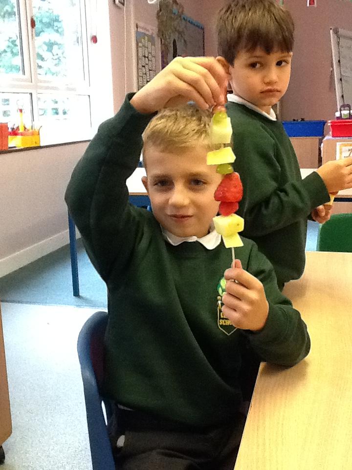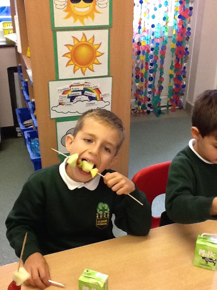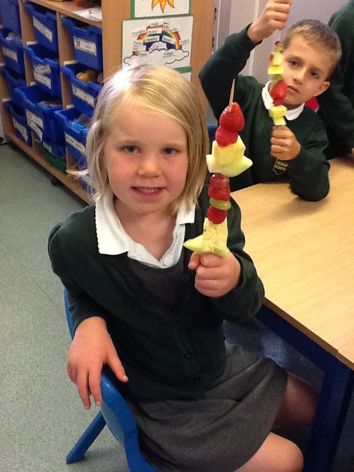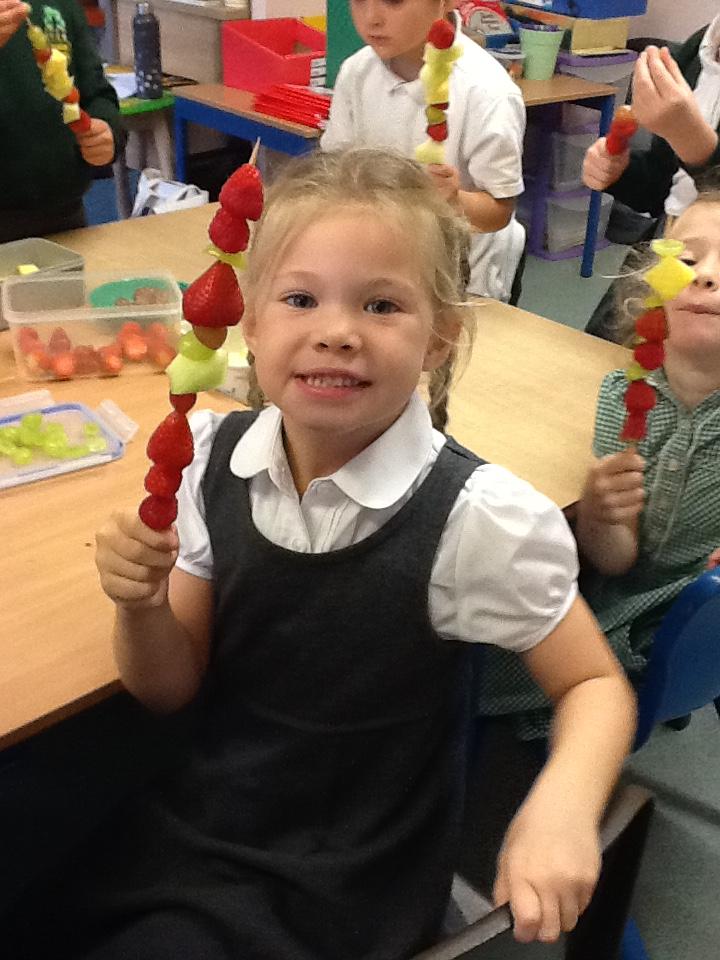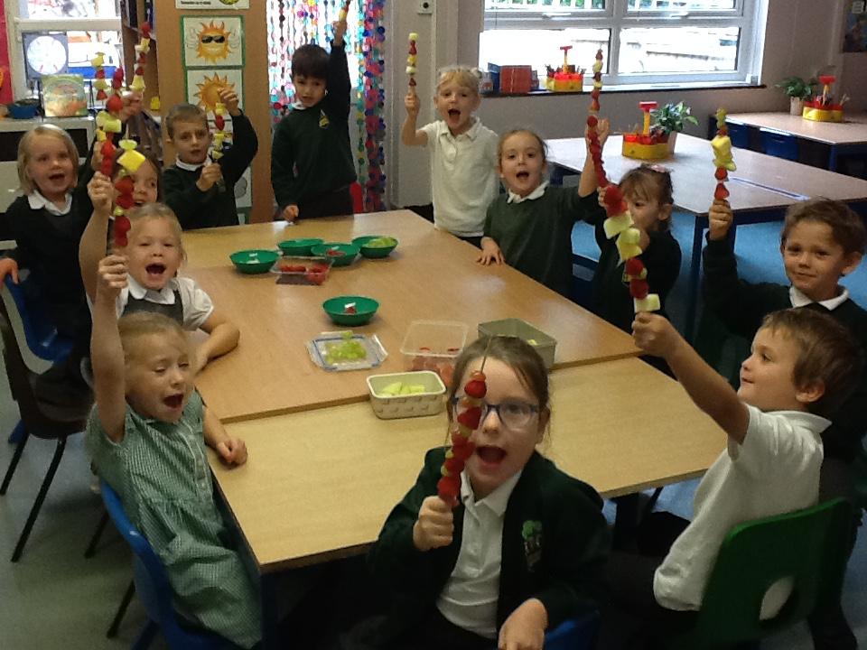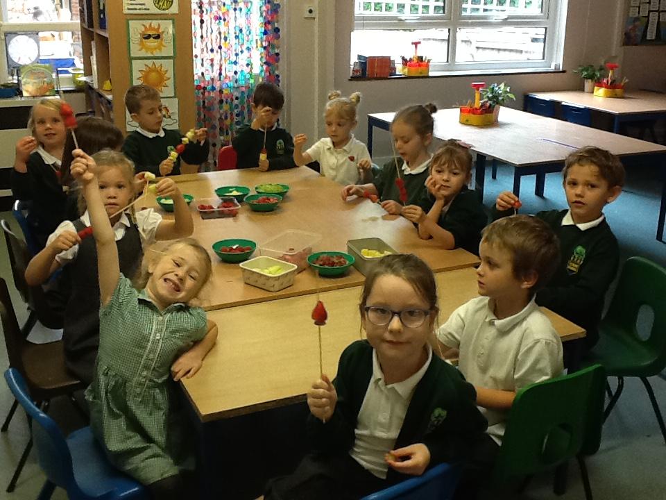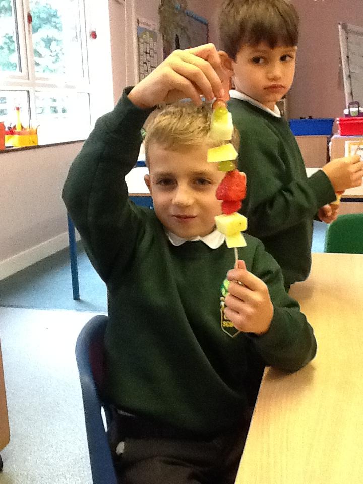 In our PSHE lesson today we were looking at healthy and unhealthy foods. The children were really good at sorting out the different food cards into two categories. We talked about how fruit is a nice healthy snack and made some delicious fruit kebabs, yum!