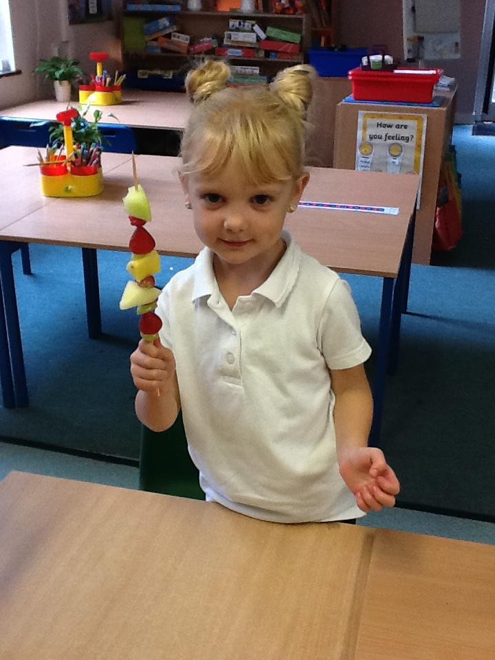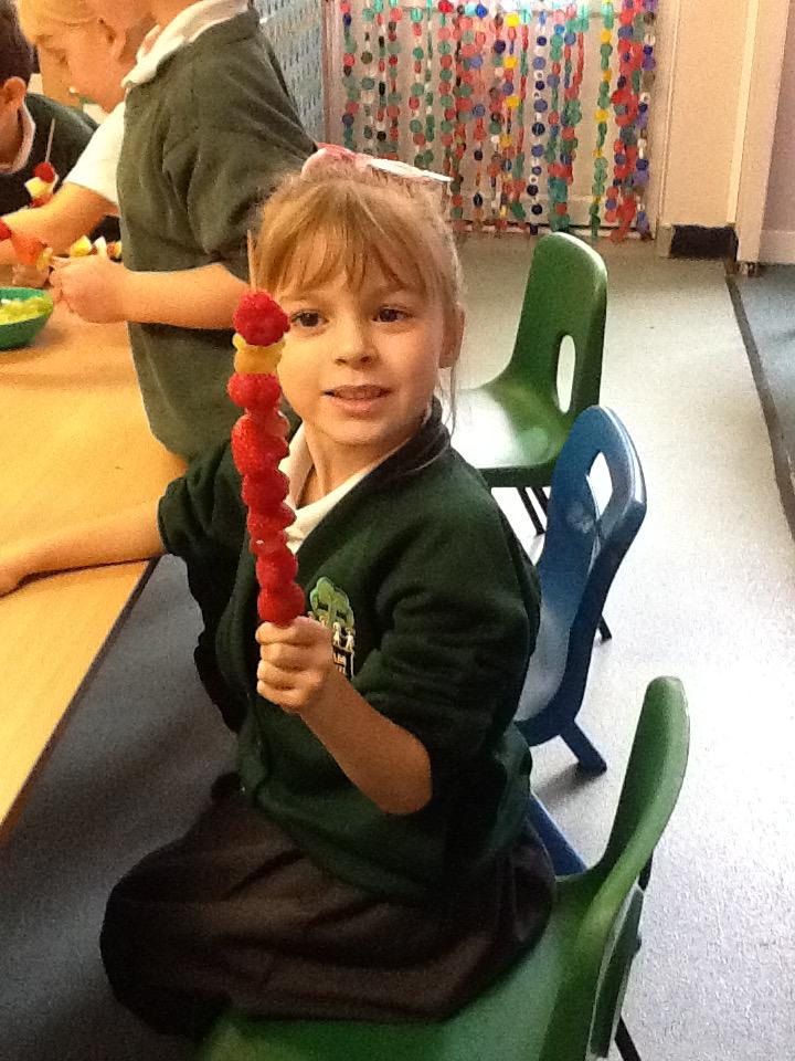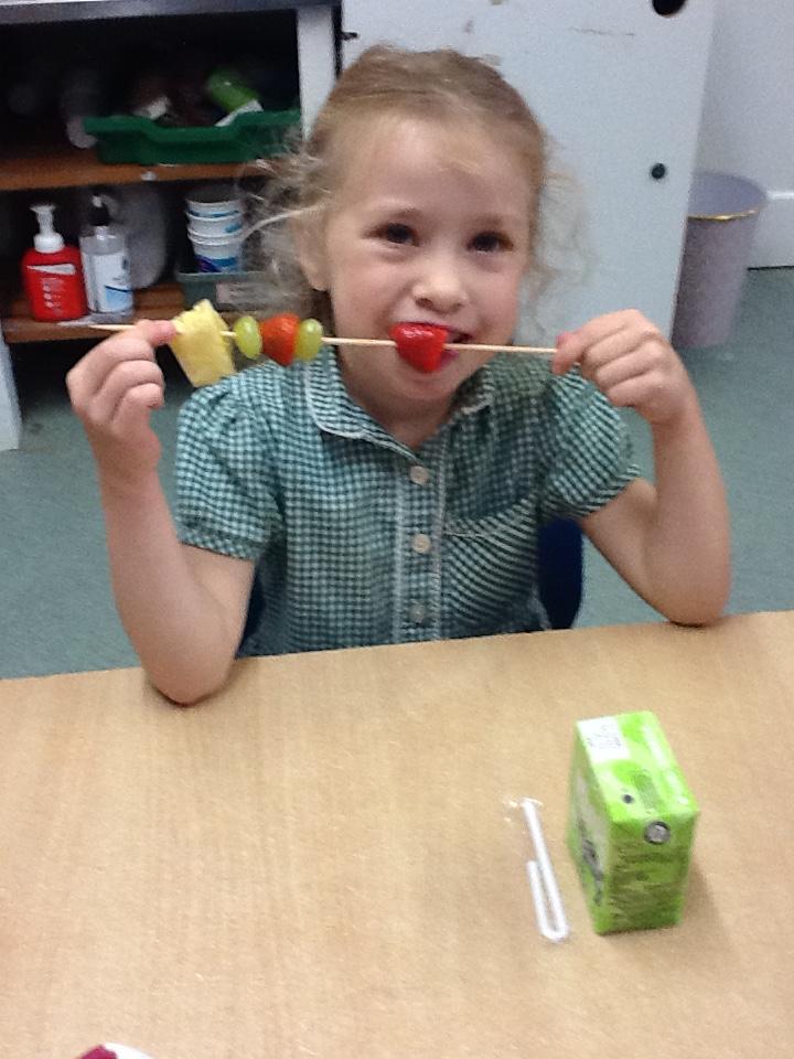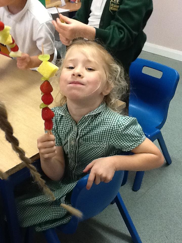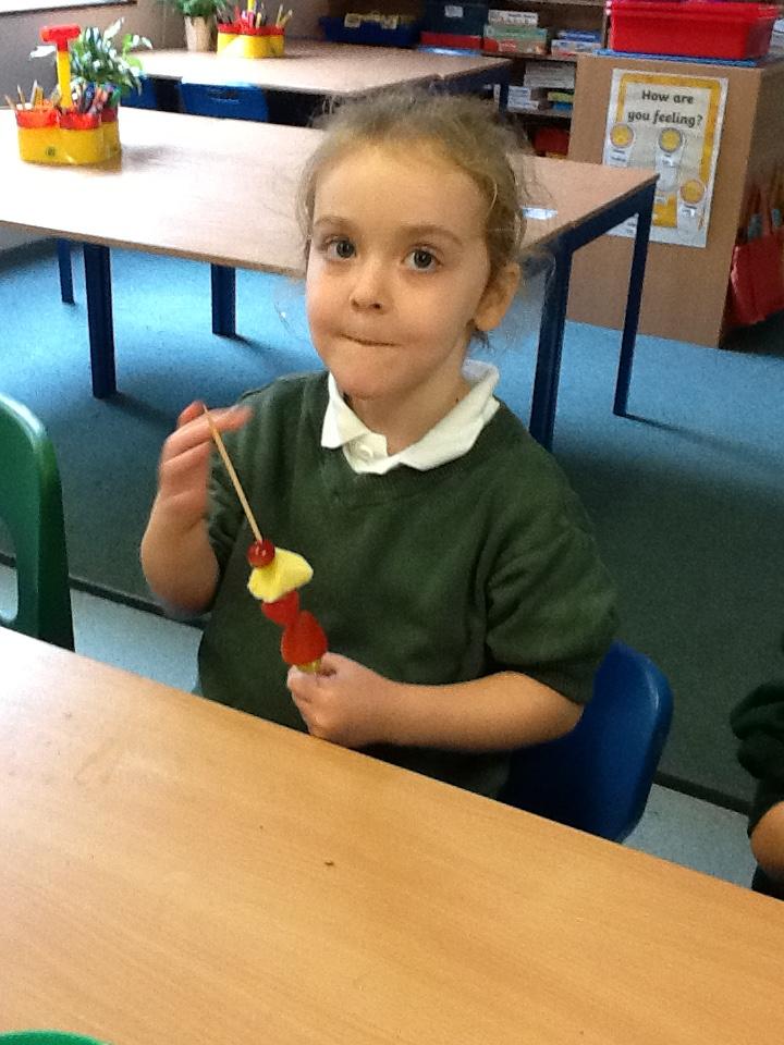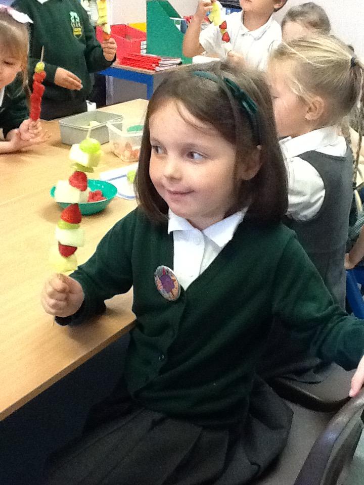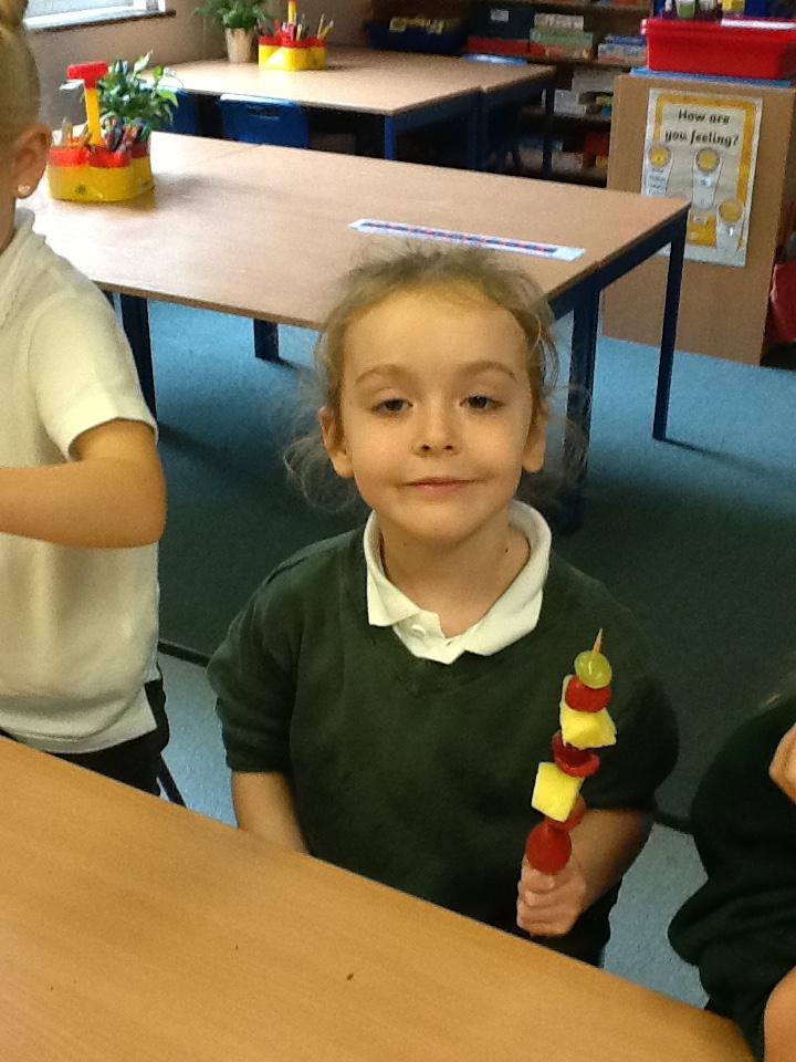 In our PSHE lesson today we were looking at healthy and unhealthy foods. The children were really good at sorting out the different food cards into two categories. We talked about how fruit is a nice healthy snack and made some delicious fruit kebabs, yum!