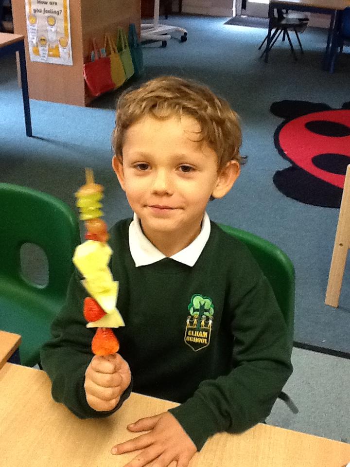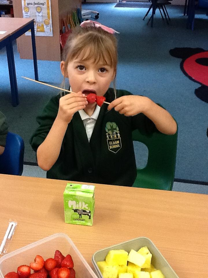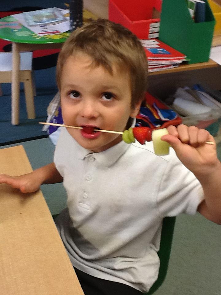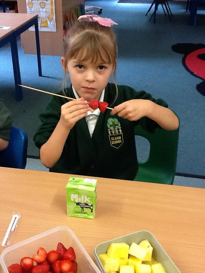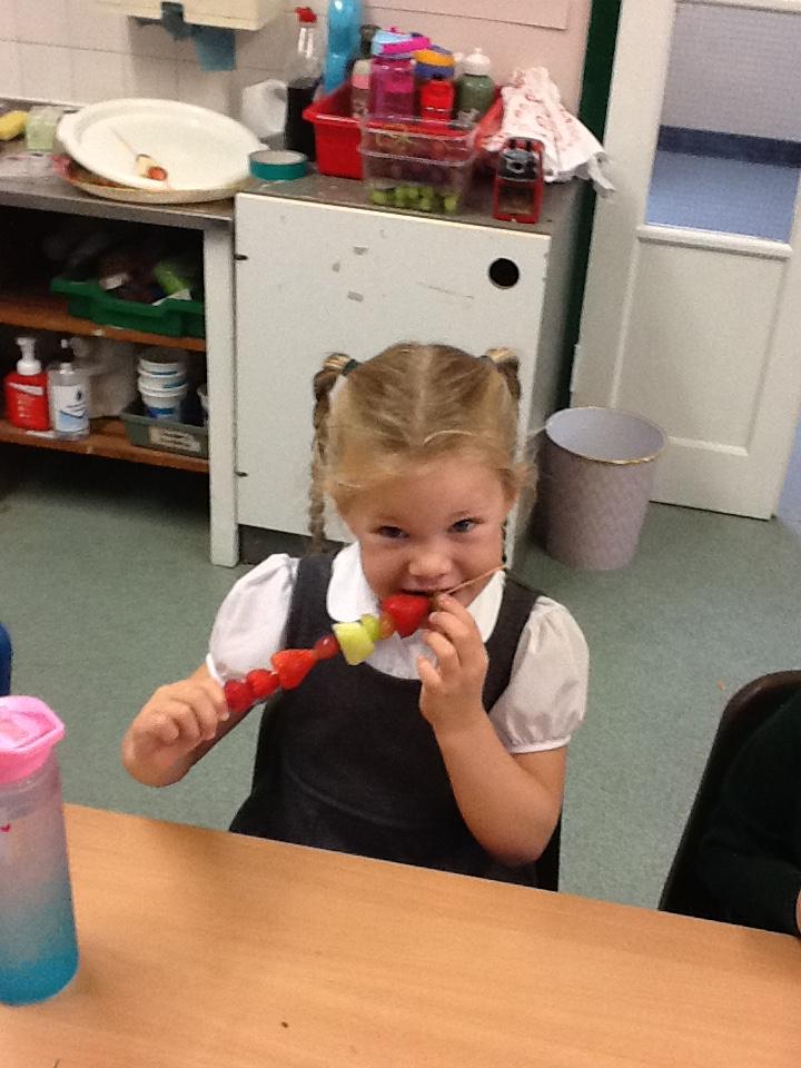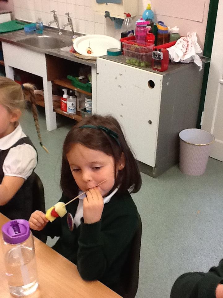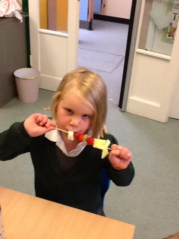 In our PSHE lesson today we were looking at healthy and unhealthy foods. The children were really good at sorting out the different food cards into two categories. We talked about how fruit is a nice healthy snack and made some delicious fruit kebabs, yum!