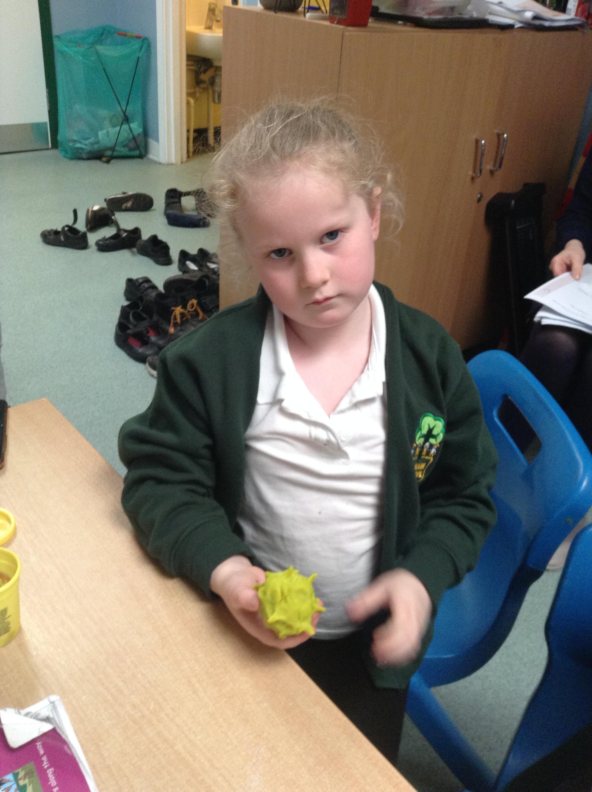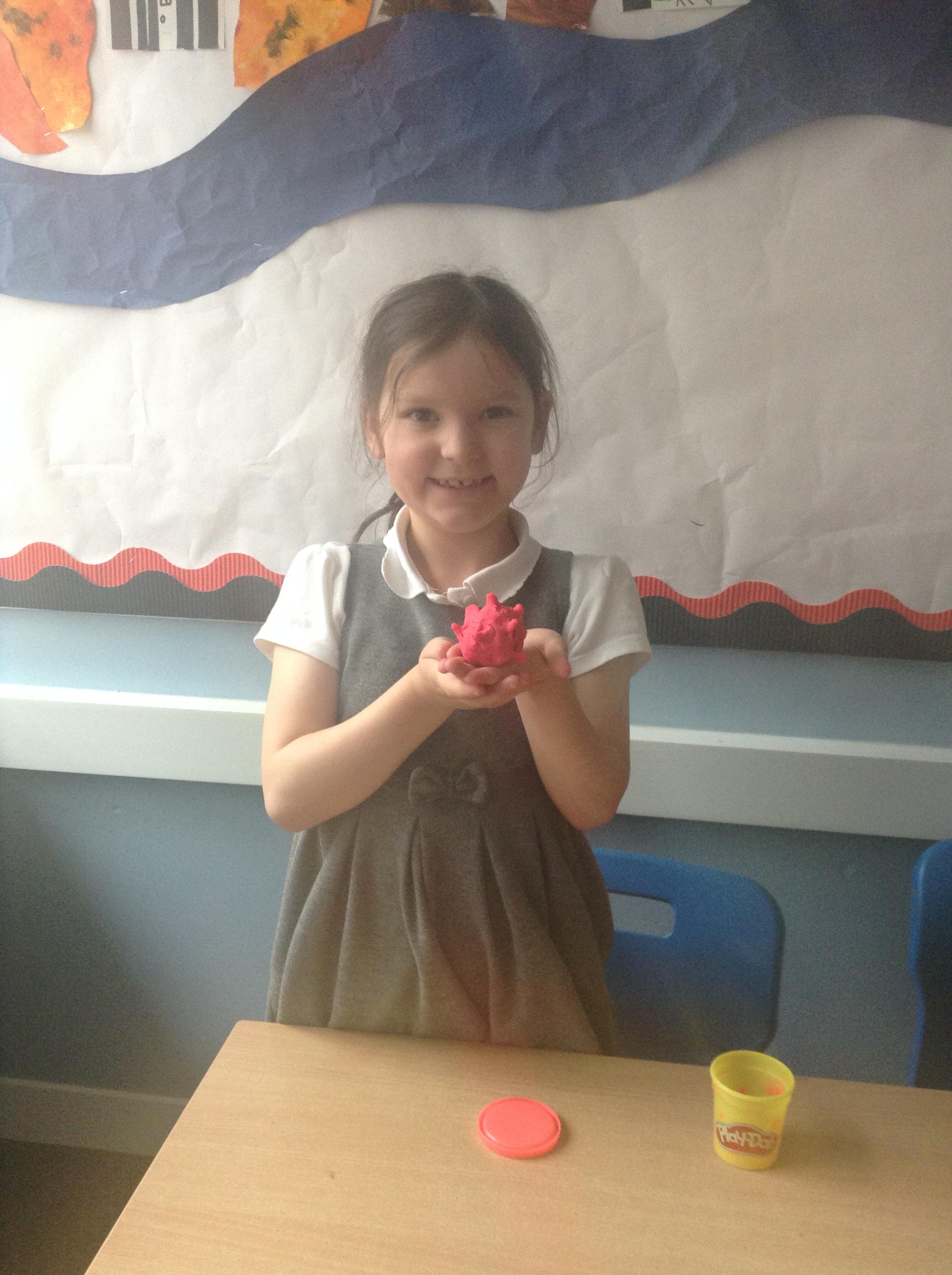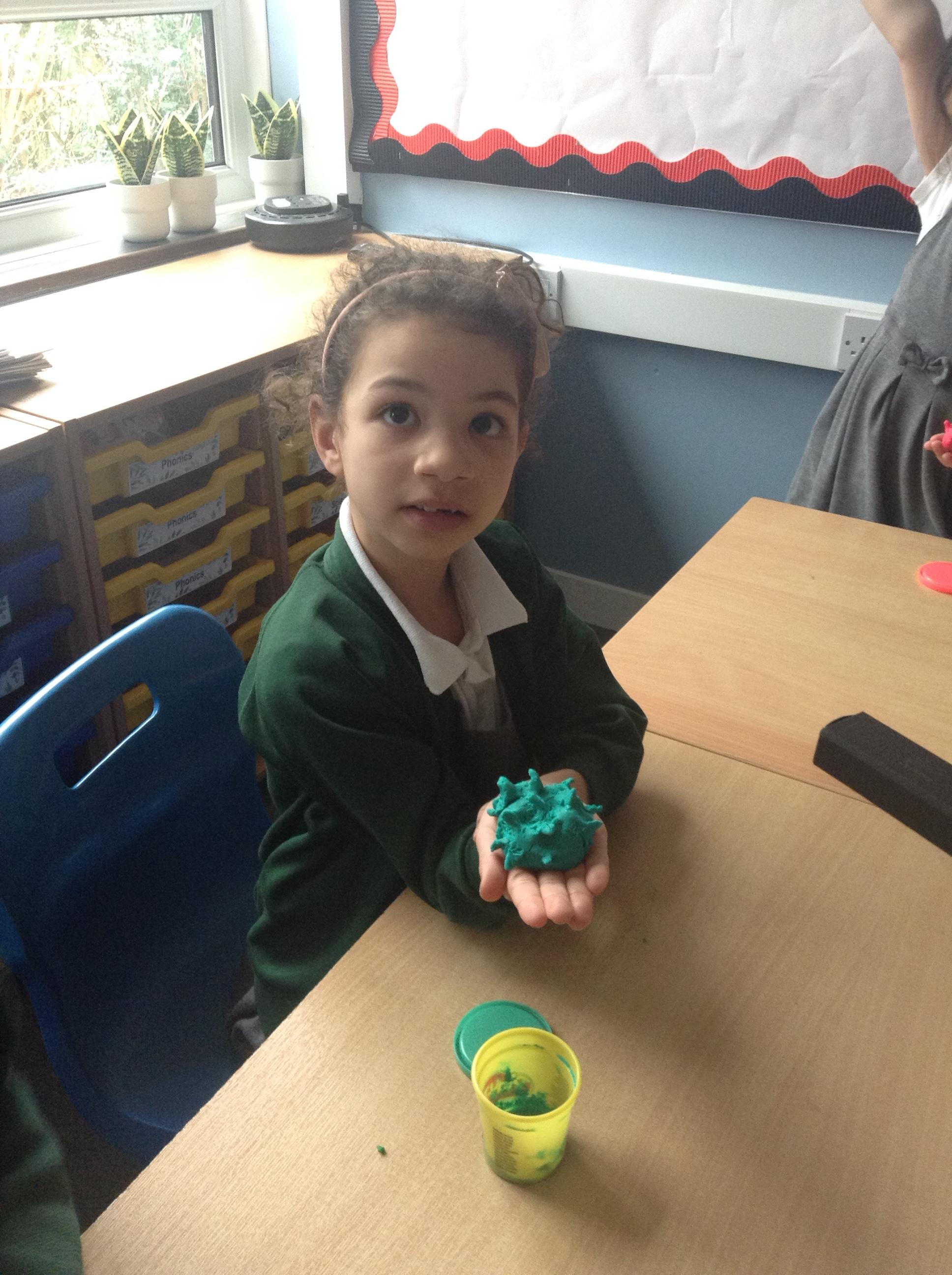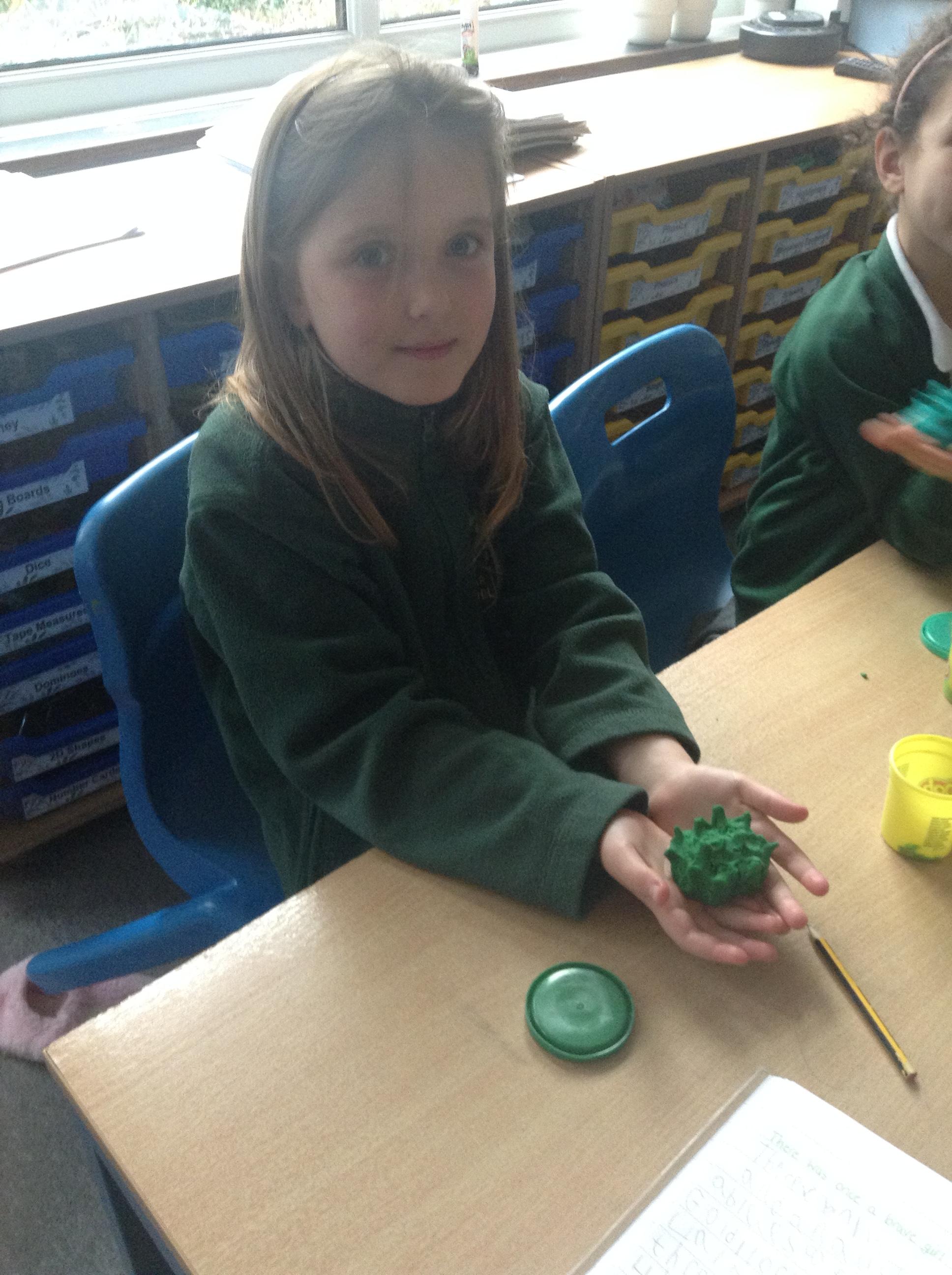 In science the children have been looking at different ways in which plants can disperse their seeds. We discussed why the design of the seed is crucial to the way it is dispersed. The children then made a playdoh model of a seed designed to attach to the fur of an animal - a burr with hooks.