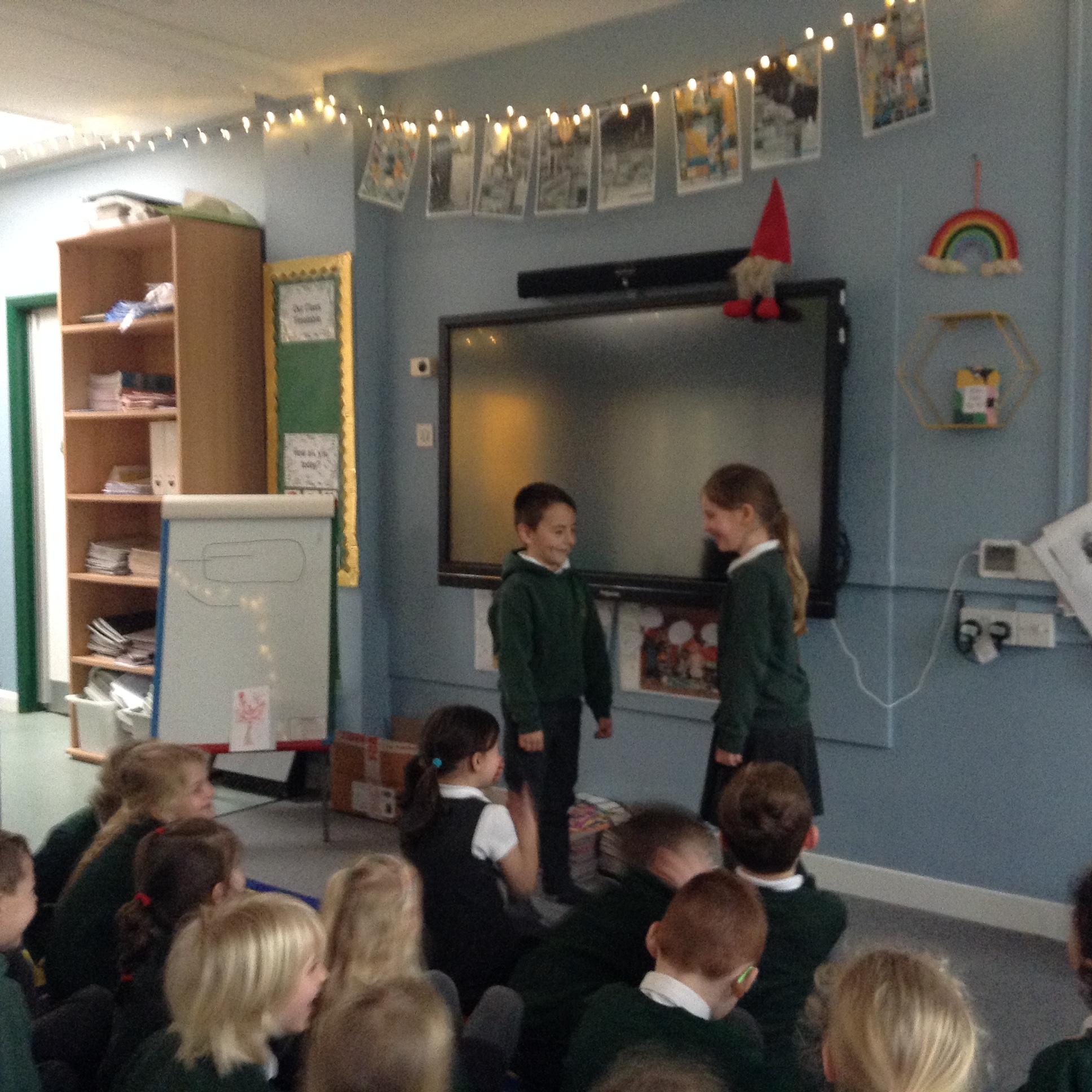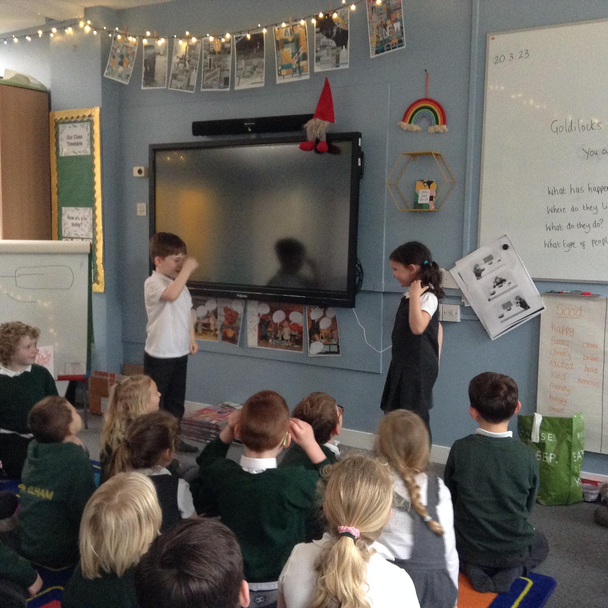 Today in English we talked about the meaning of the word 'sequel.' The children then thought about Goldilocks and Baby Bear as grown ups and used role play to answer the following questions and establish a conversation between the two characters. What kind of lives do they live? Where would they live and what would they be like? Imagine if they met. What conversations would they have? The children enjoyed performing in front of each other and sharing their ideas.