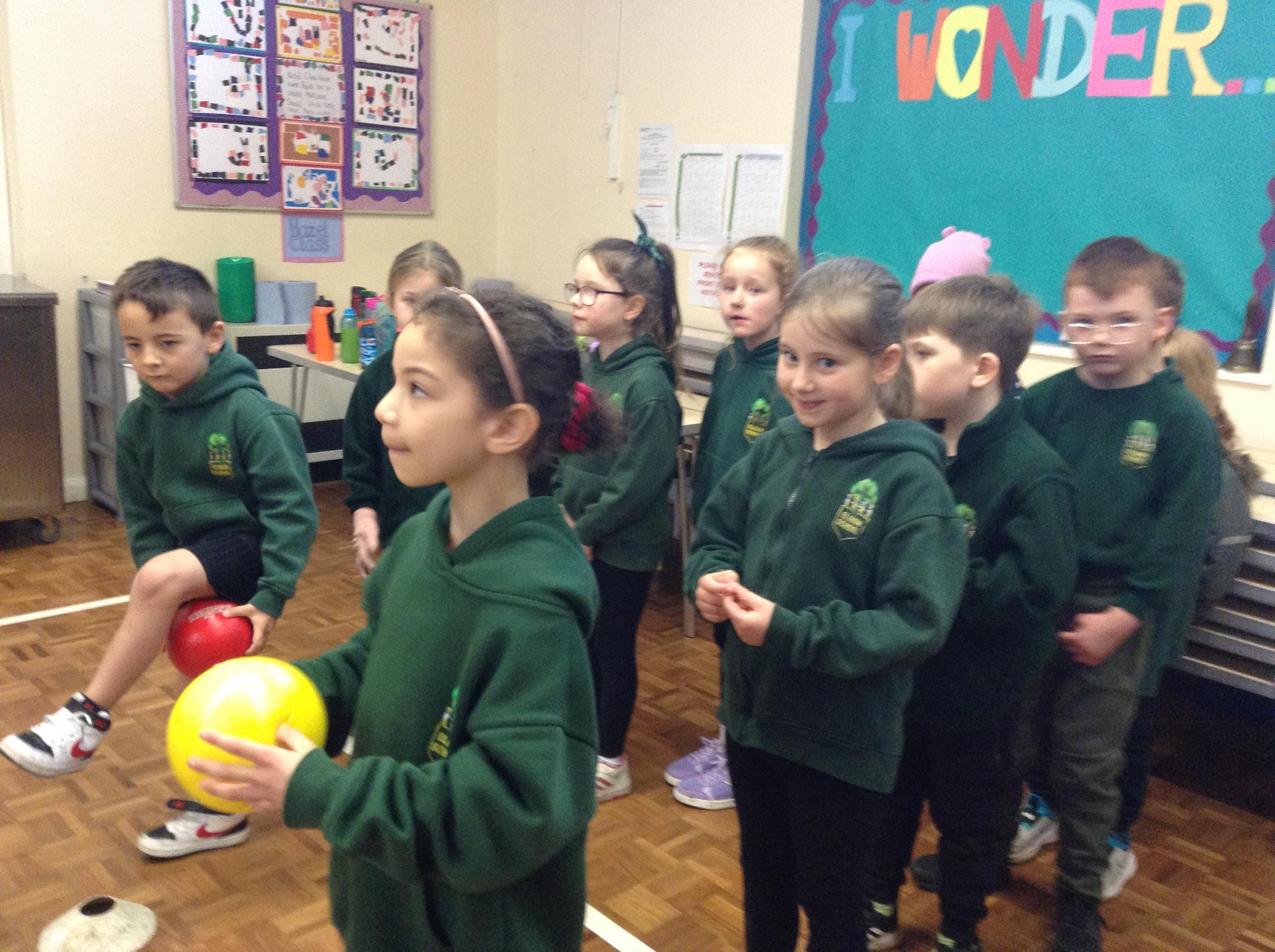 Indoor games in PE due to the weather.